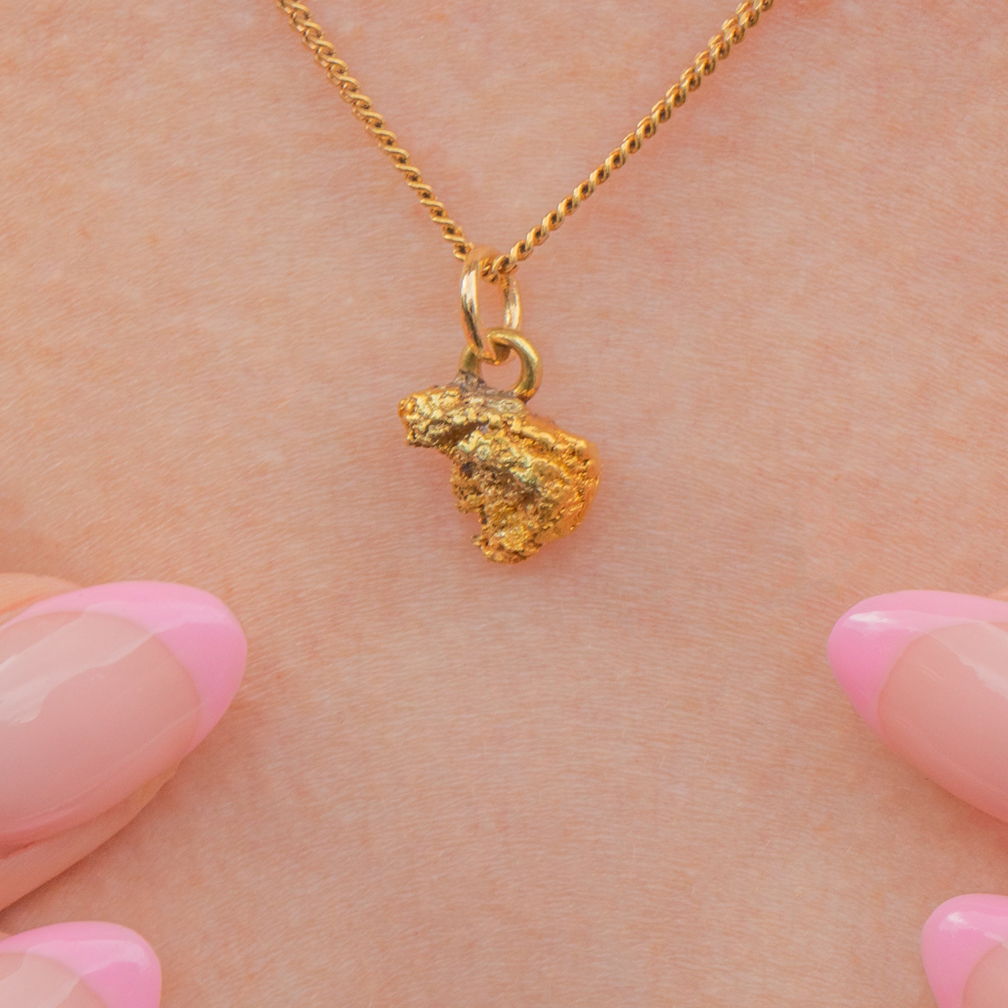 Add some organic form to your neck stack with this antique 22ct Gold nugget charm! Symbolic of the Californian Gold rush from 1848 to 1855, the Gold nugget is a reminder of craze that was caused by the discovery of Gold found by James W. Marshall.