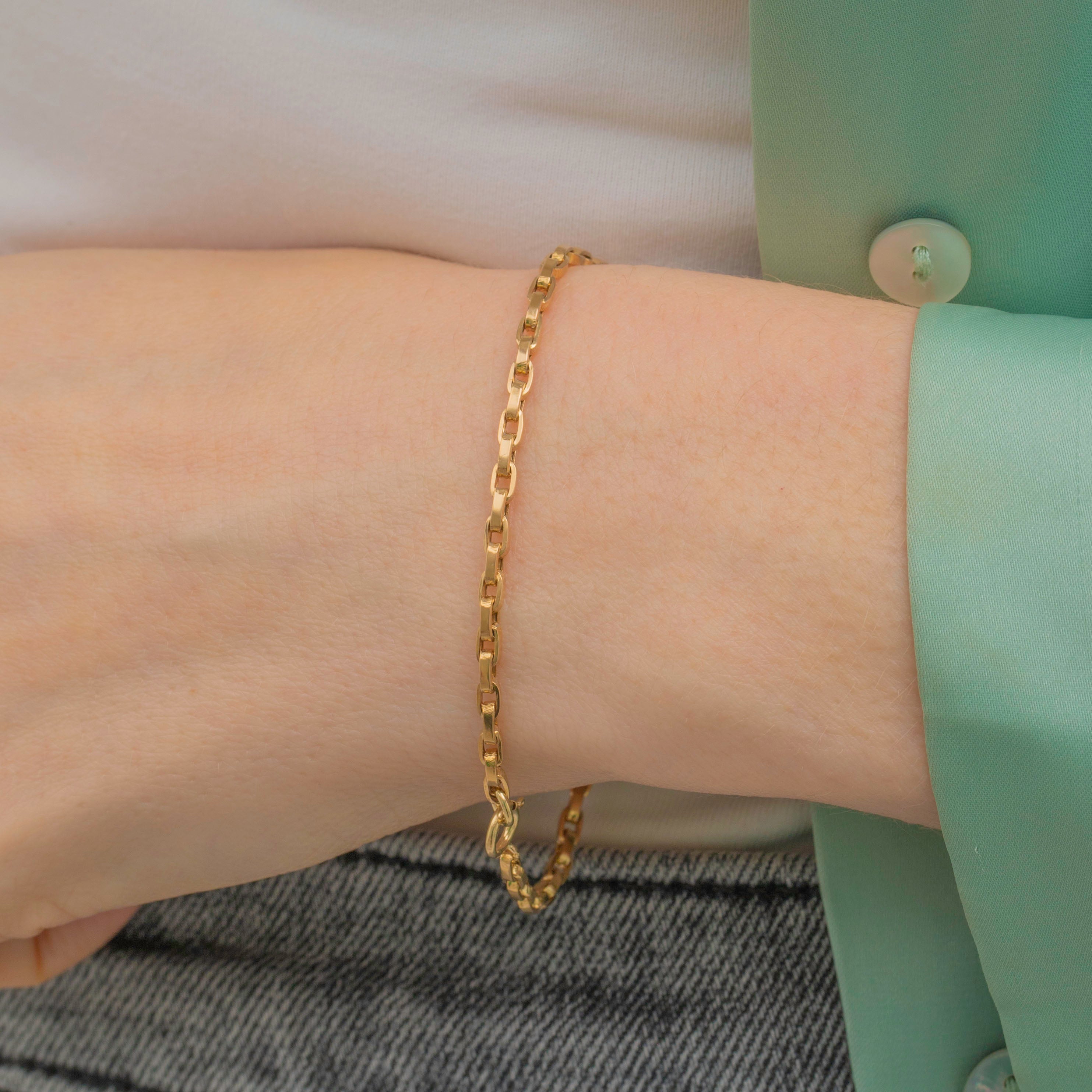 EXCELLENT. This antique 9ct Gold oval link belcher bracelet is in superb condition throughout. Each belcher link remains securely connected and has retained its shape well. The later addition of her 9ct Gold bolt ring ensures secure wear at all times, so you can enjoy this beauty with the utmost confidence!