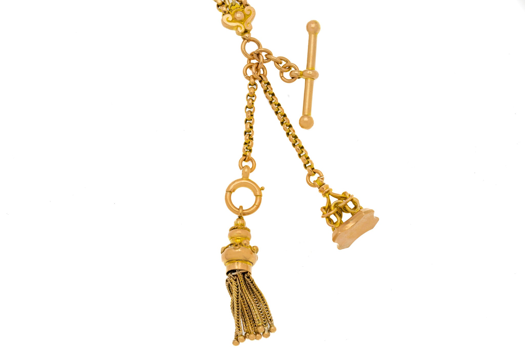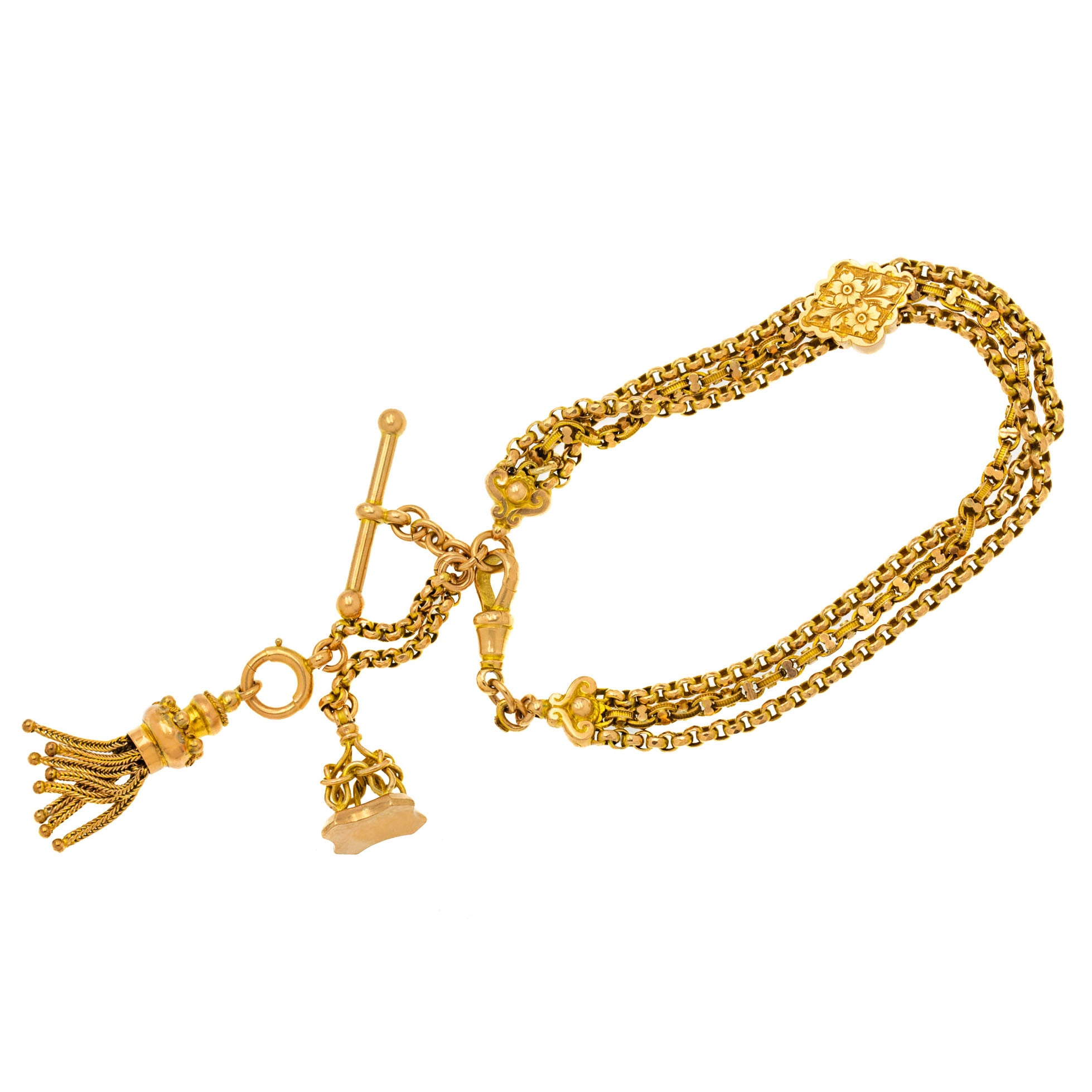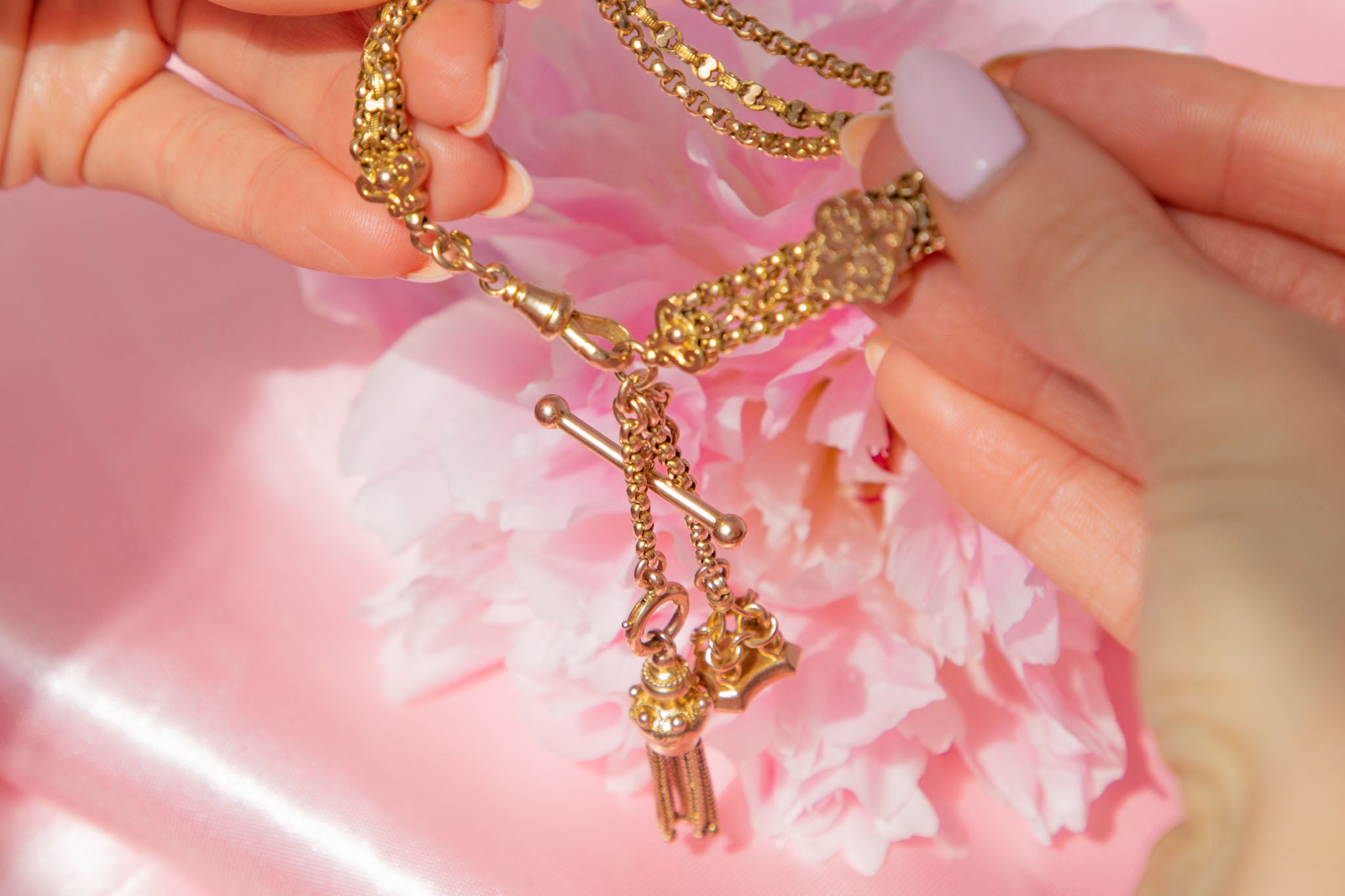 Bracelet à breloques coulissant Albertina en or 9 carats antique, pompon amovible et mini médaillon, 21,7 g
