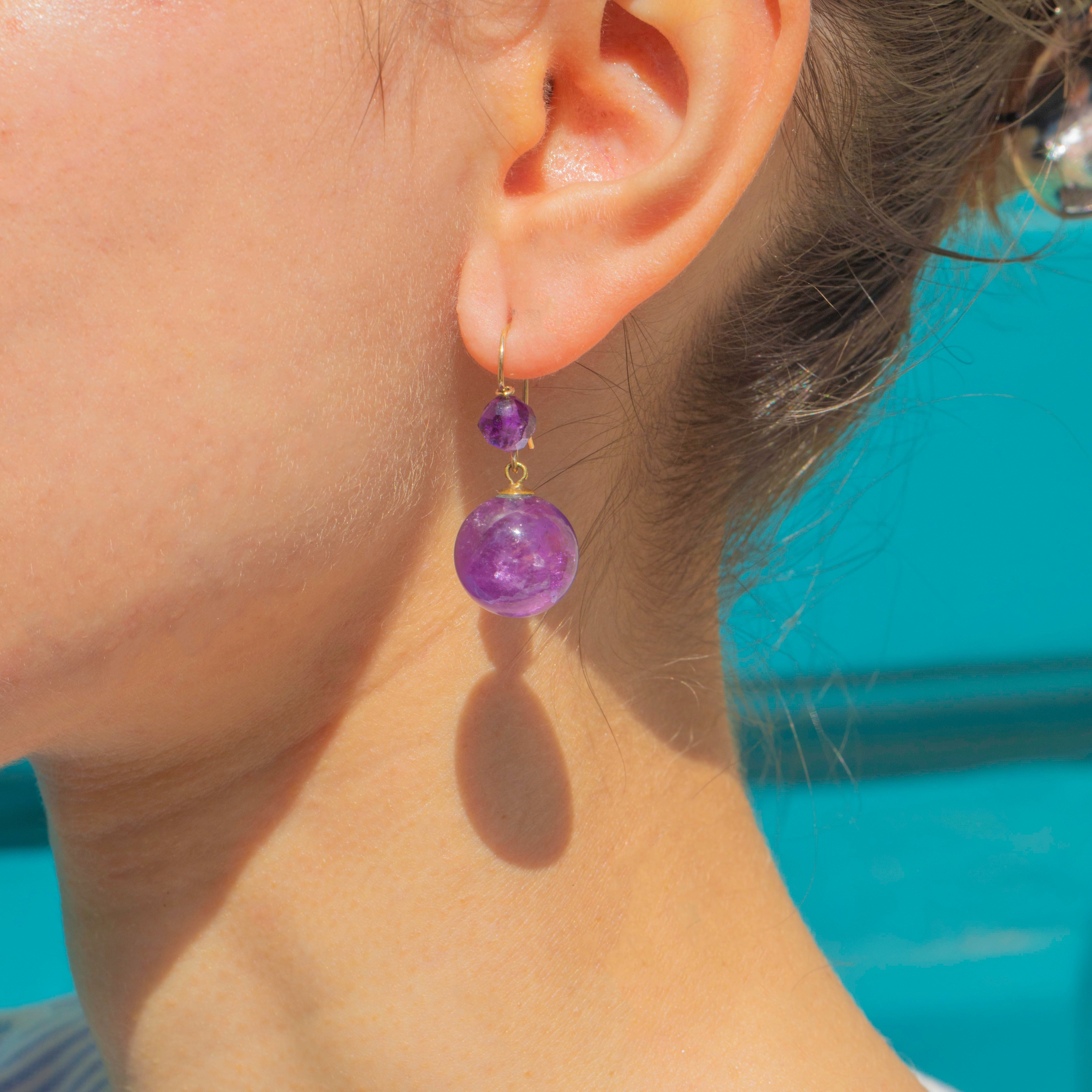 The rounded form of Amethysts lends a soft, celestial charm, while their graceful drop captures the light beautifully, making them a timeless treasure for your collection!