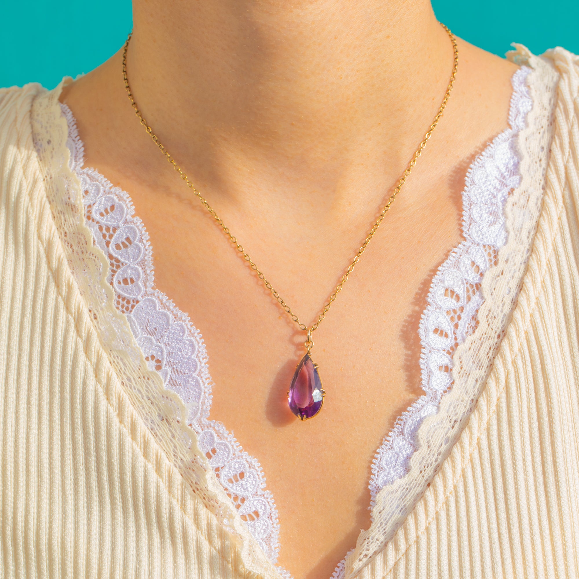 Understated yet luxurious, it’s a classic piece that brings a refined pop of colour to any neckline—equally beautiful worn solo or layered with your favourite pieces.