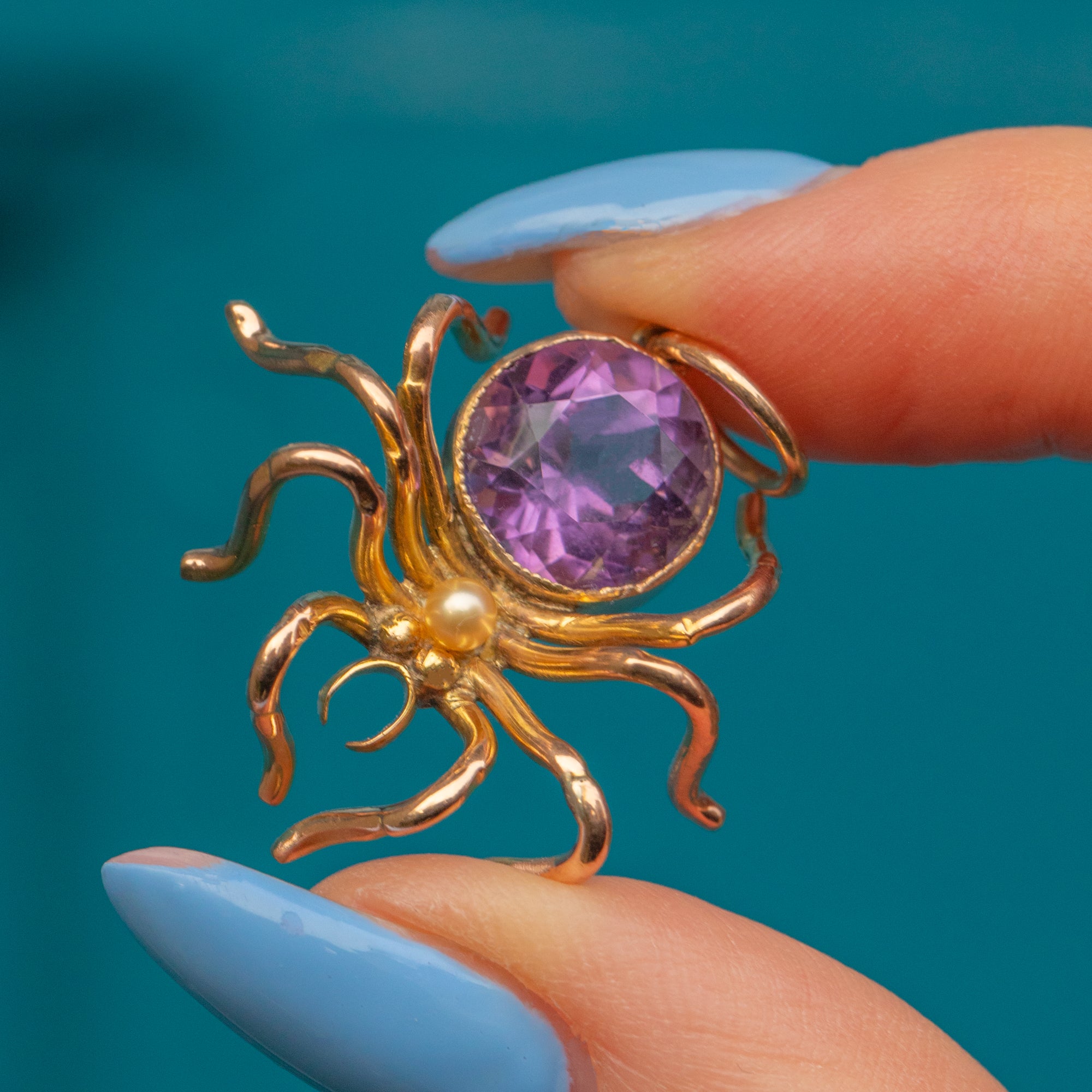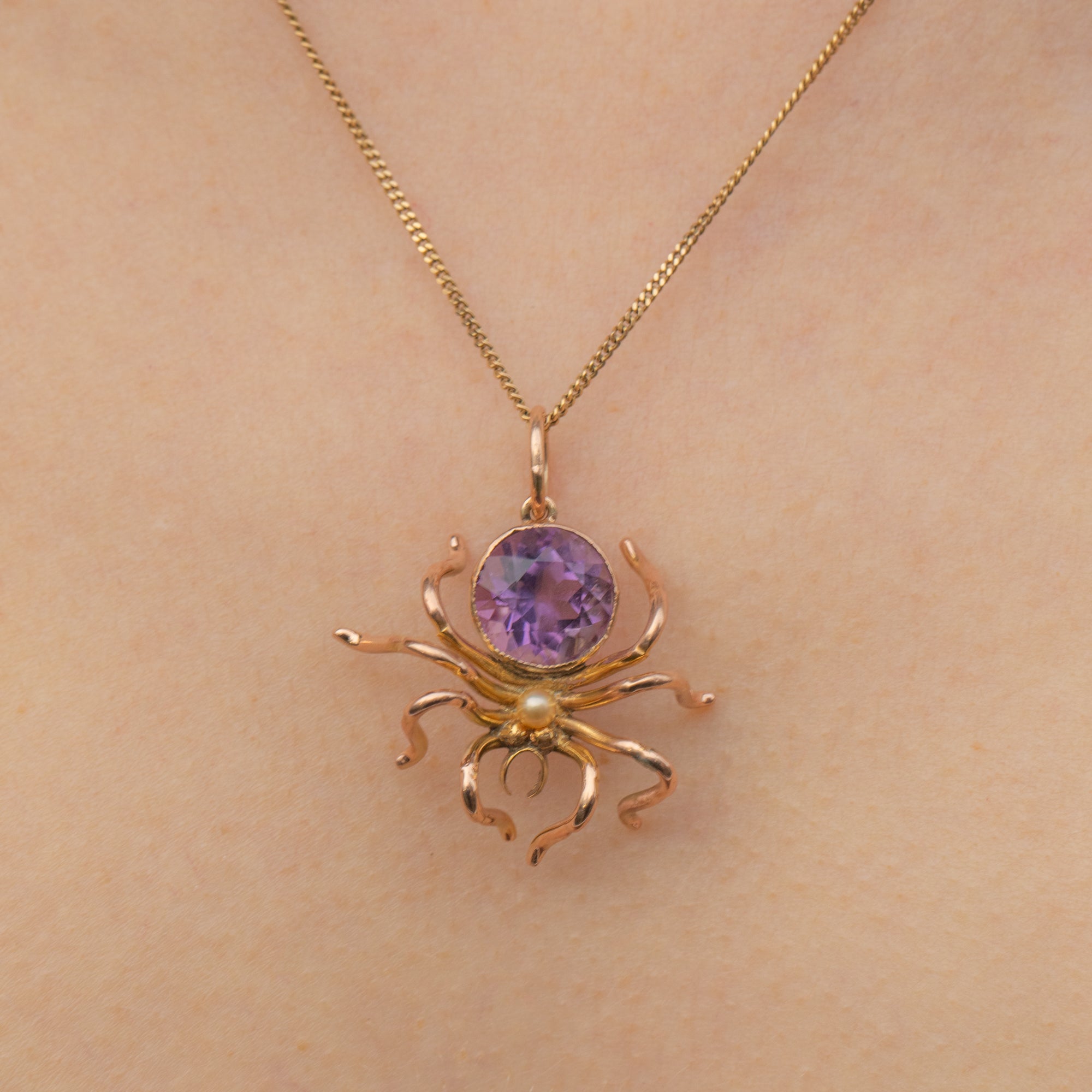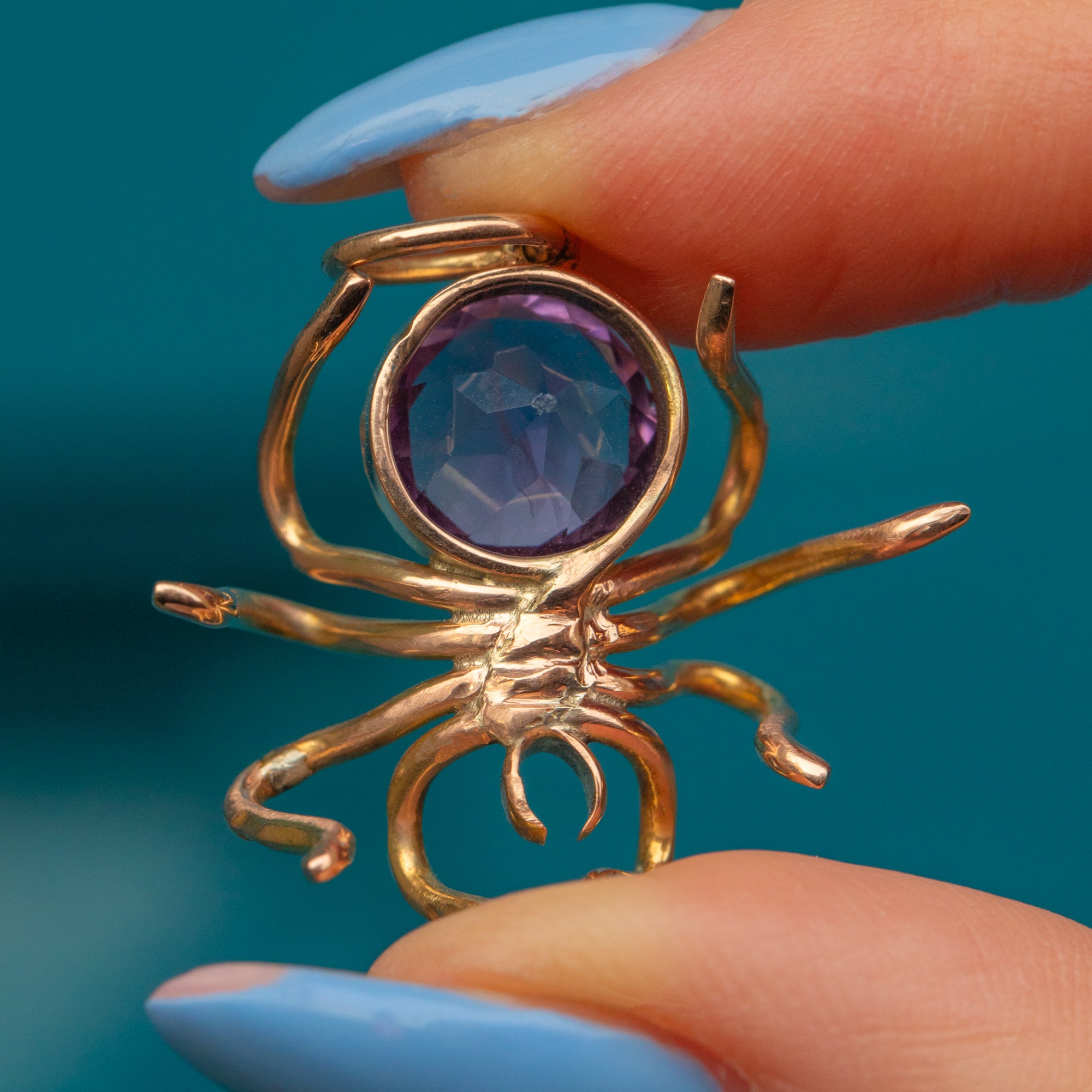 Antique 9ct Gold Amethyst Spider Pendant, 3.39ct