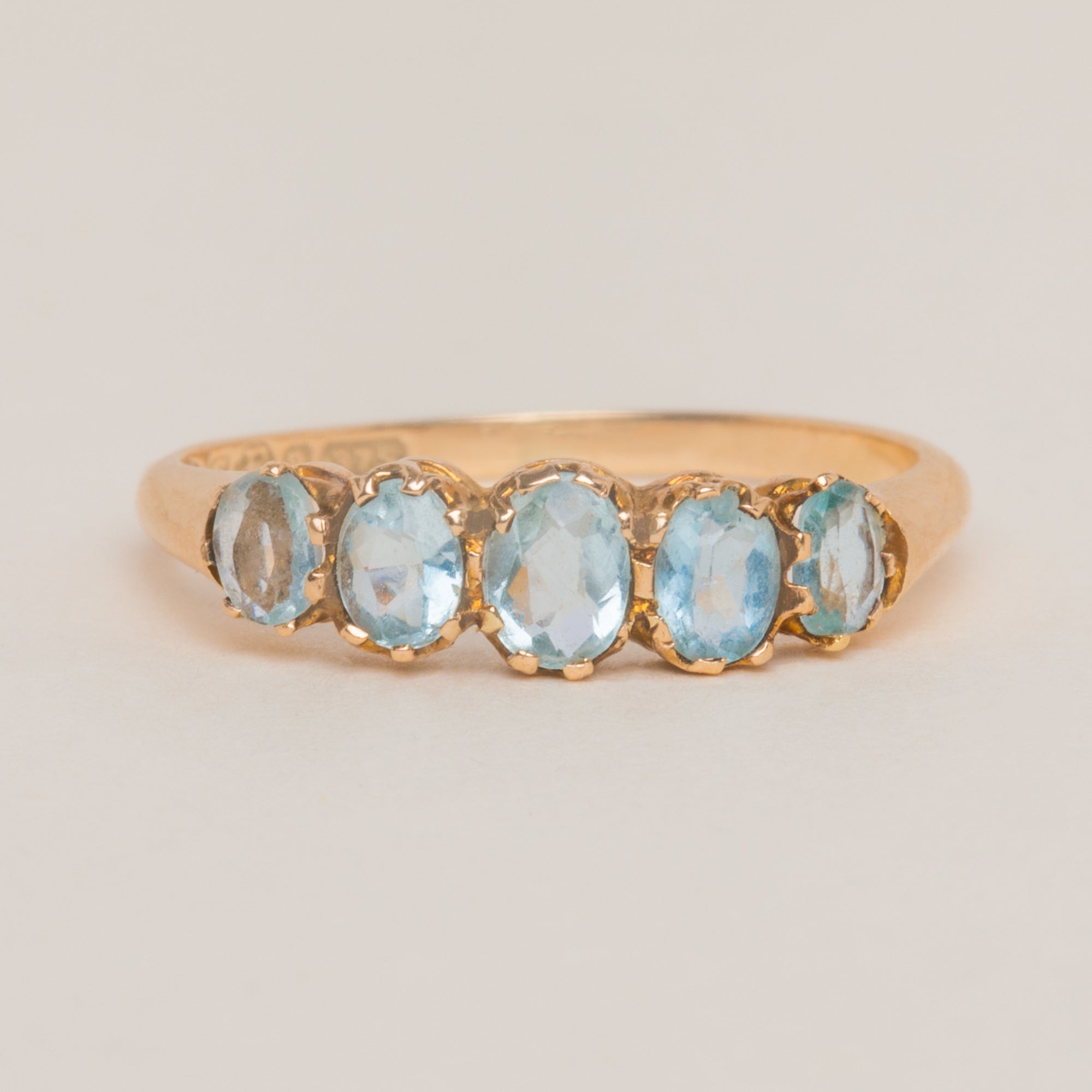 Antique 9ct Gold Aquamarine Five Stone Ring, c.1902
