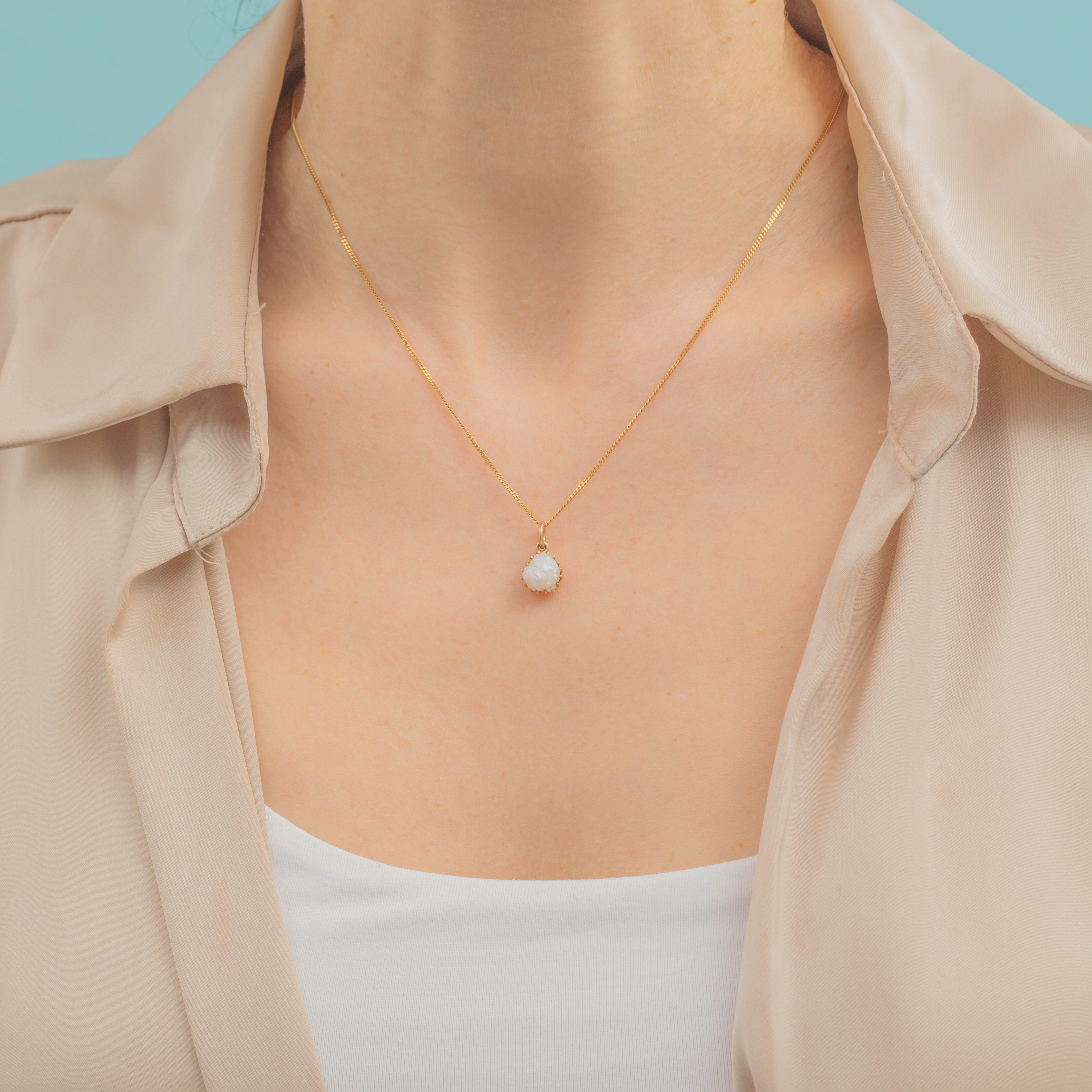 EXCELLENT. This antique 9ct Gold Baroque Pearl charm is in divine condition. Her Pearl has a naturally irregular form and beautiful luminosity, and is securely set within 9ct Gold claws. The Gold is bright and buttery, free from damage. She will easily suspend from a fine chain!