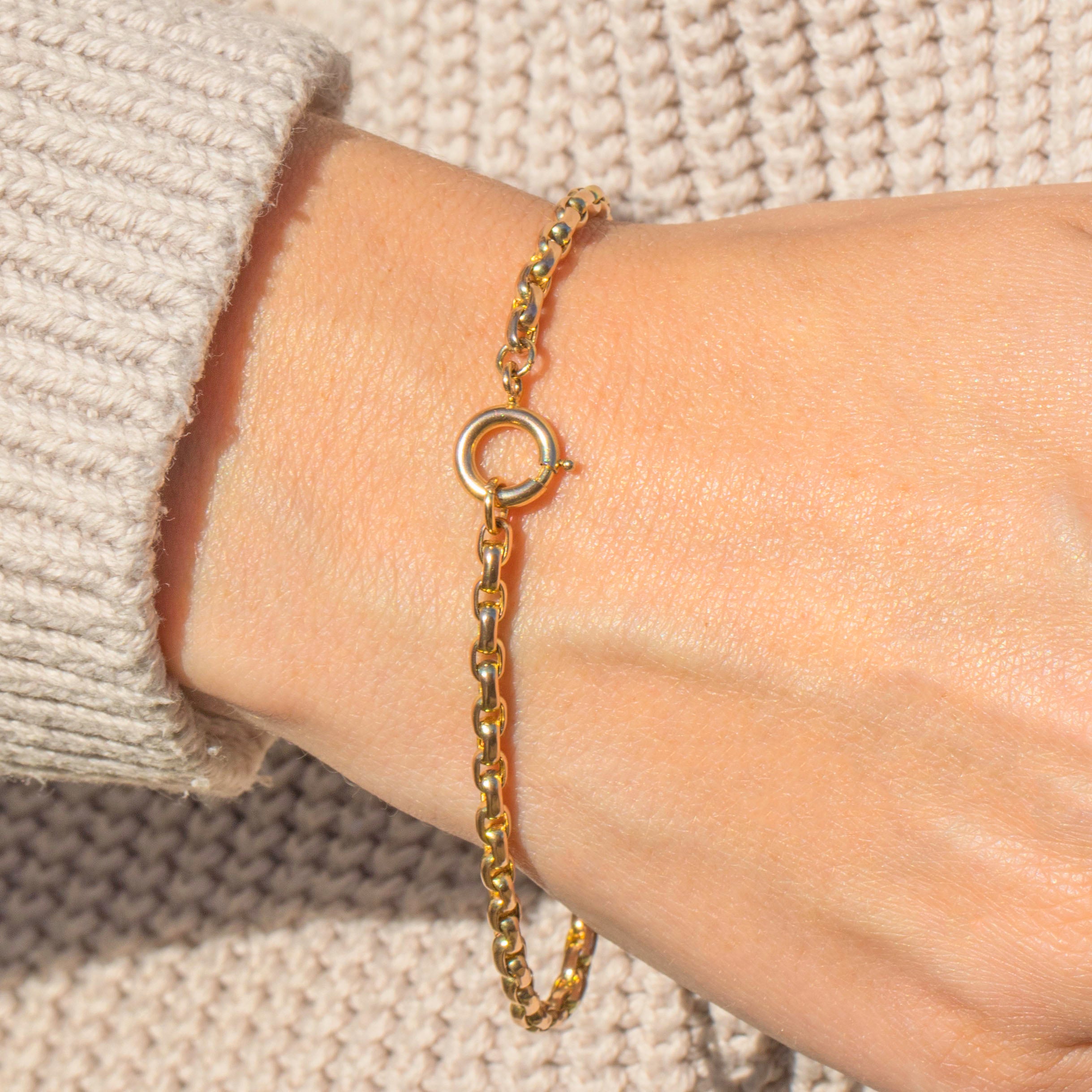 Antique 9ct Gold Belcher Bracelet, with Bolt Ring Charm Holder