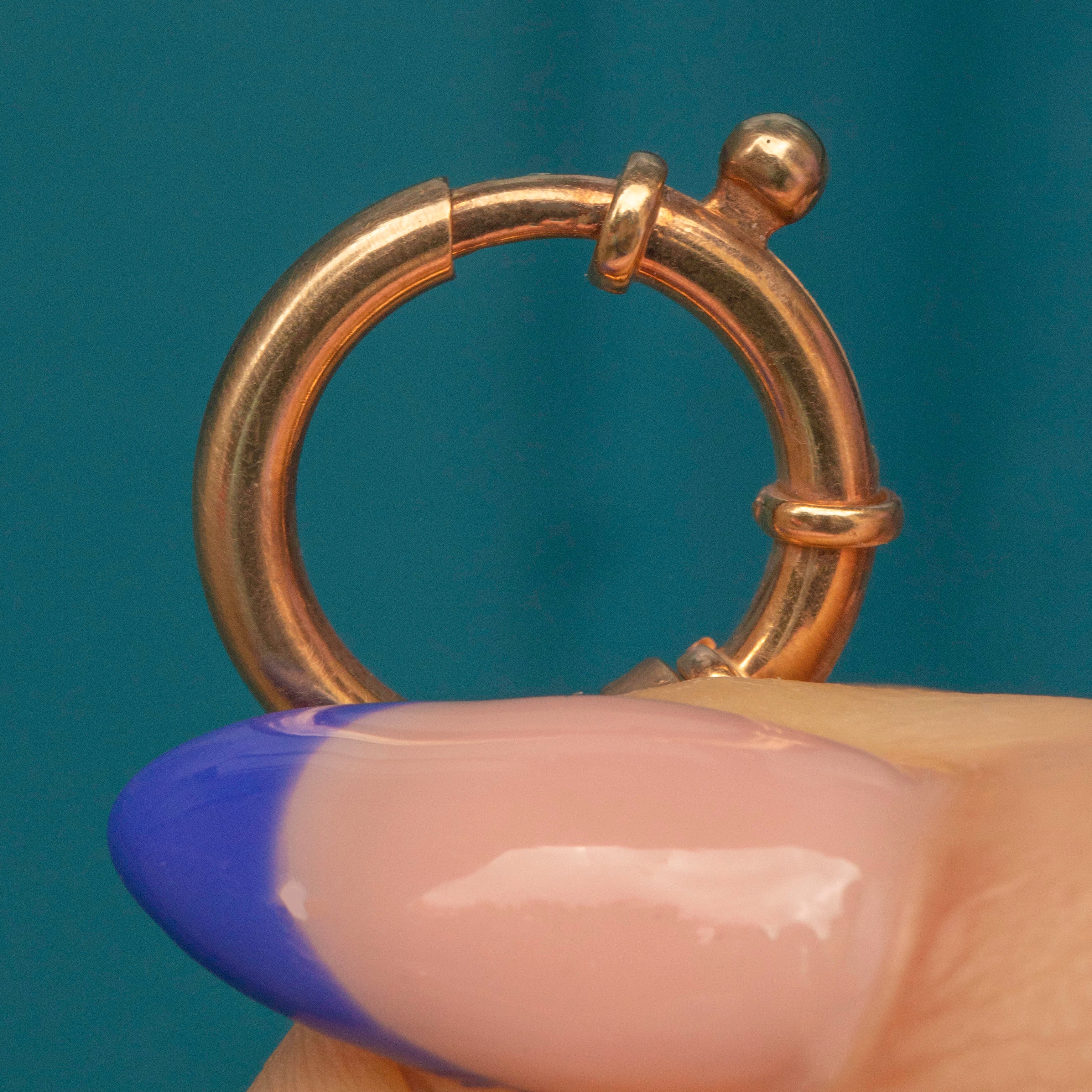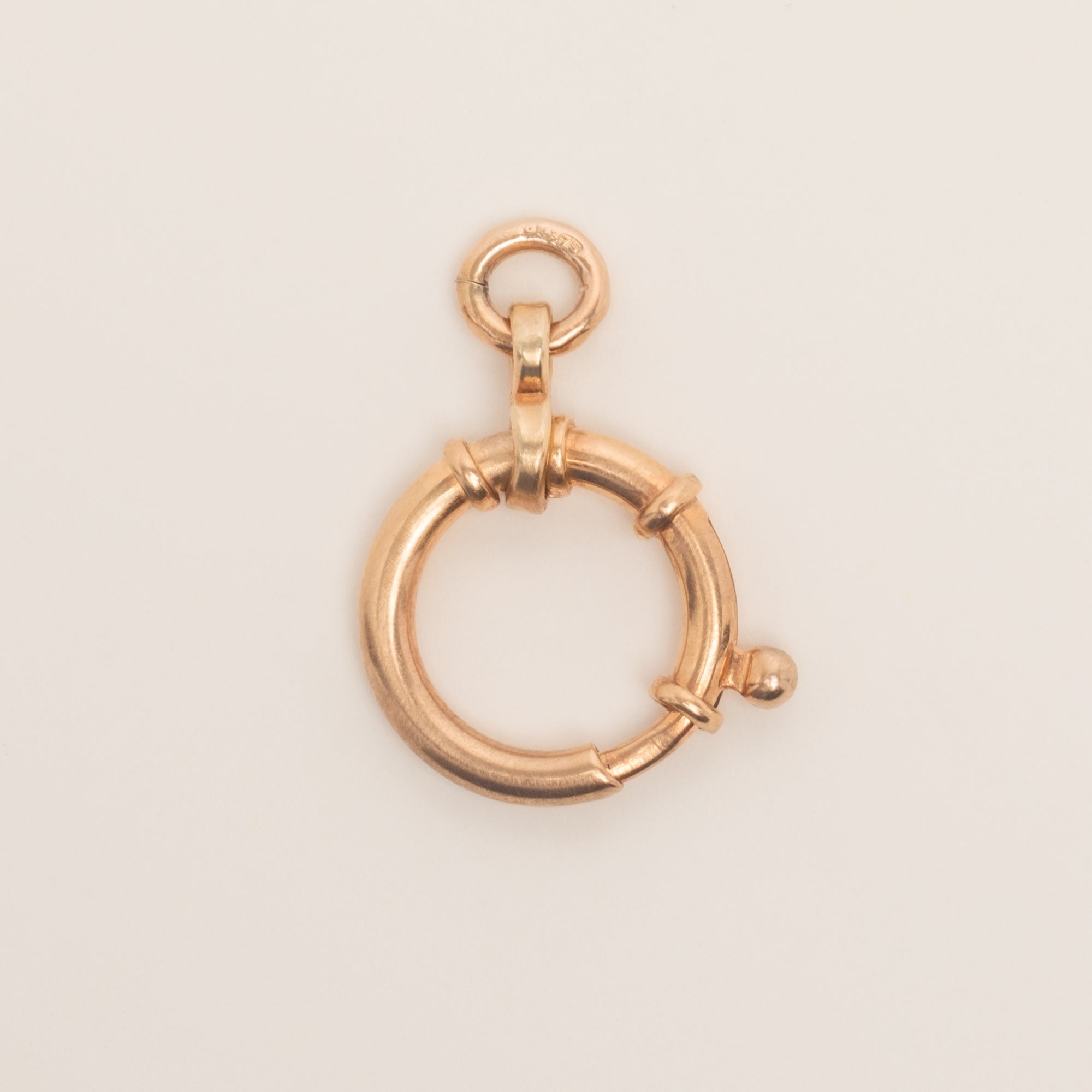 EXCELLENT. This antique 9ct Gold bolt-ring is offered in excellent condition. The 9ct Gold is brightly saturated and free from any dents, with only minor age-related surface wear throughout. The mechanism is in perfect working condition, providing a secure closure and ensuring that any charm or pendant is securely suspended. With proper care and maintenance, this clasp will last for generations to come!