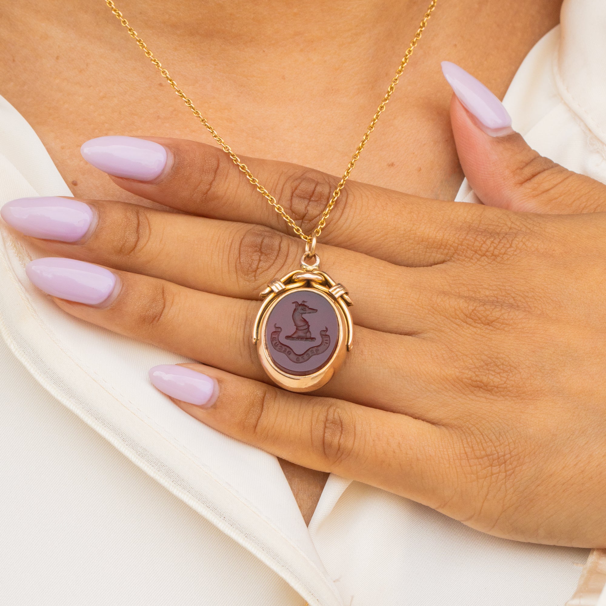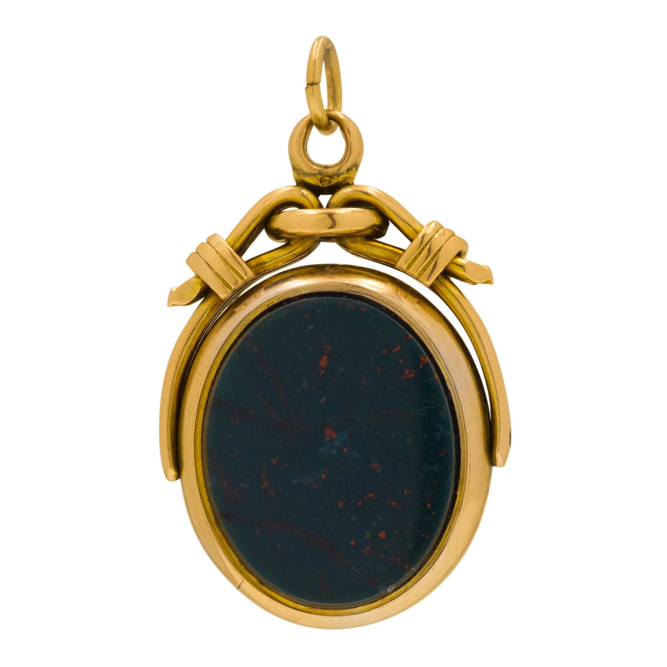 Pendentif pivotant antique en or 9 carats avec cornaline et héliotrope, « In Recto Dues » - Il y a de l'honneur dans le droit chemin