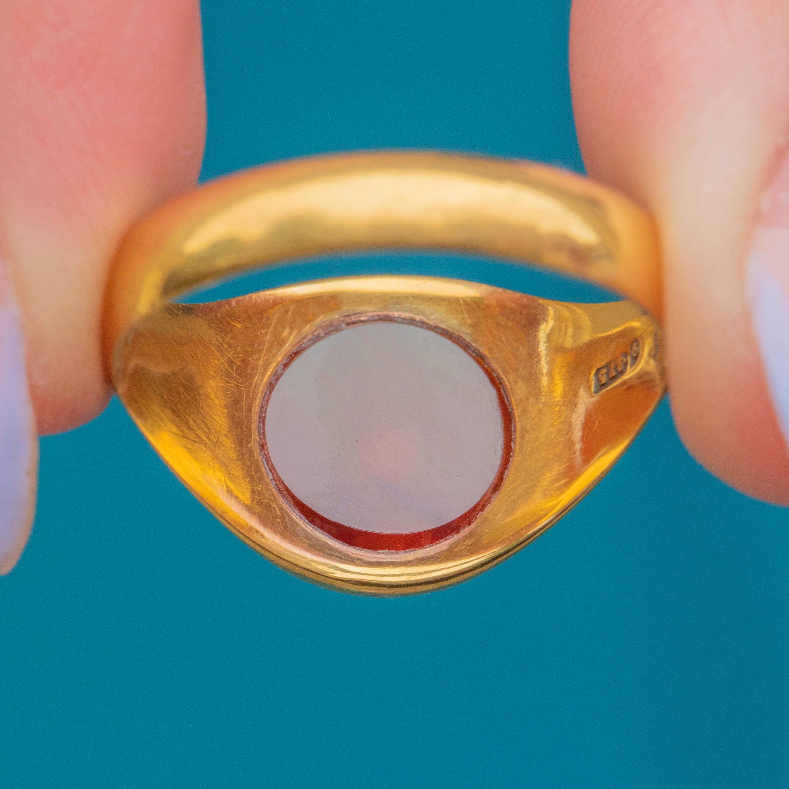 MATERIALS: Tests as 9ct Gold, Carnelian.
