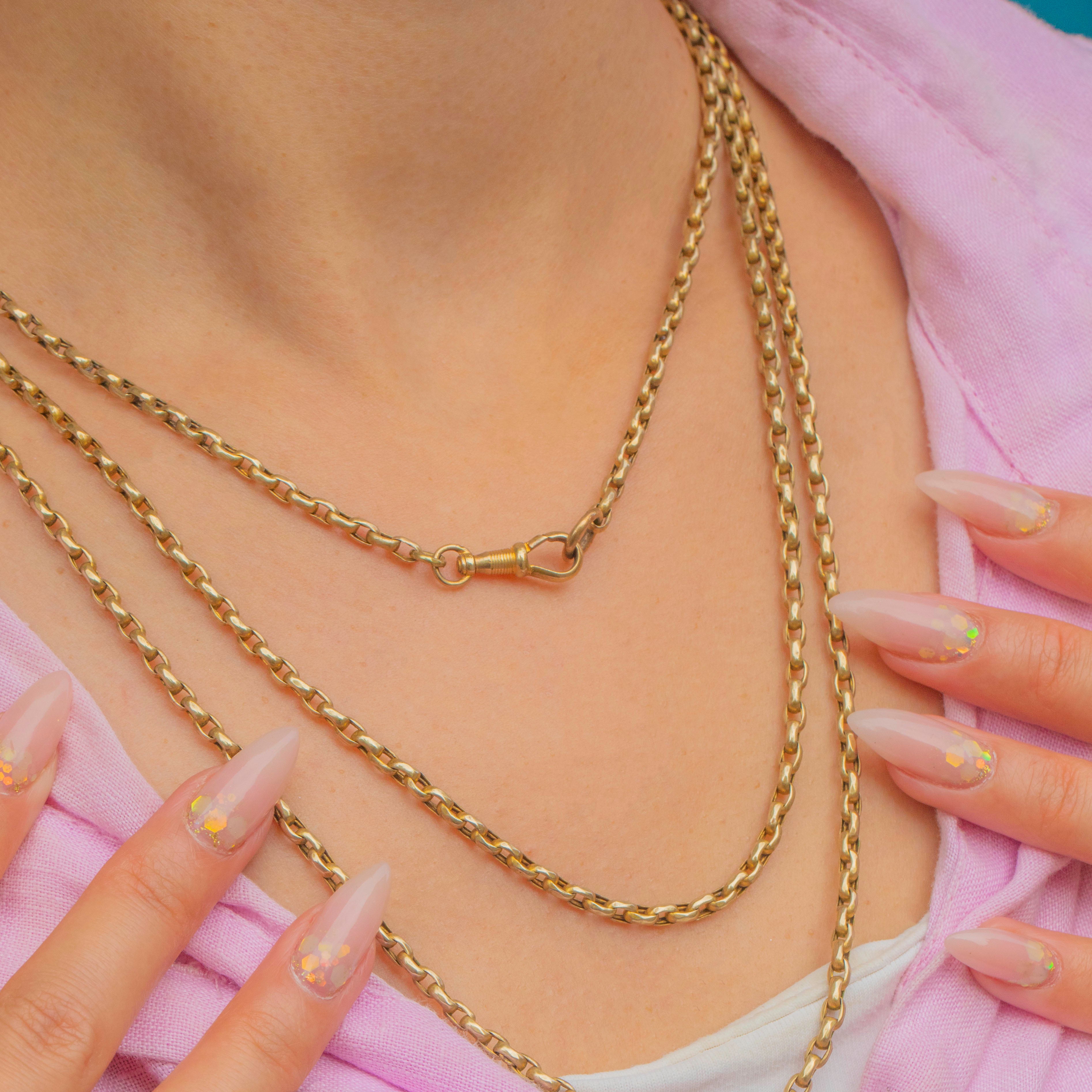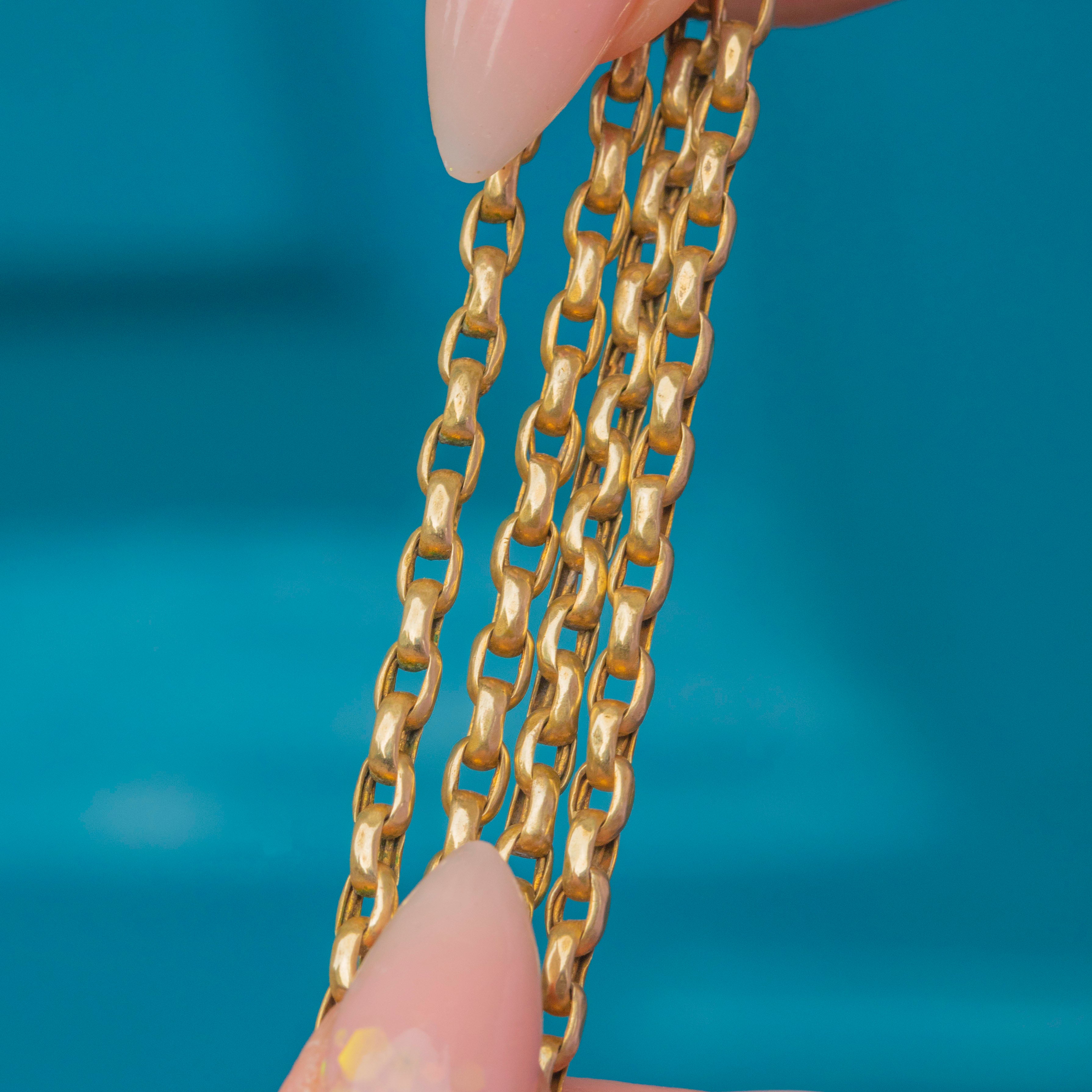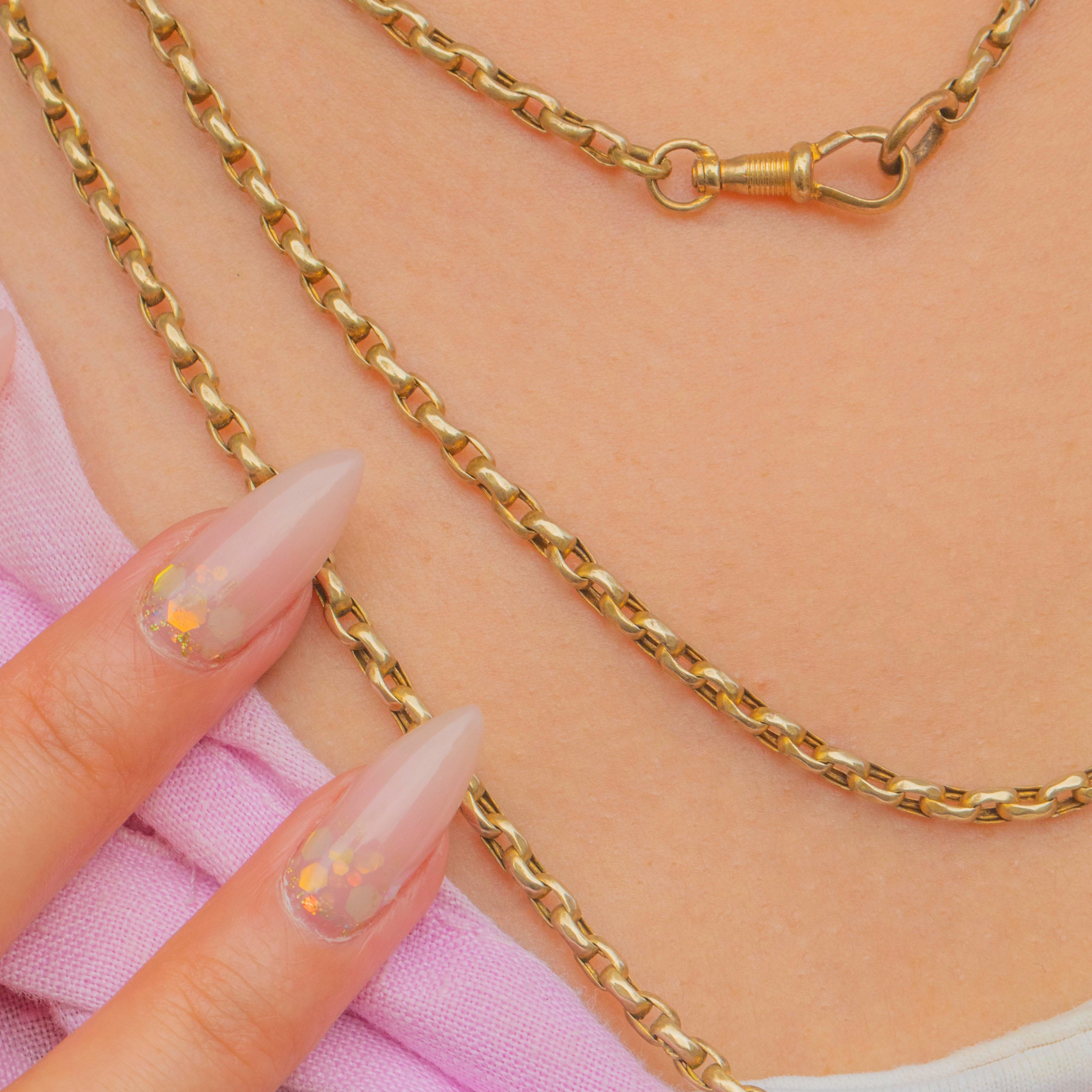 Measuring an impressive 57" in length, this chain offers endless styling opportunities. It can be worn long, doubled, or even layered with other antique necklaces for a bold statement. A versatile and classic piece of Victorian jewellery with a rich golden hue.