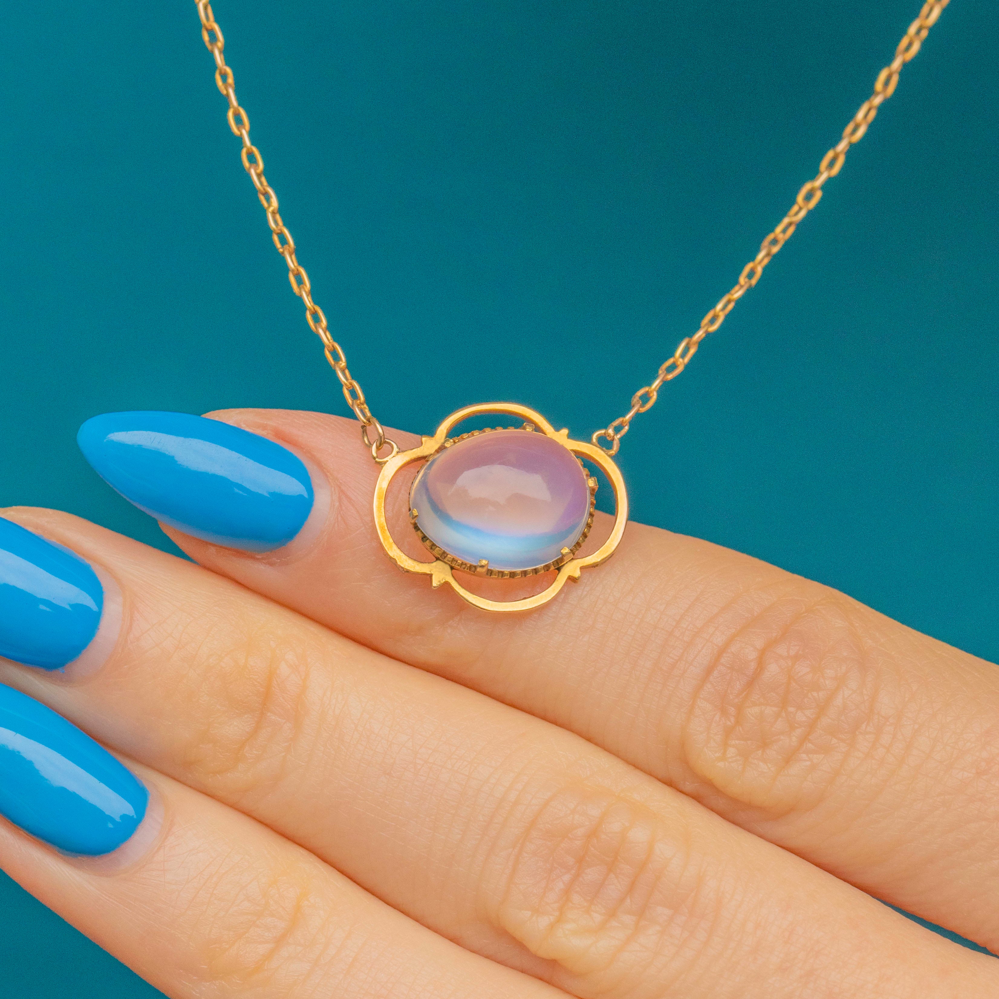 Art Nouveau Ceylon Moonstone Integral Necklace, 3.70ct