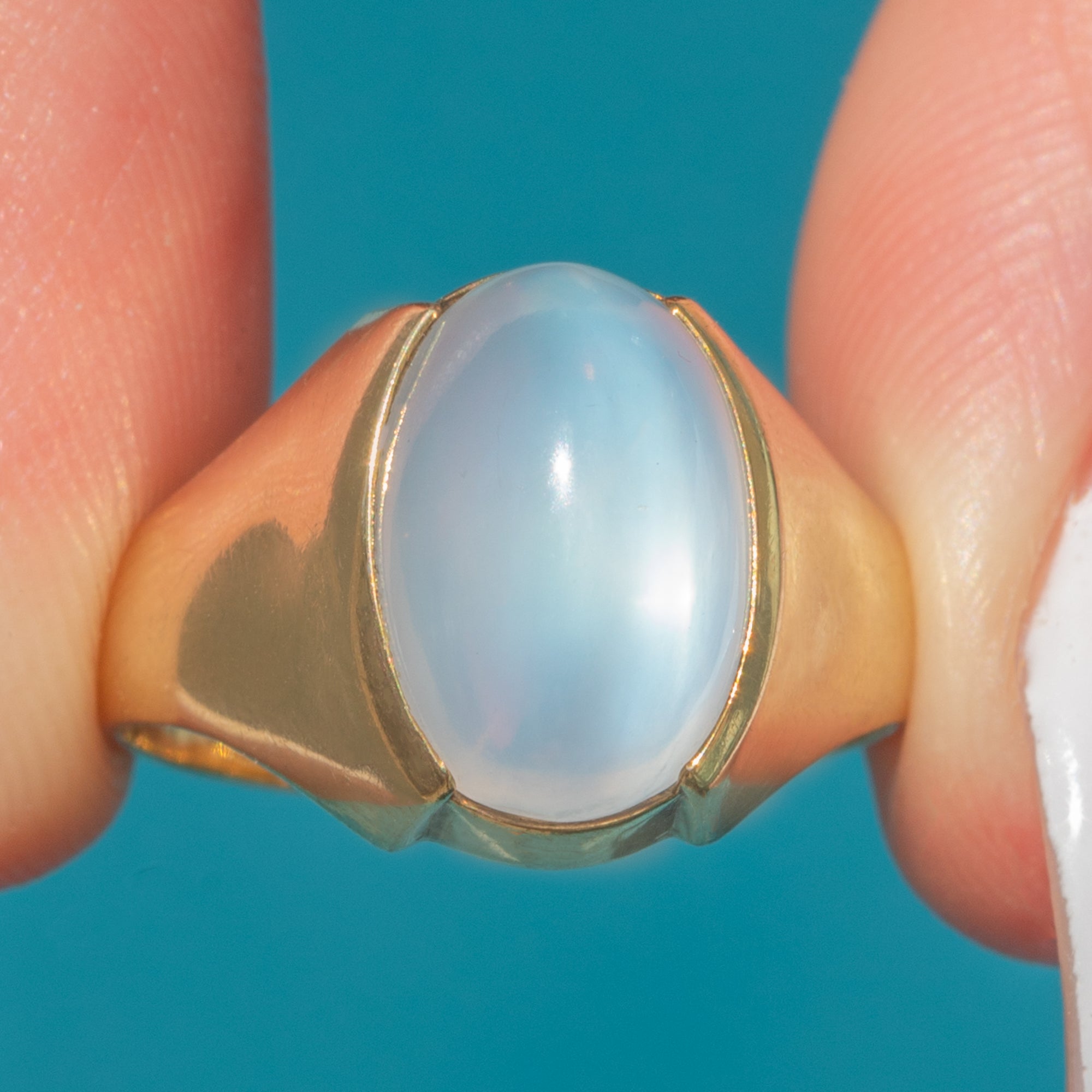 Antique 9ct Gold Ceylon Moonstone Cabochon Ring 3.40ct