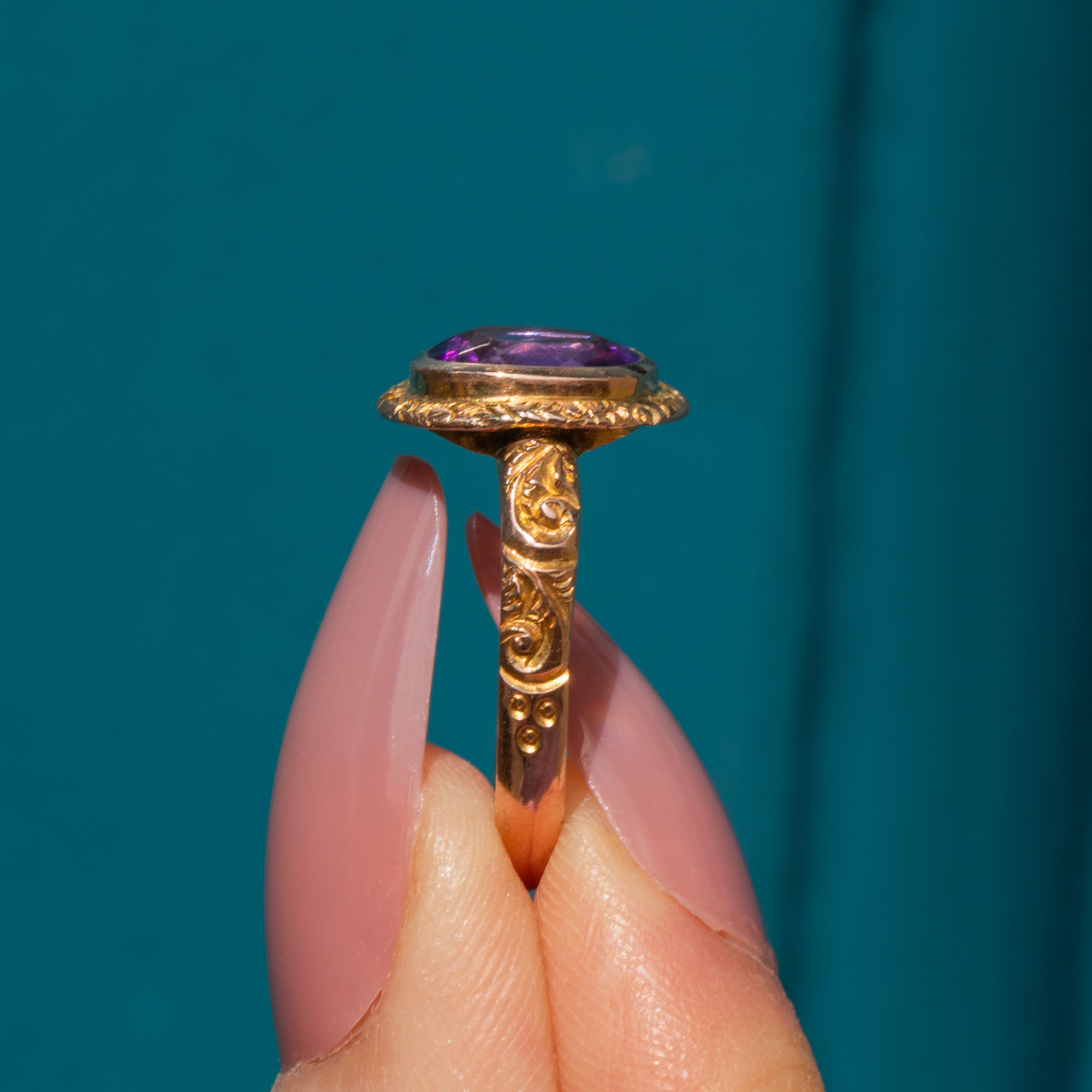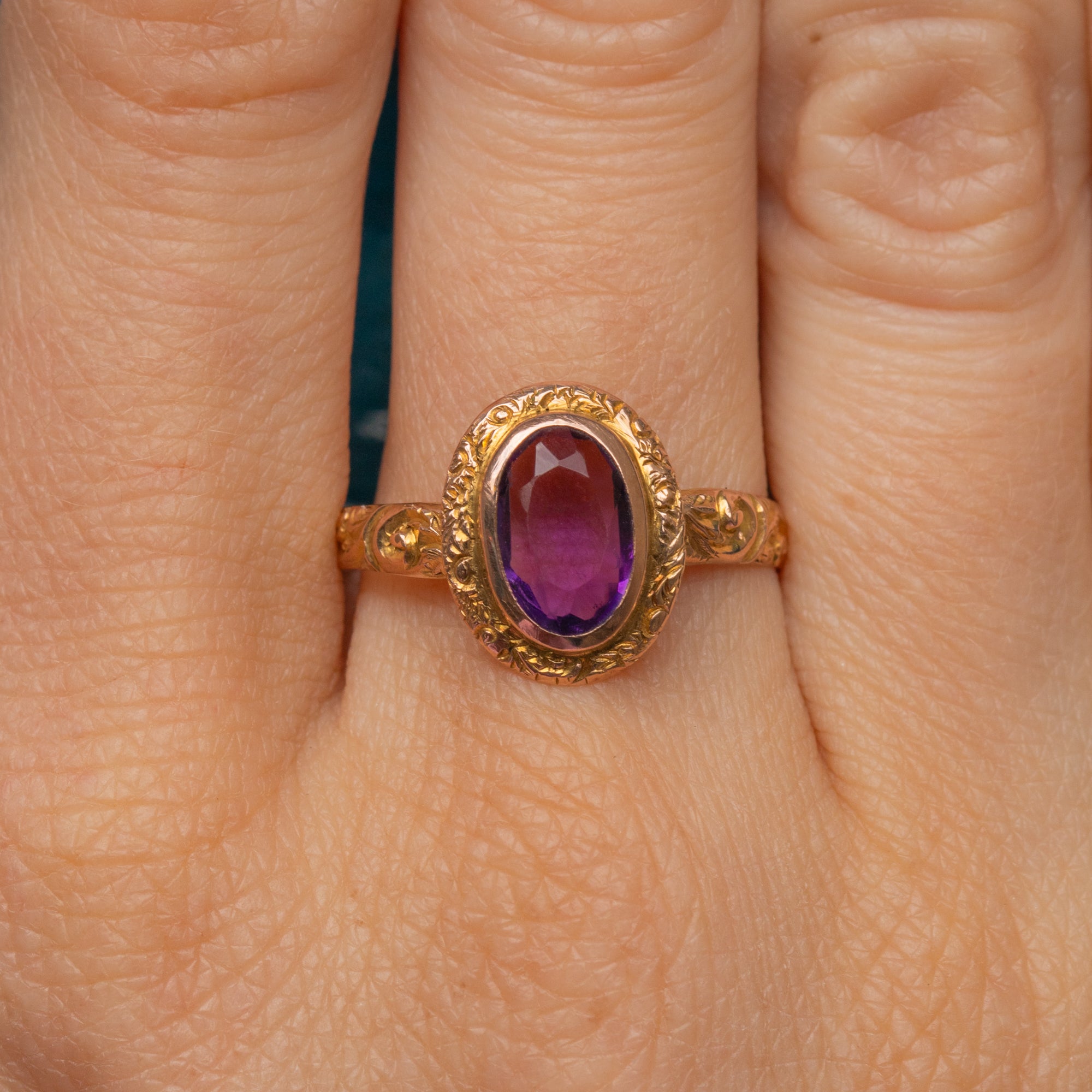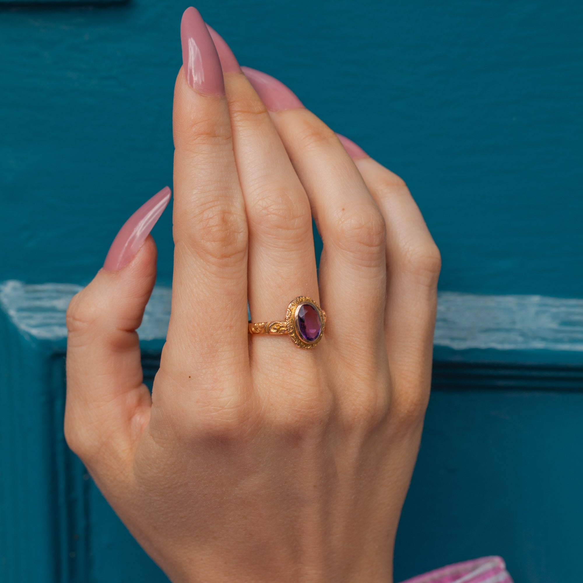 Antique 9ct Gold Chased Amethyst Ring 0.70ct, c.1919