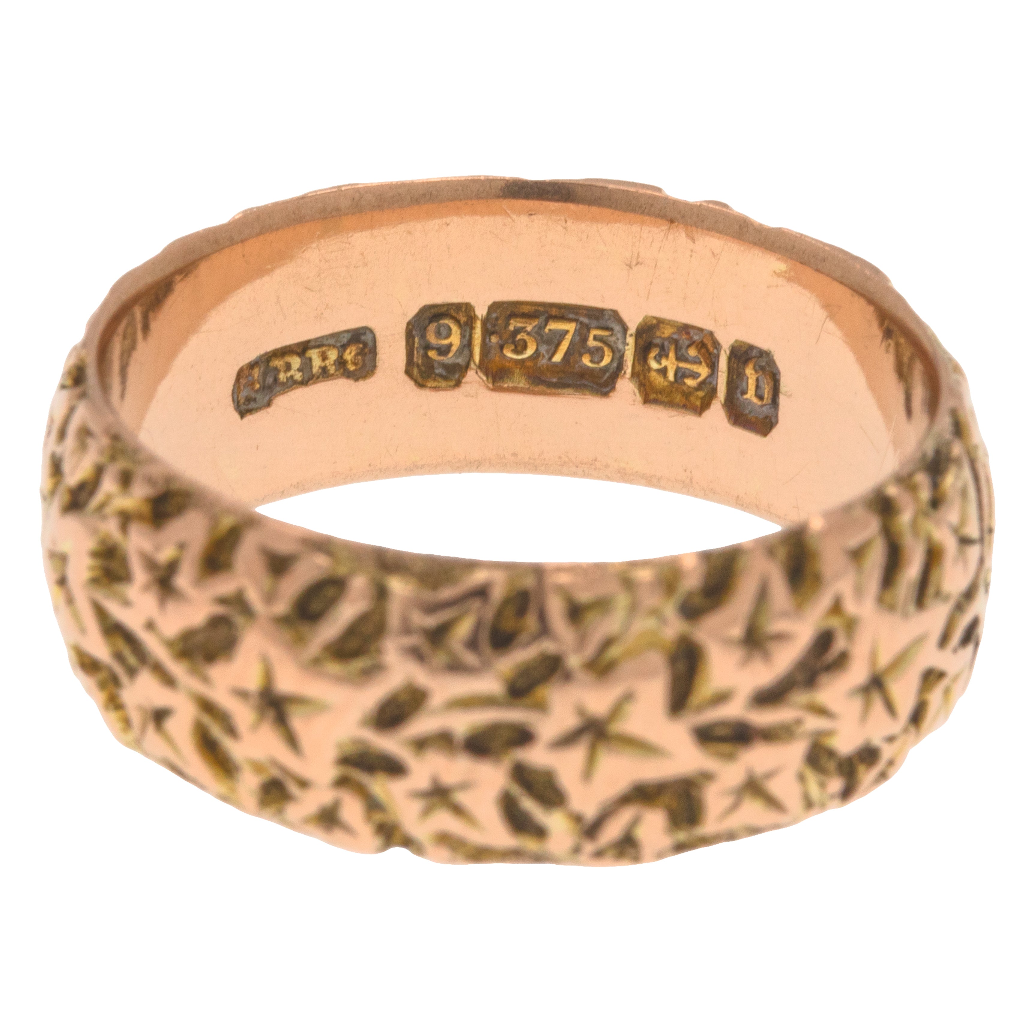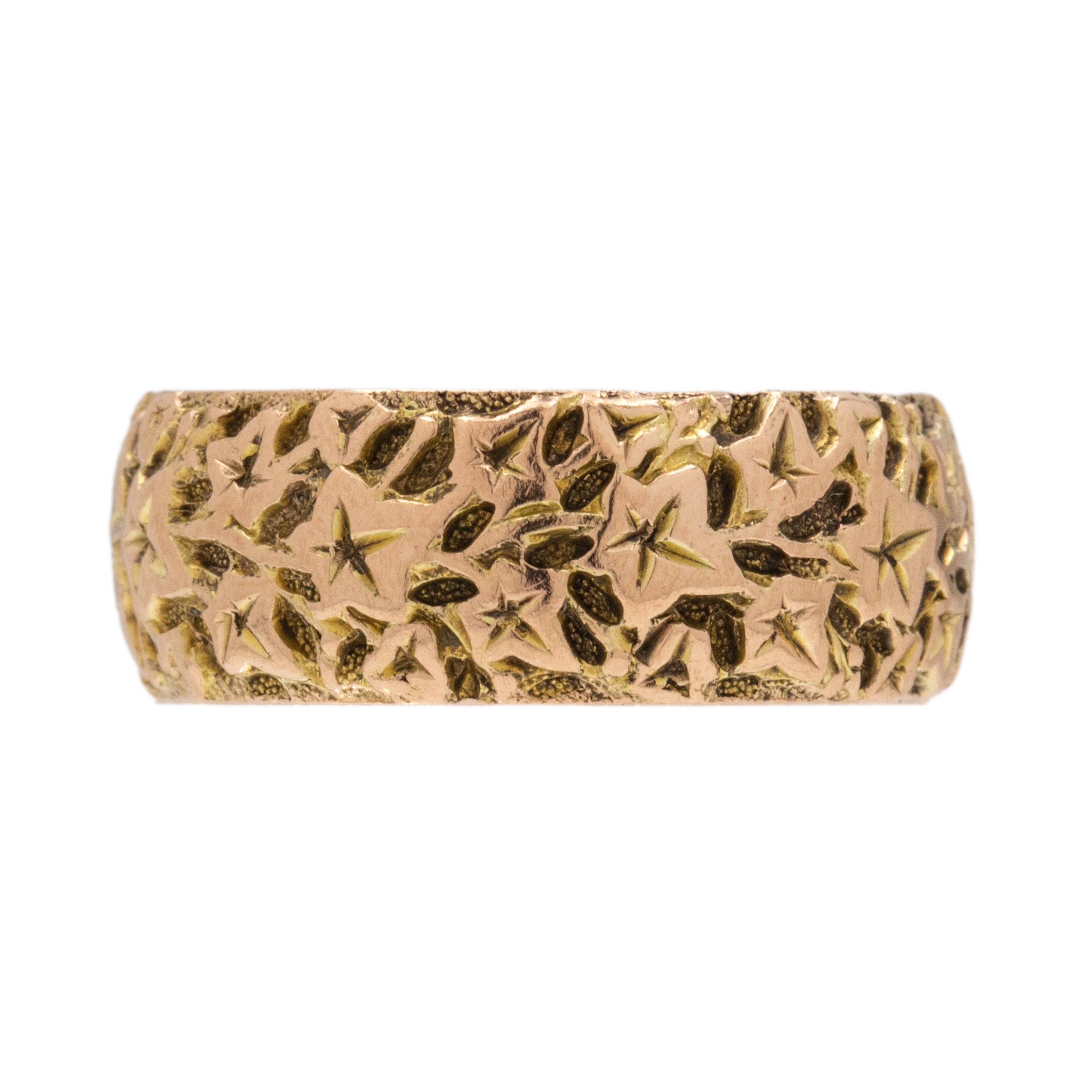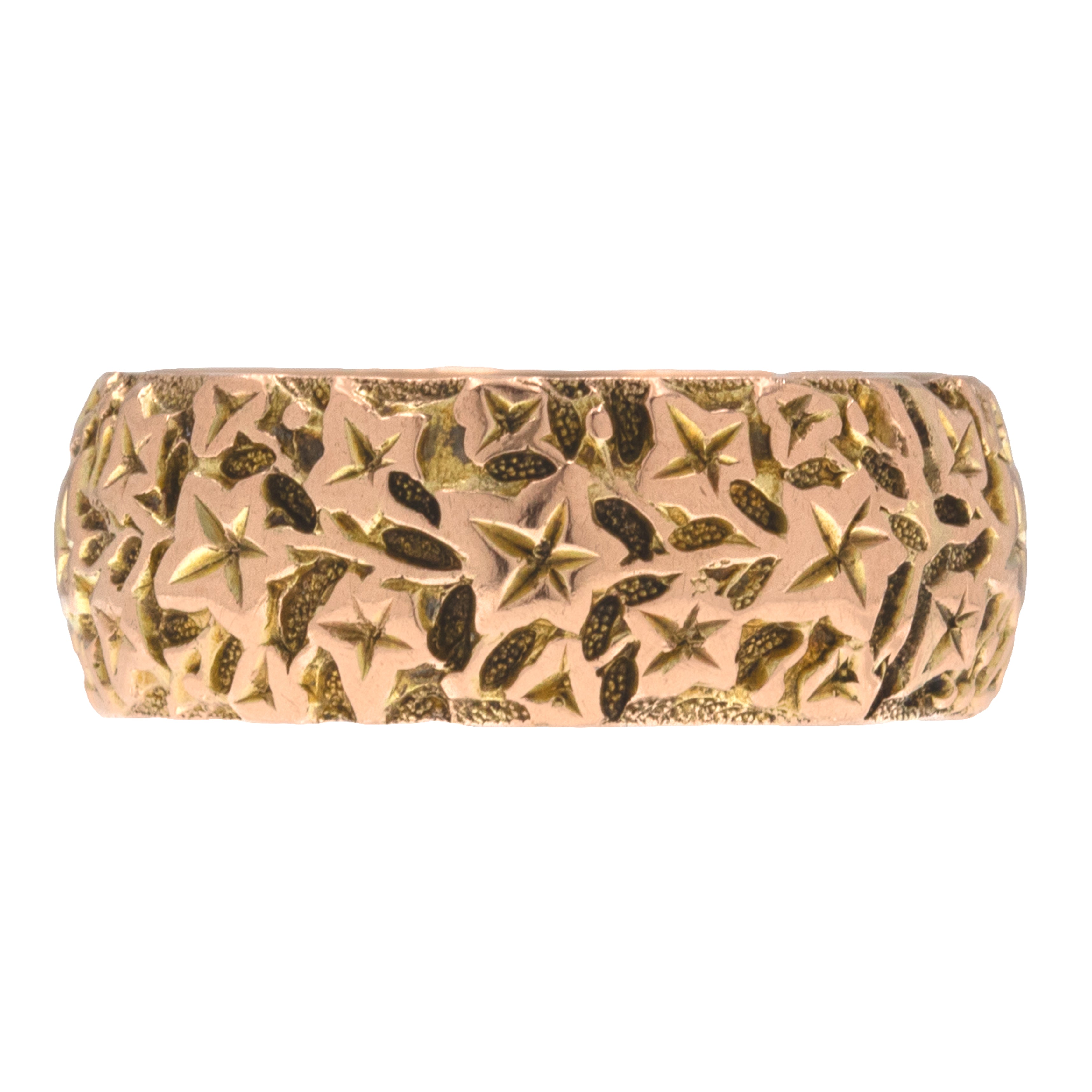 Bague ancienne en or 9 carats avec feuille de lierre gravée et design massif