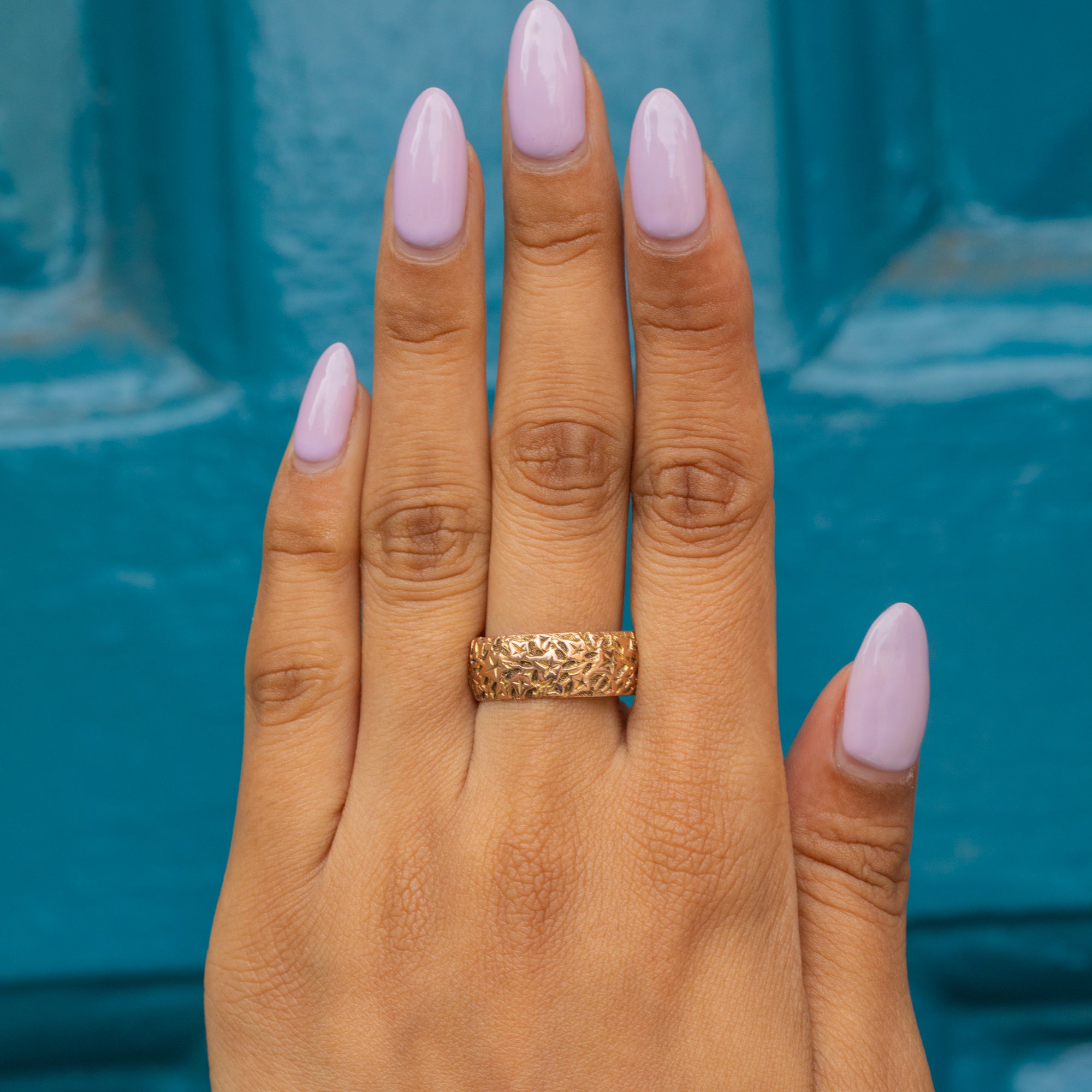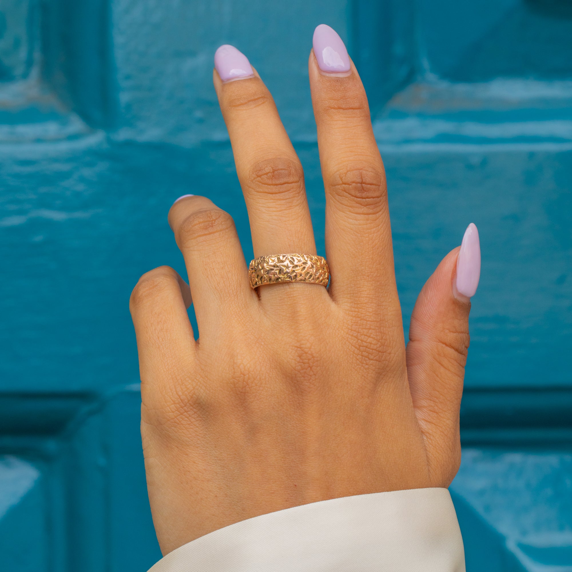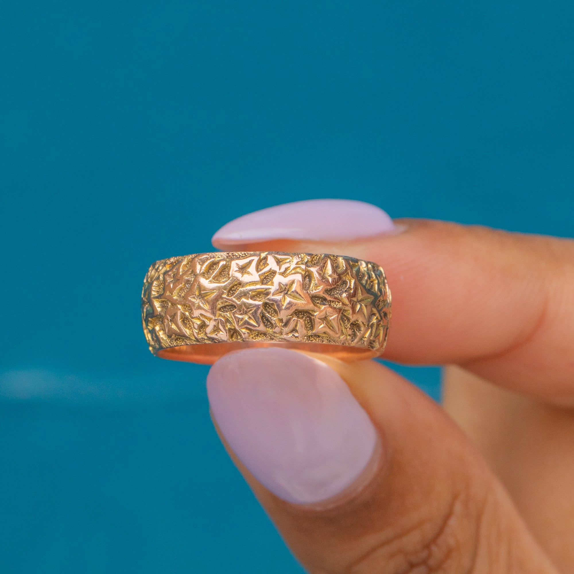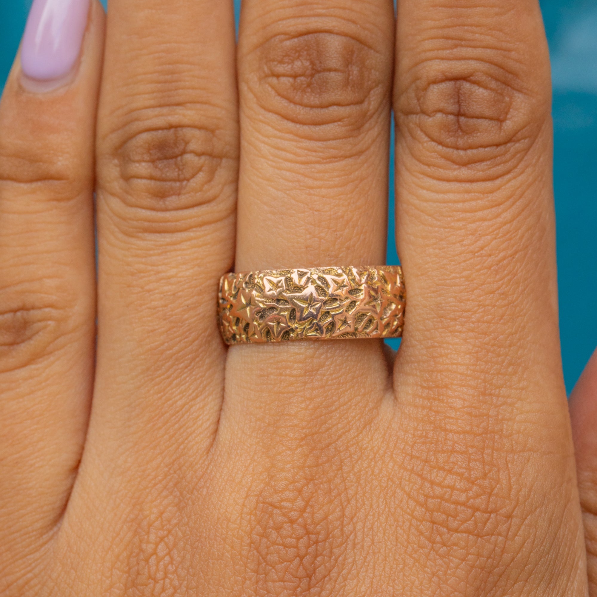 Bague ancienne en or 9 carats avec feuille de lierre gravée et design massif