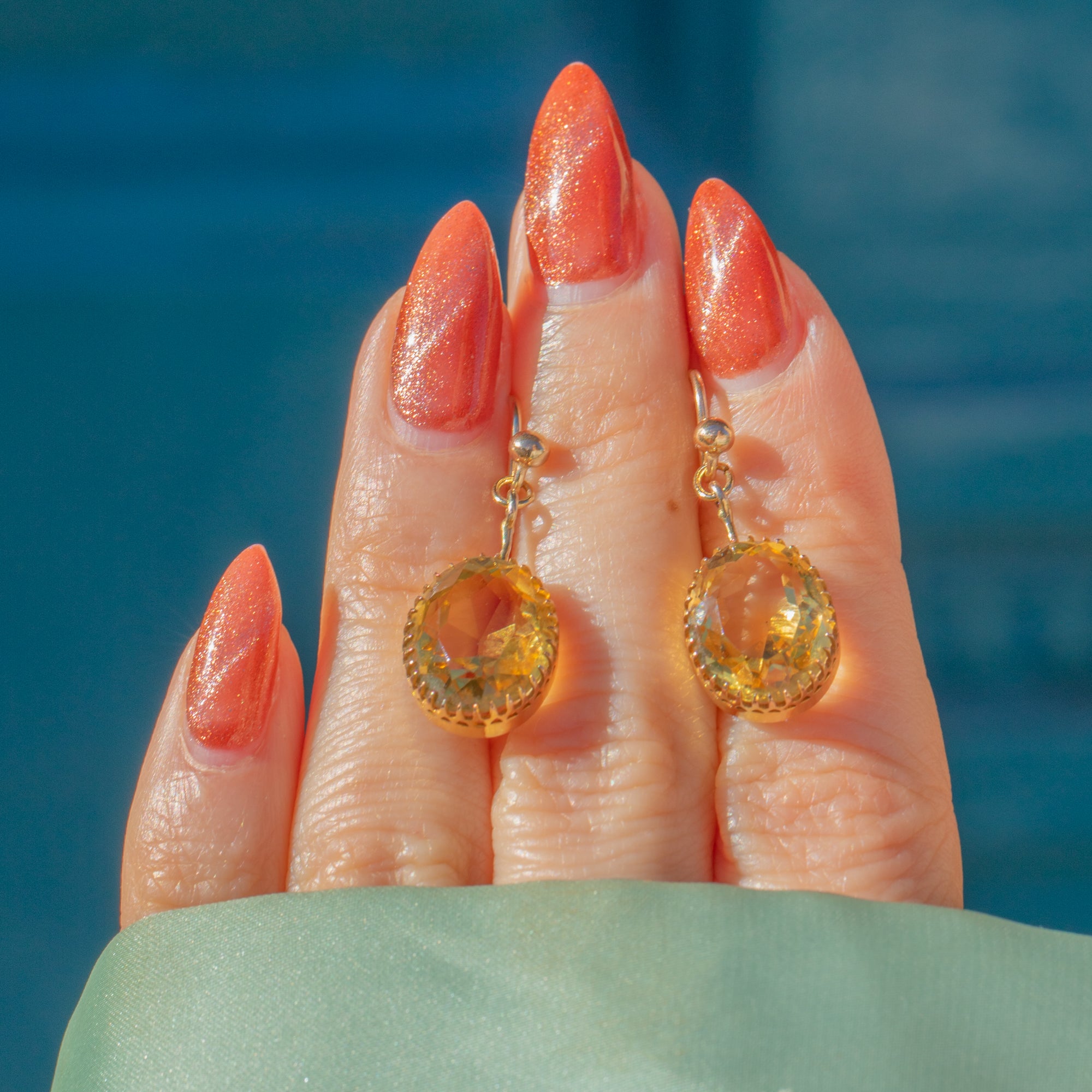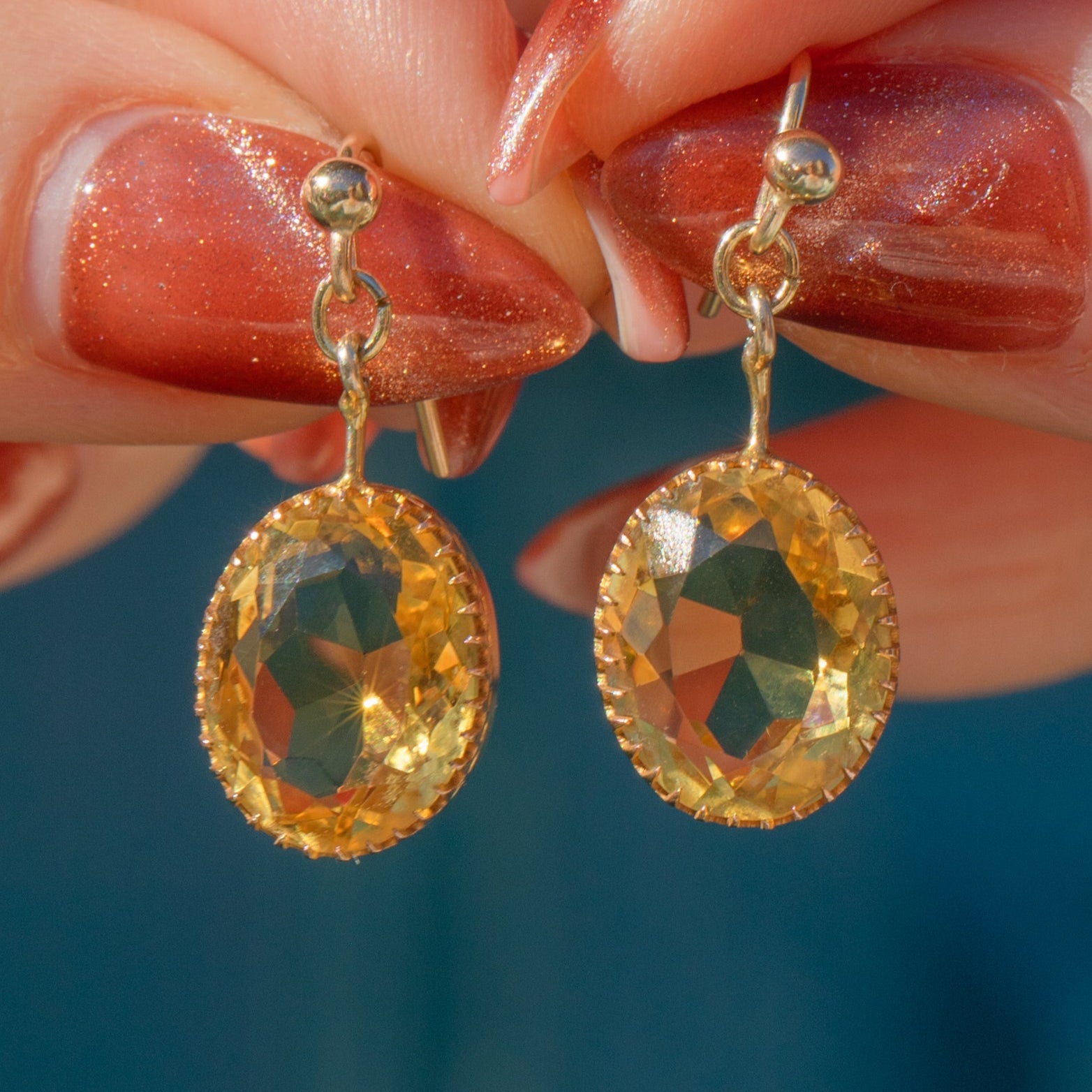 Antique 9ct Gold Citrine Earrings 8.60ct