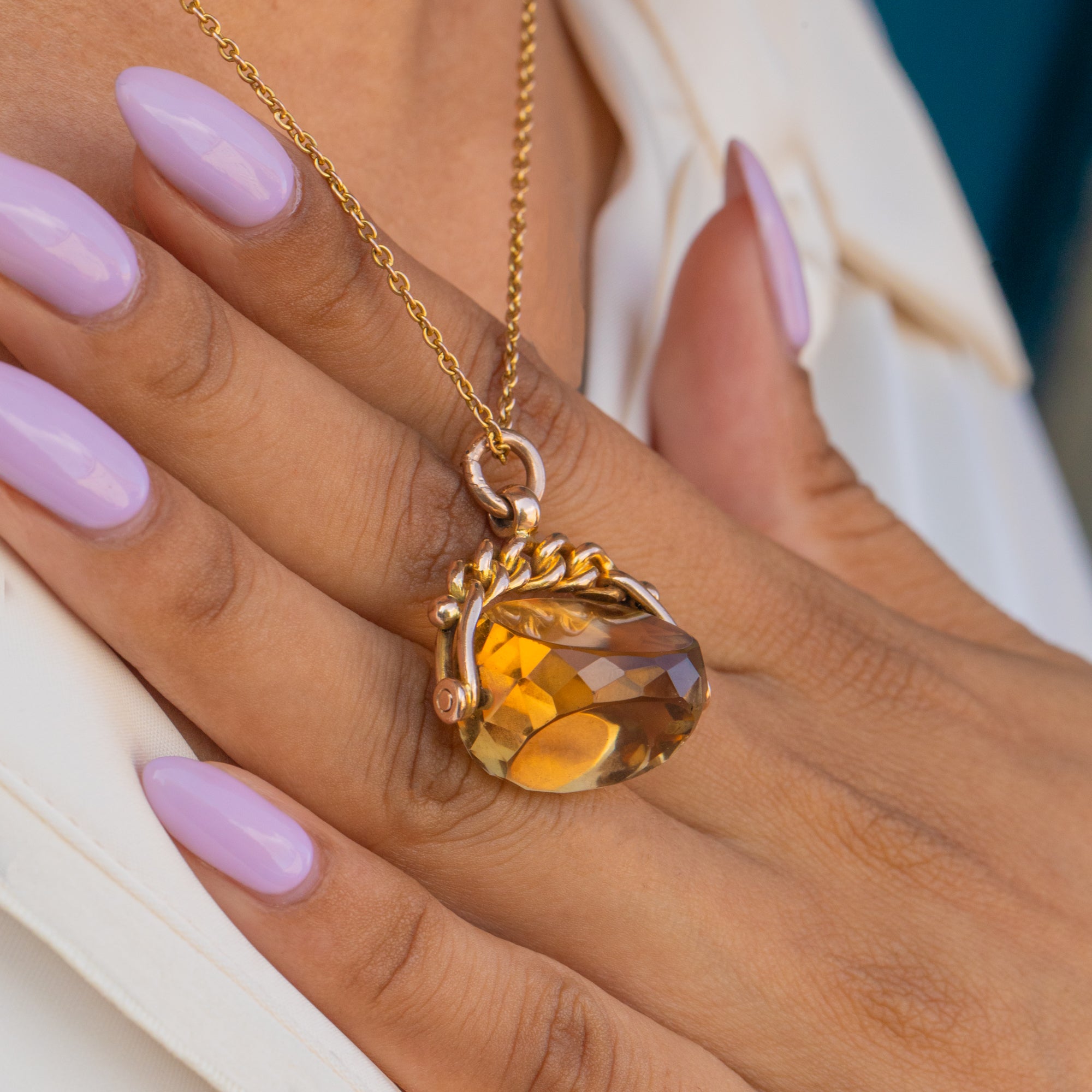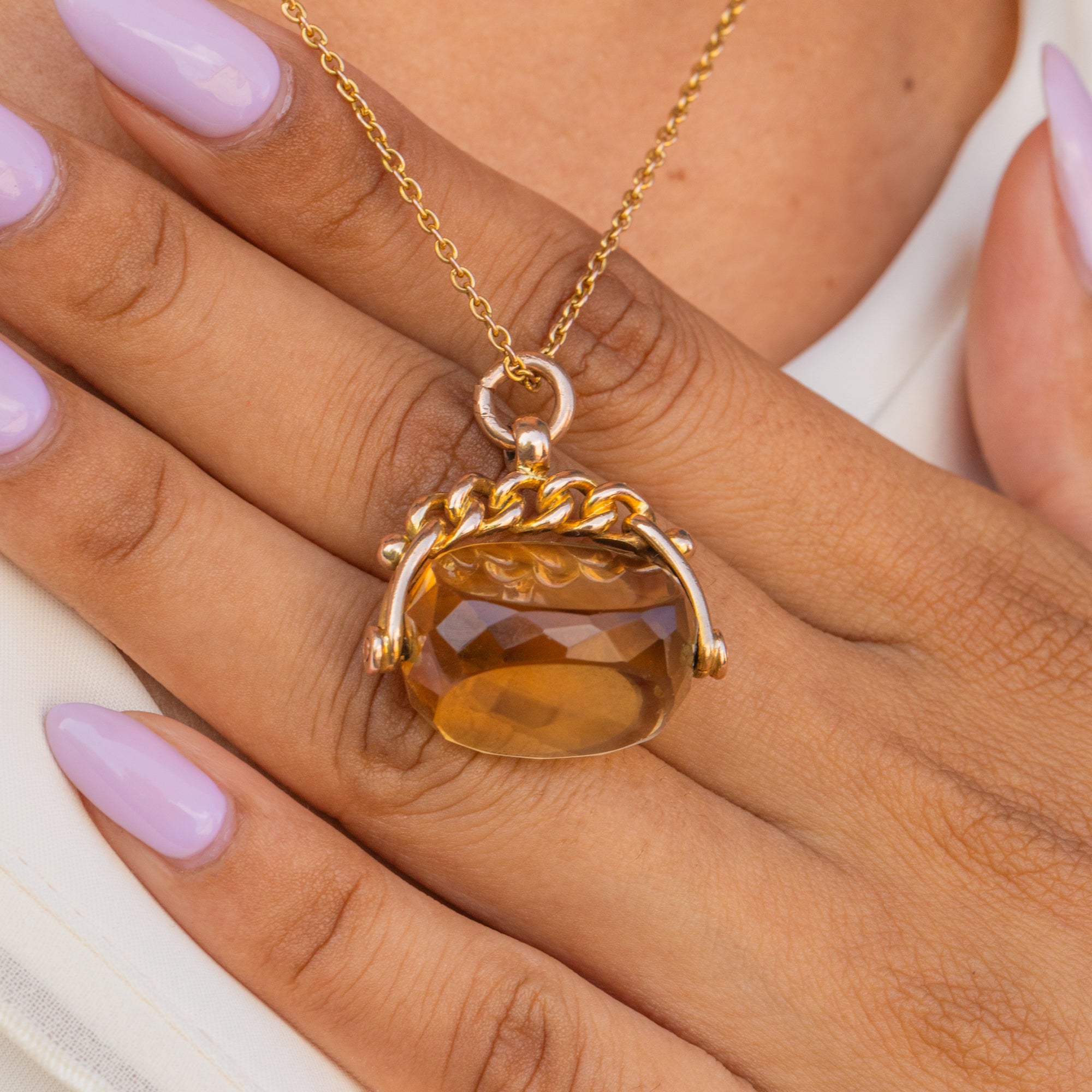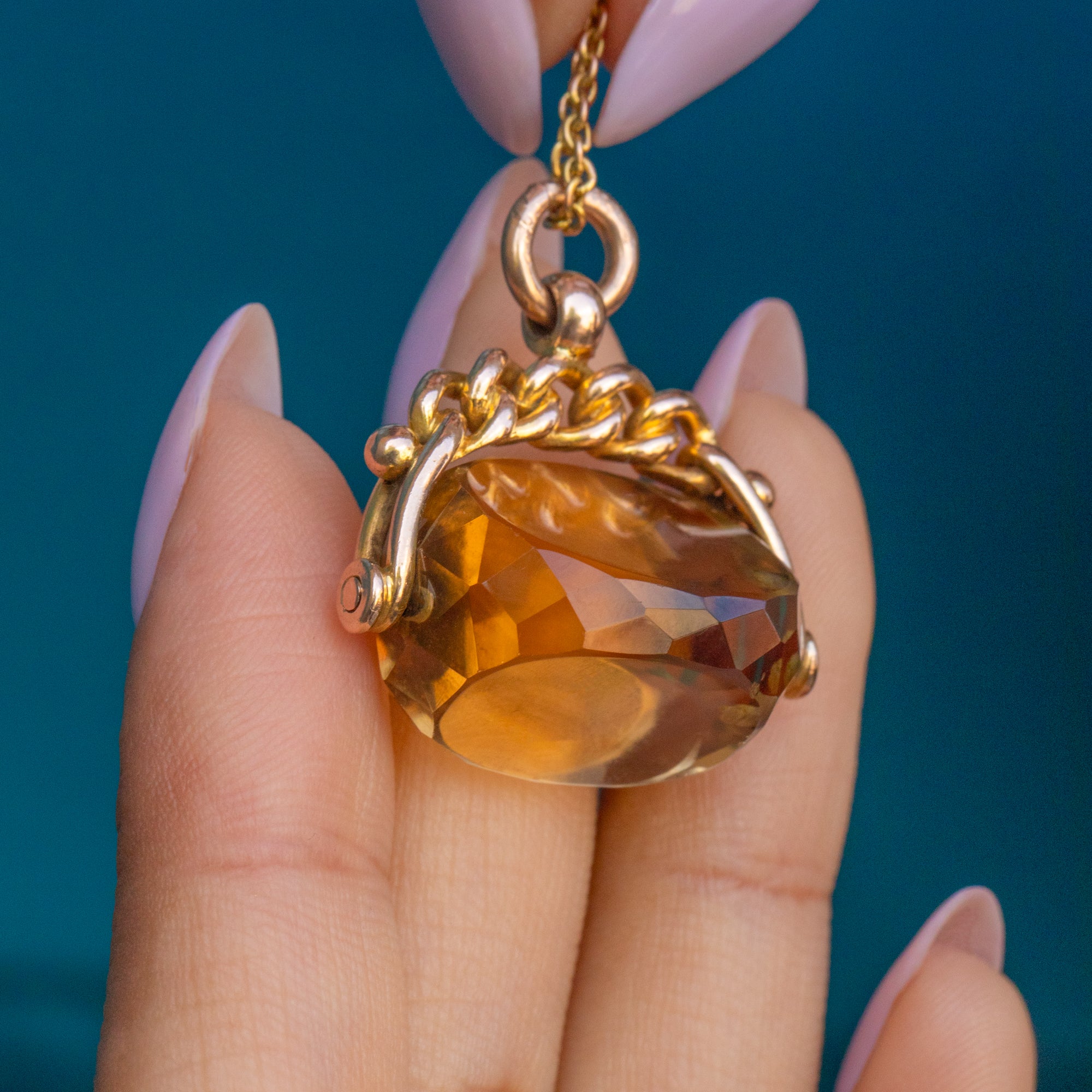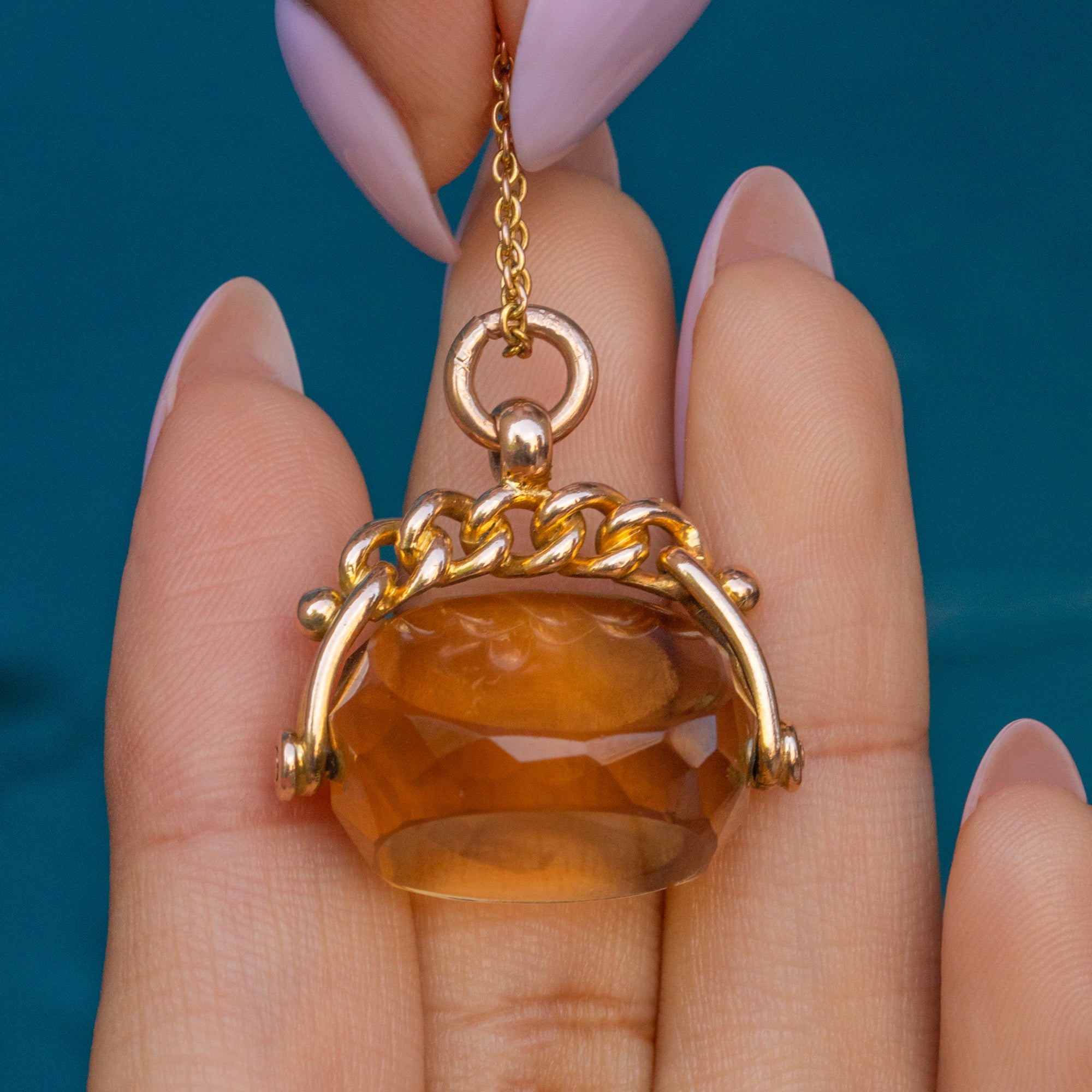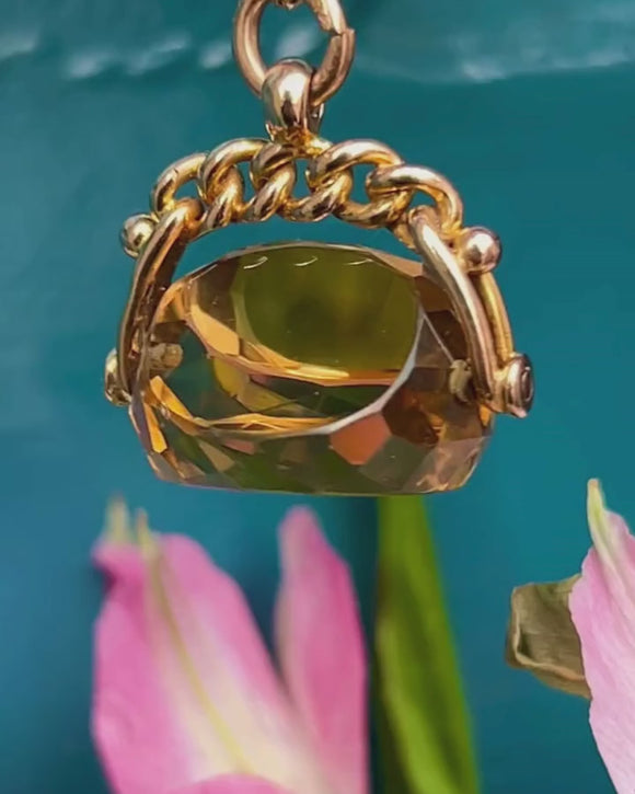 Pendentif médaillon à spinner en or 9 carats avec citrine antique, 12.76ct