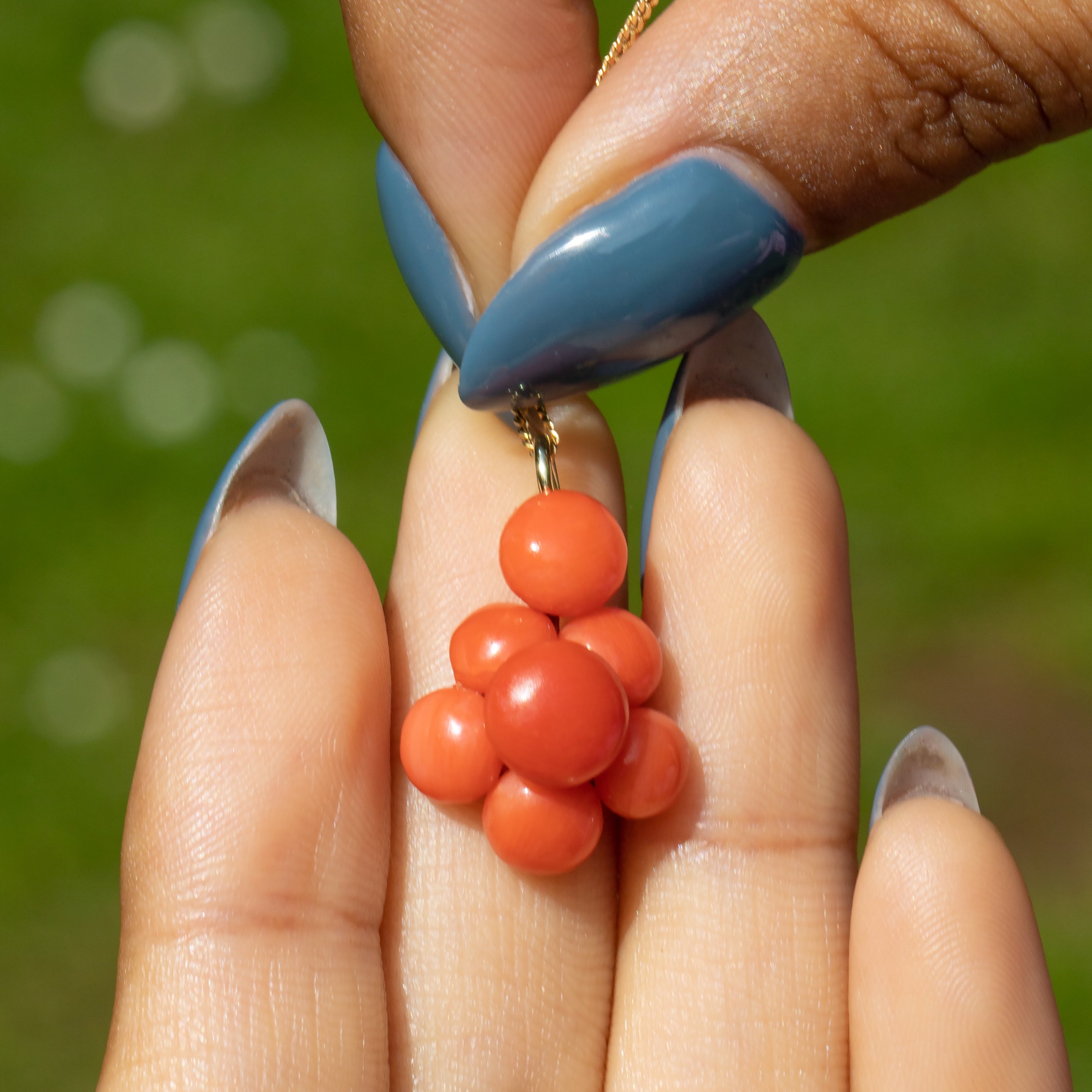 Pendentif ancien en or 9 carats avec grappe de corail