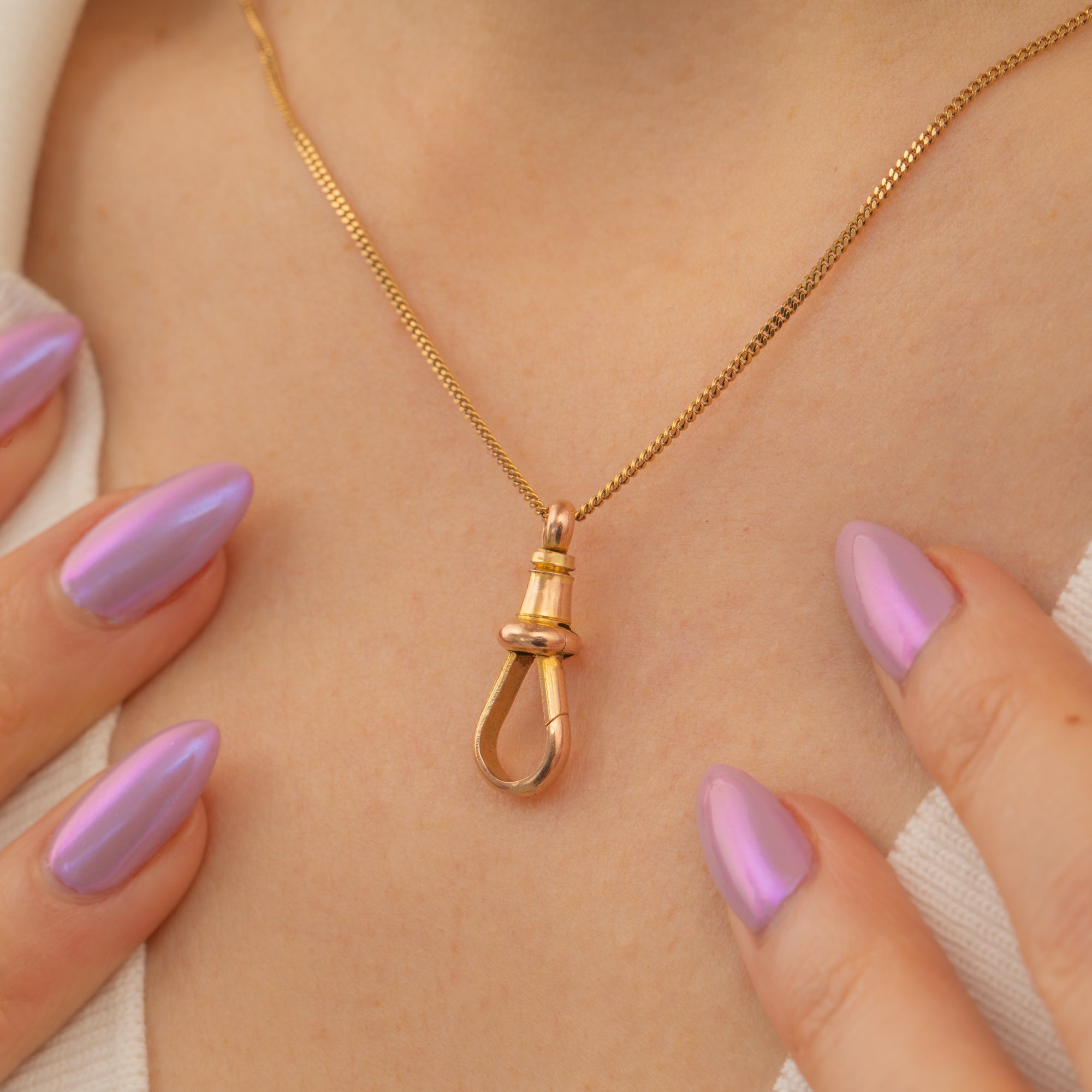 Wonderfully versatile and slightly larger in size, this Victorian dog-clip is perfect for suspending from a Gold chain to affix a glittering charm, pendant, or fob for a personal touch!