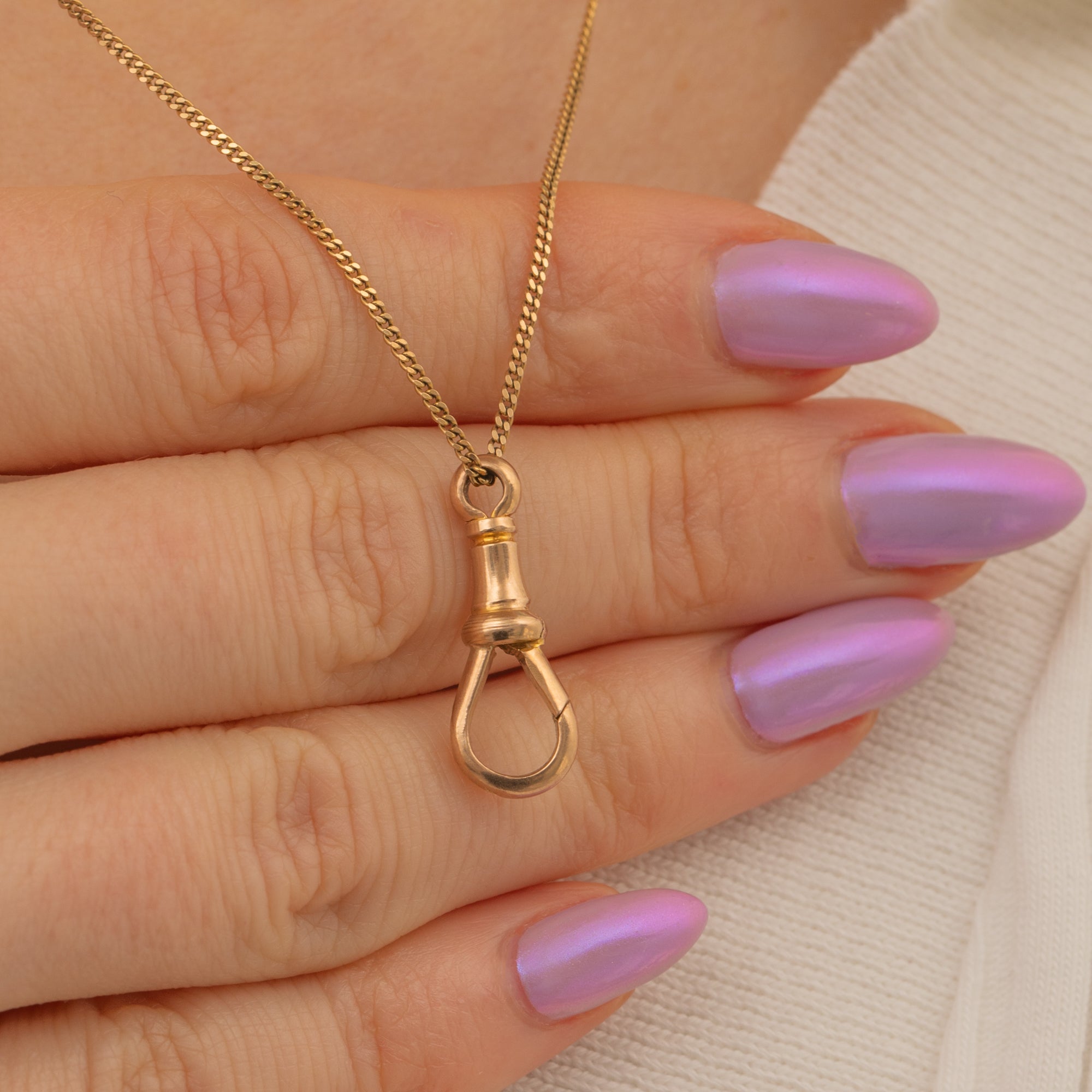 EXCELLENT. This antique 9ct Gold dog-clip is in excellent condition. She is in perfect working order and is sturdy enough to hold larger pendants and multiple charms. With only minor signs of wear commensurate with age, she is in great condition.