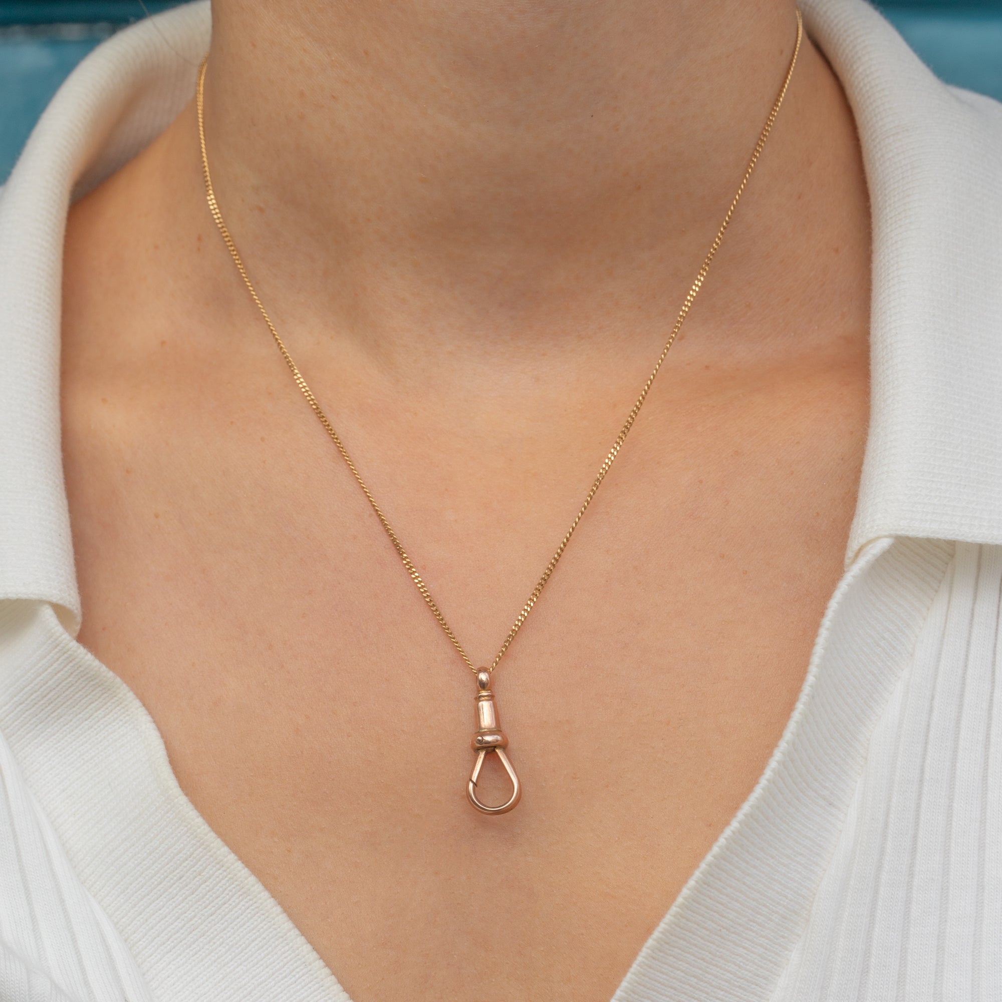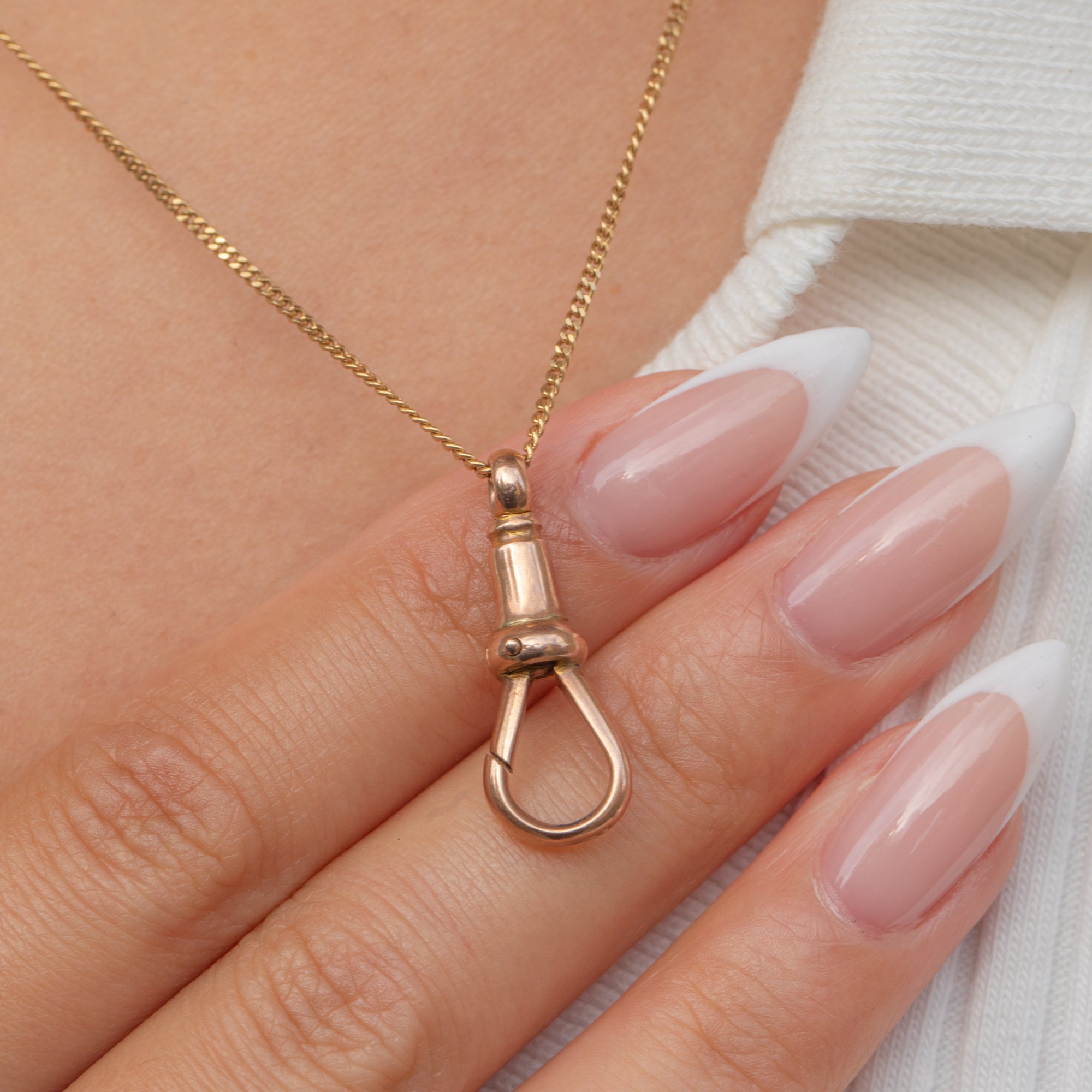 This Antique Victorian dog clip is crafted in solid 9ct Gold, a versatile and collectible jewellery fitting from the 19th century. Substantial in size at 22mm long, it is perfect for attaching charms, fobs, pendants, or chains. Its warm Gold tone and classic design make it both practical and stylish, whether worn as part of a necklace, bracelet, or charm holder.