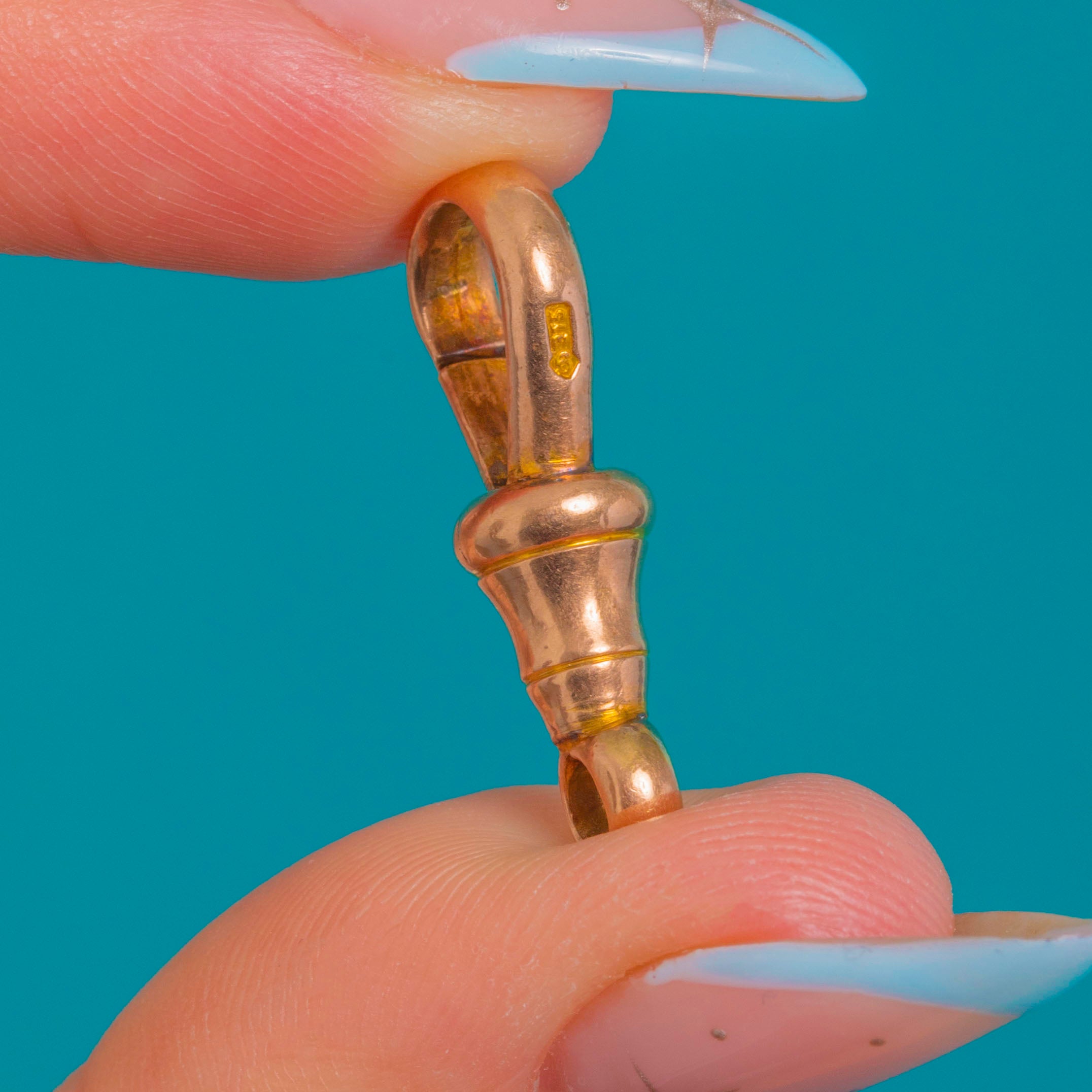 Understated and beautifully engineered, this versatile connector is perfect worn solo on a fine chain or as a functional charm holder for your favourite keepsakes. Stamped “9 375”, it captures that minimalist, utilitarian elegance we adore from late 19th-century Gold findings.