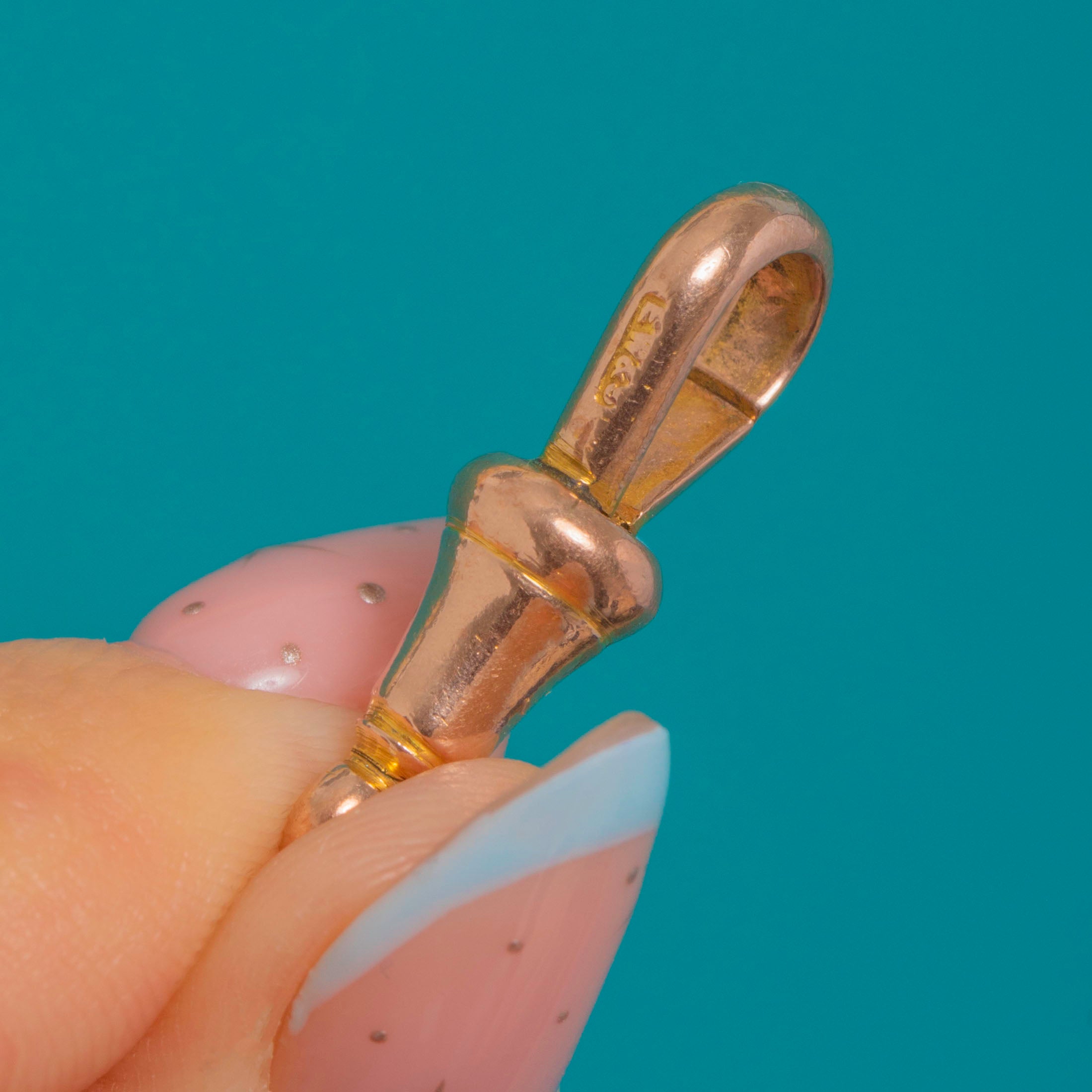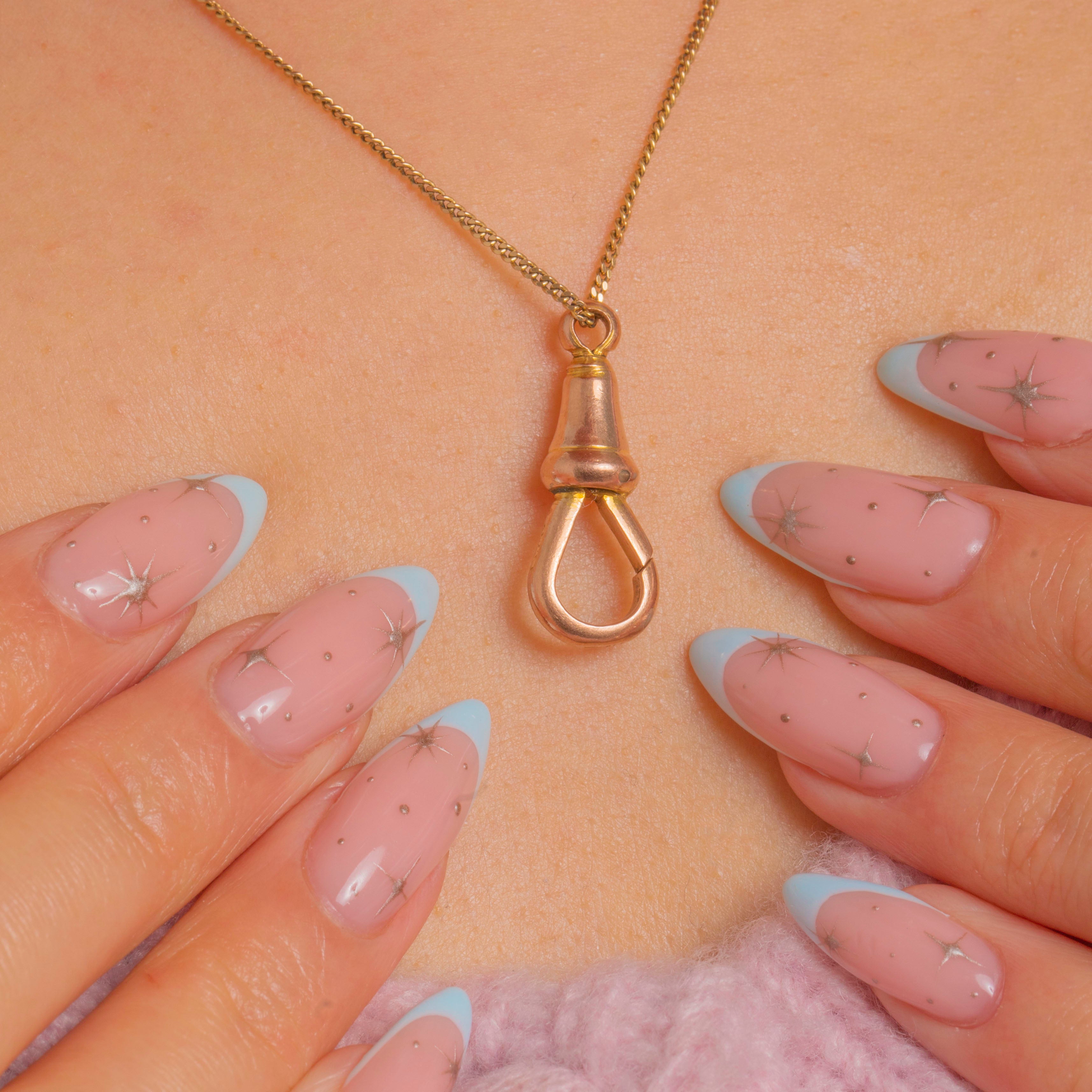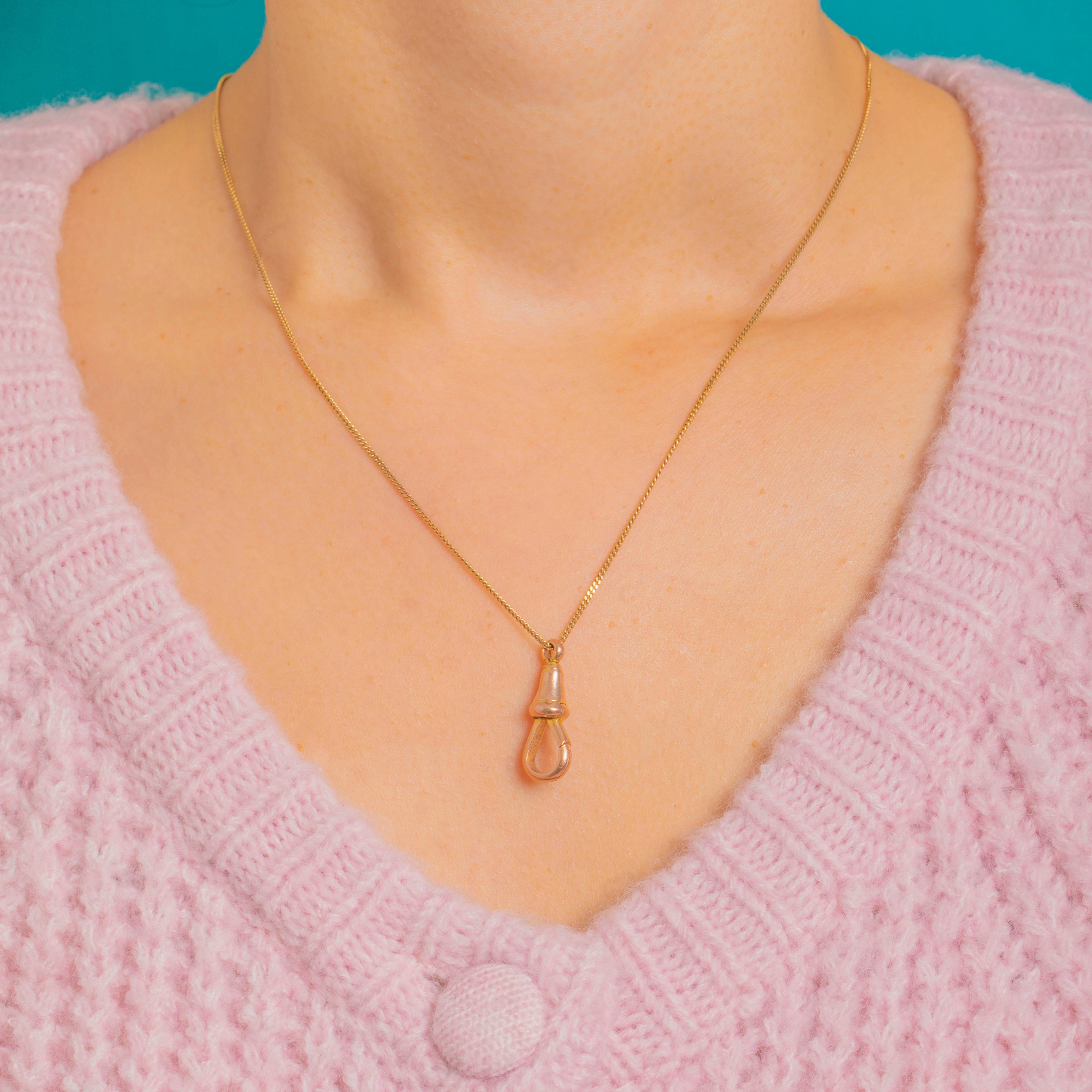 A classic Victorian 9ct Gold dog clip, engineered with a tapered, lathe-turned barrel. Its smooth, polished surfaces and clean solder seams give a refined, minimalist look, while the spring-loaded teardrop gate clicks closed with satisfying precision.