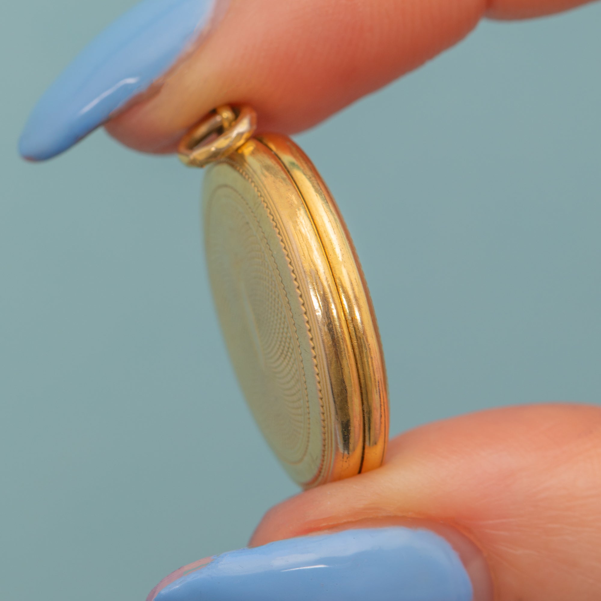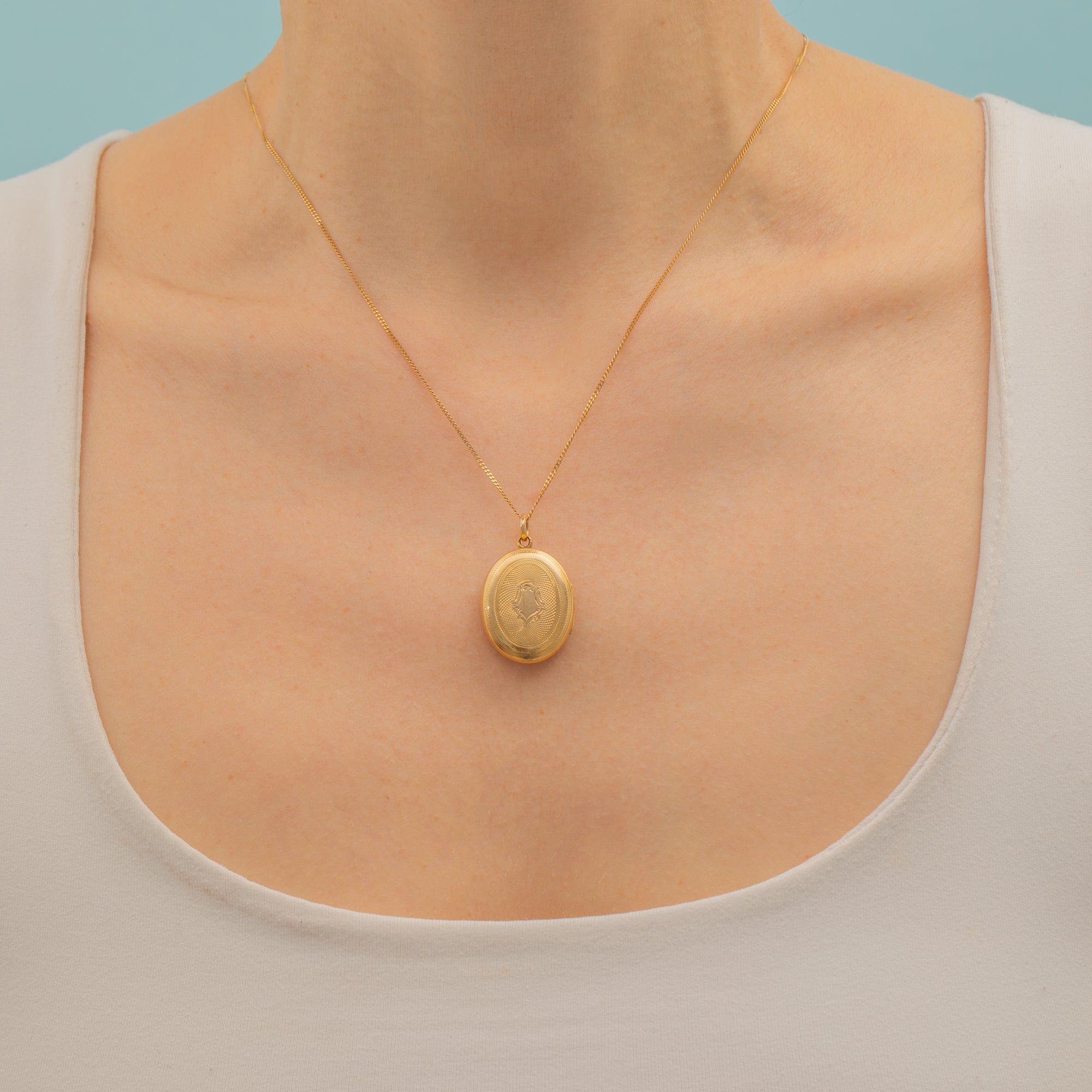 This antique 9ct Gold engine turned oval locket will make an elegant home for two precious photographs! The sumptuous 9ct Gold doors display ornate engine turned engravings, with a blank cartouche on one side to which you could add a personal engraving if you wish.