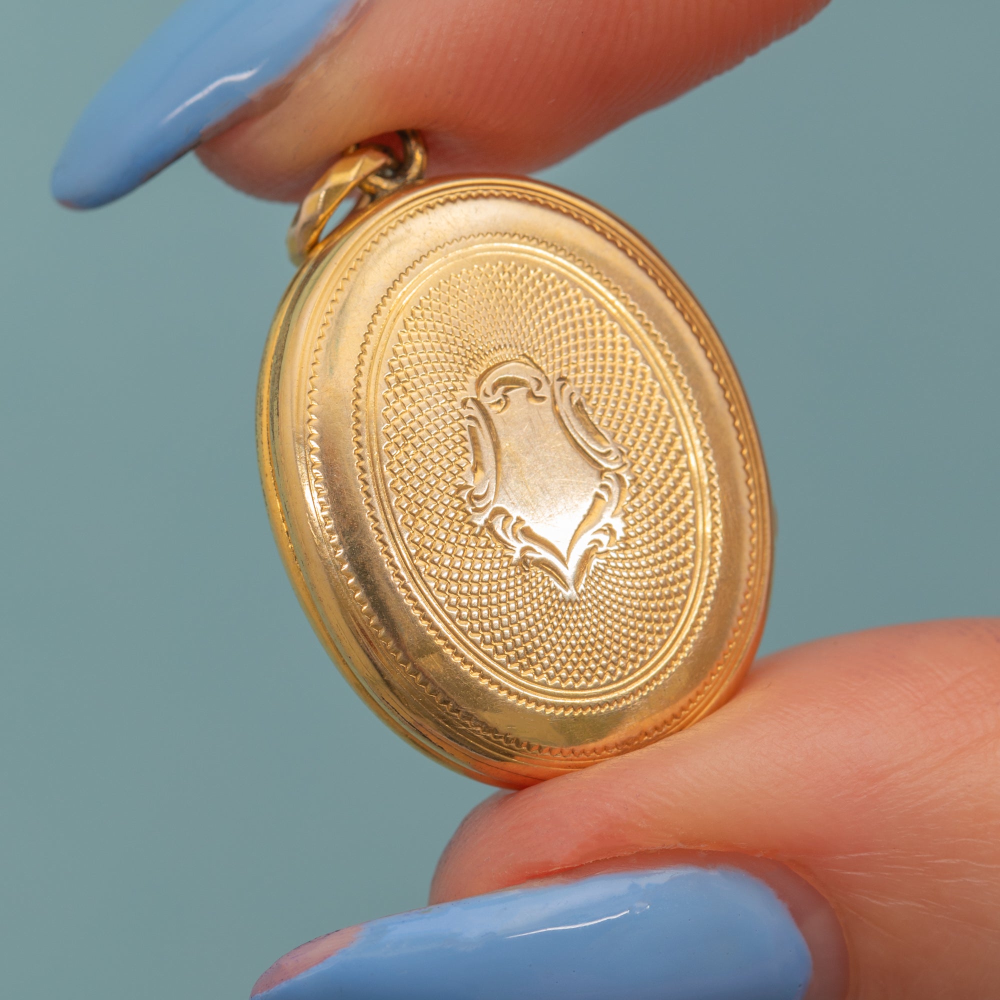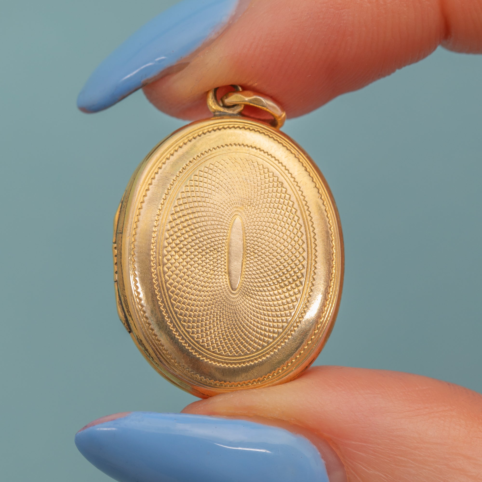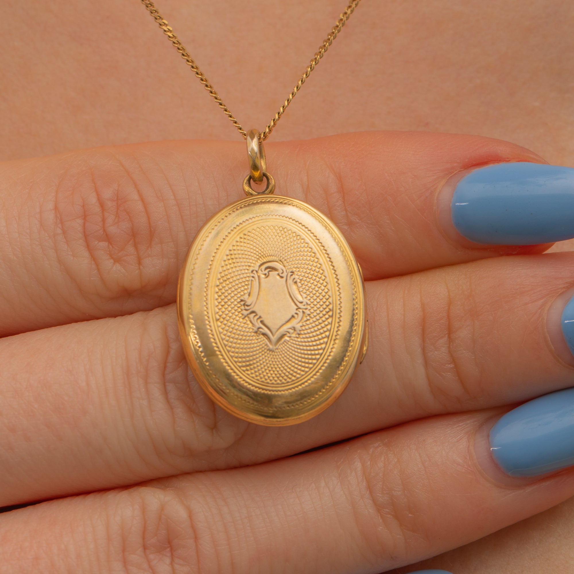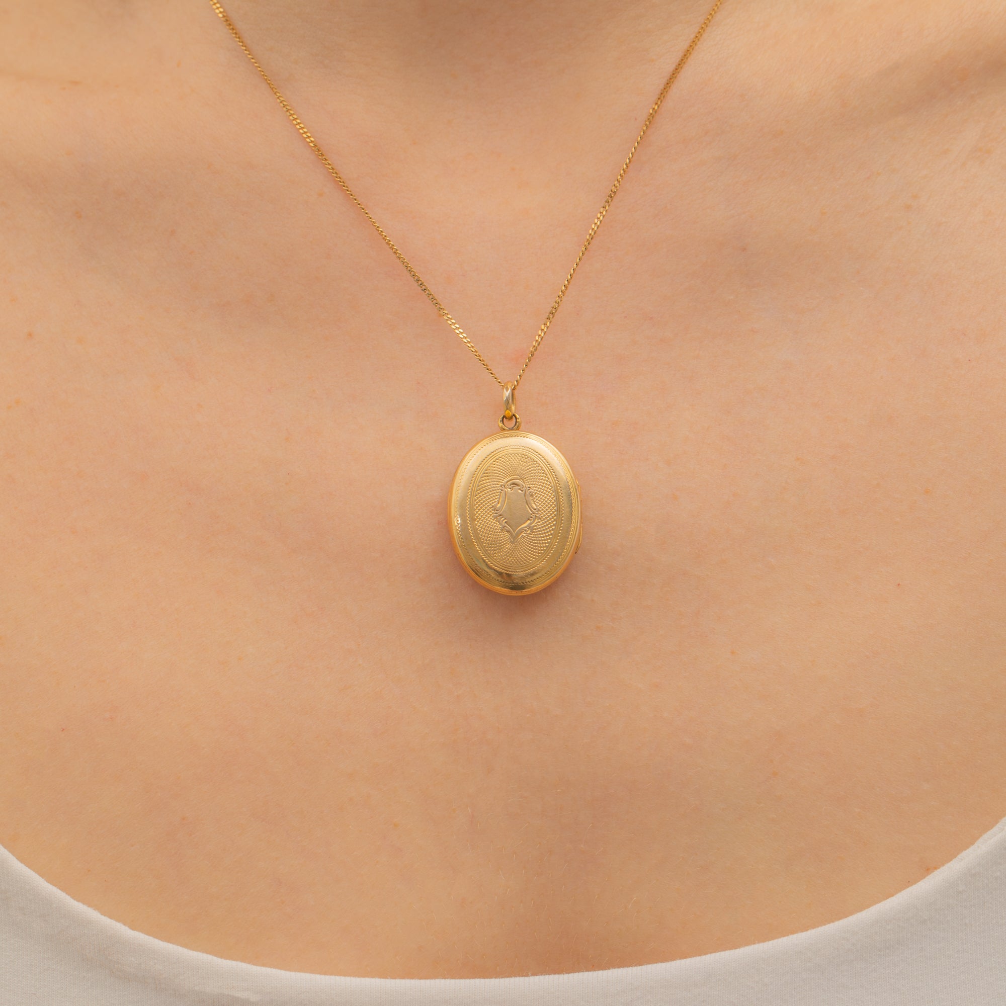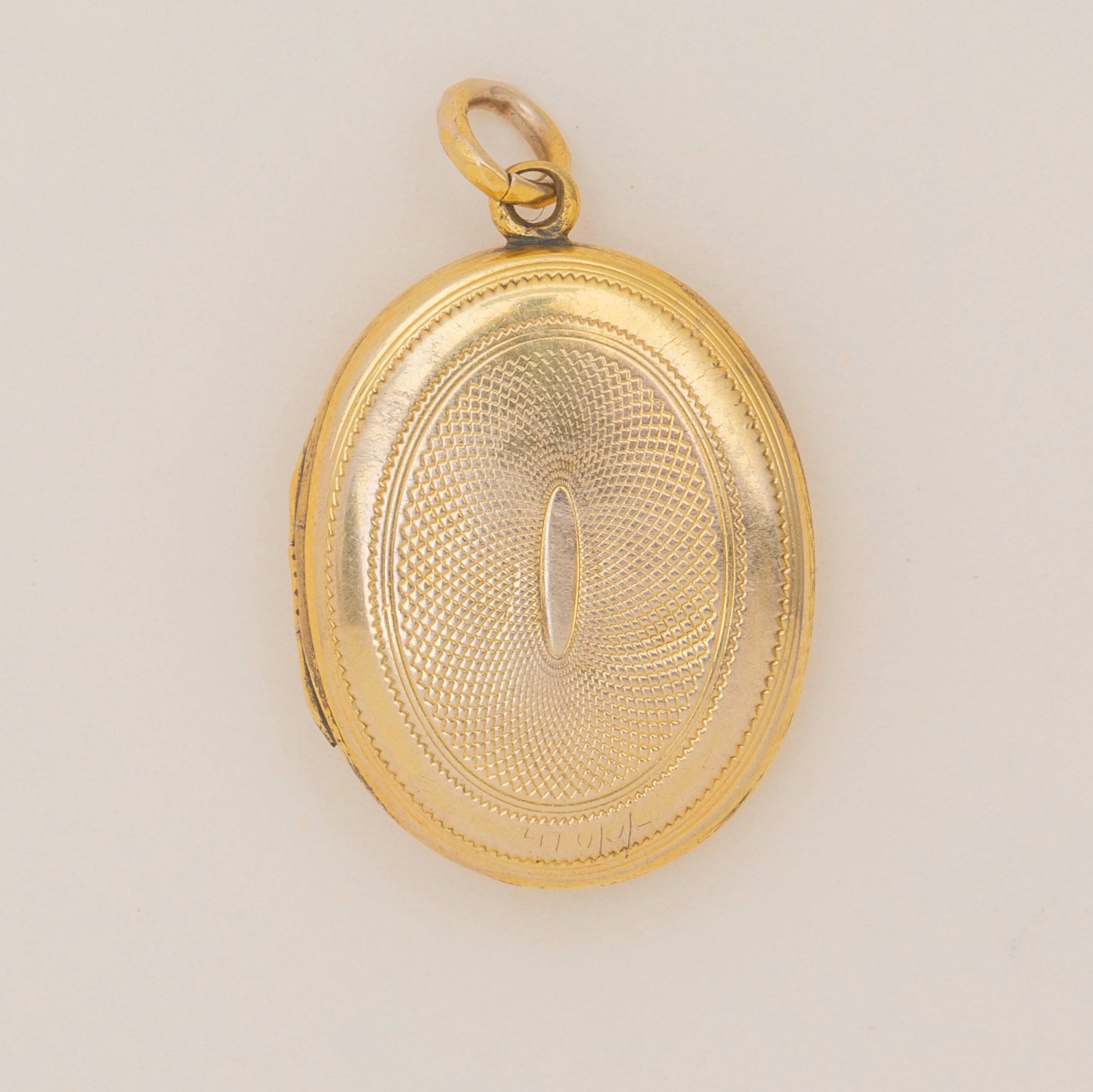 Antique 9ct Gold Engine Turned Oval Locket