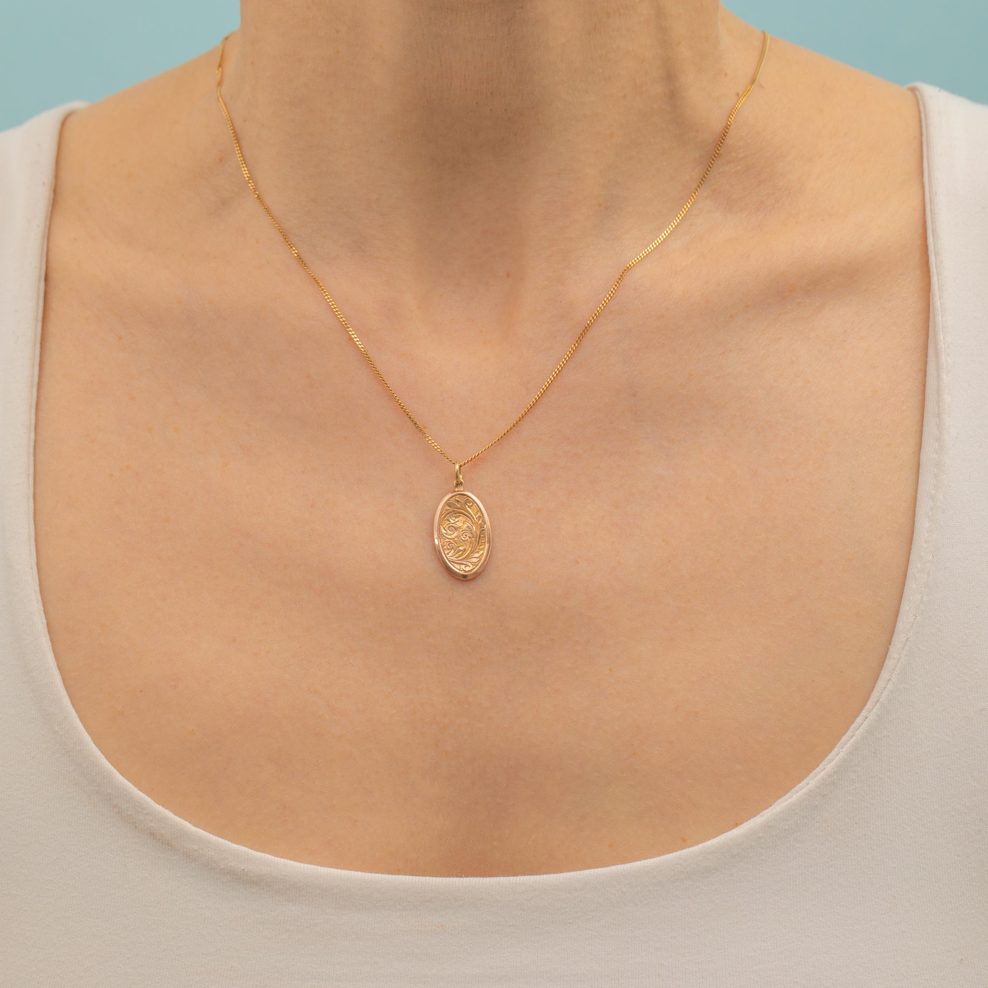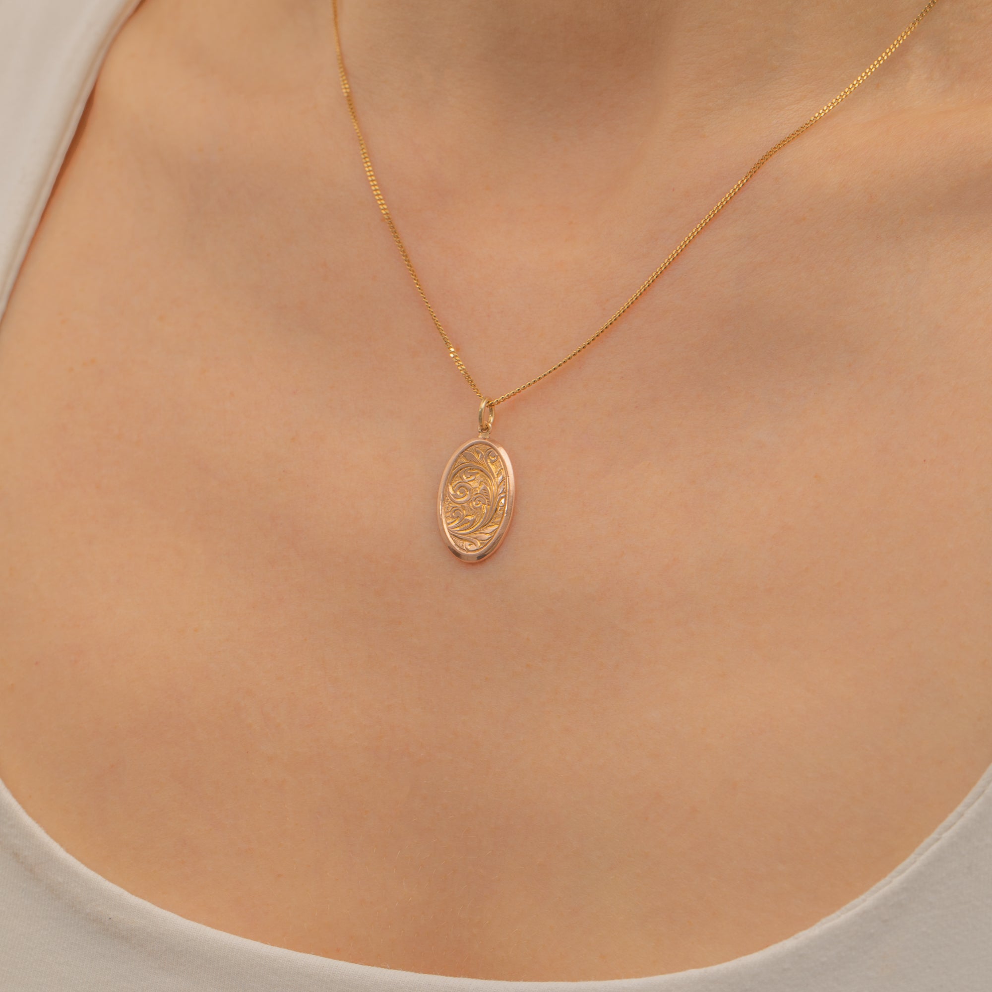 Lightweight with an elegant oval form, this Victorian Gold pendant will make the perfect adornment for a skinny Gold chain!