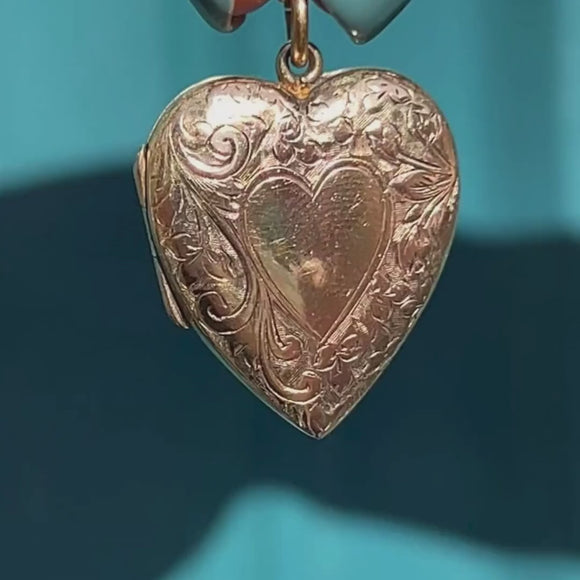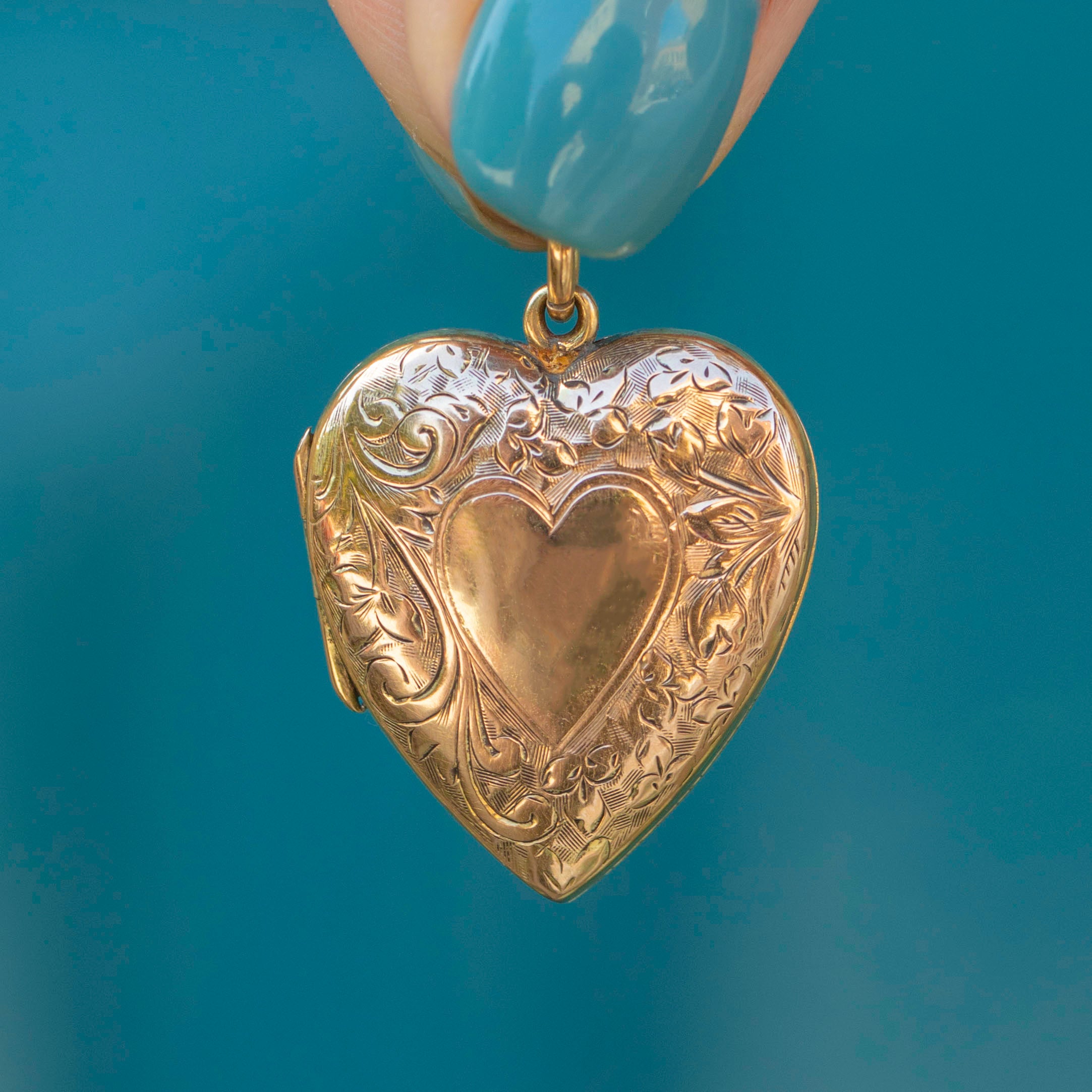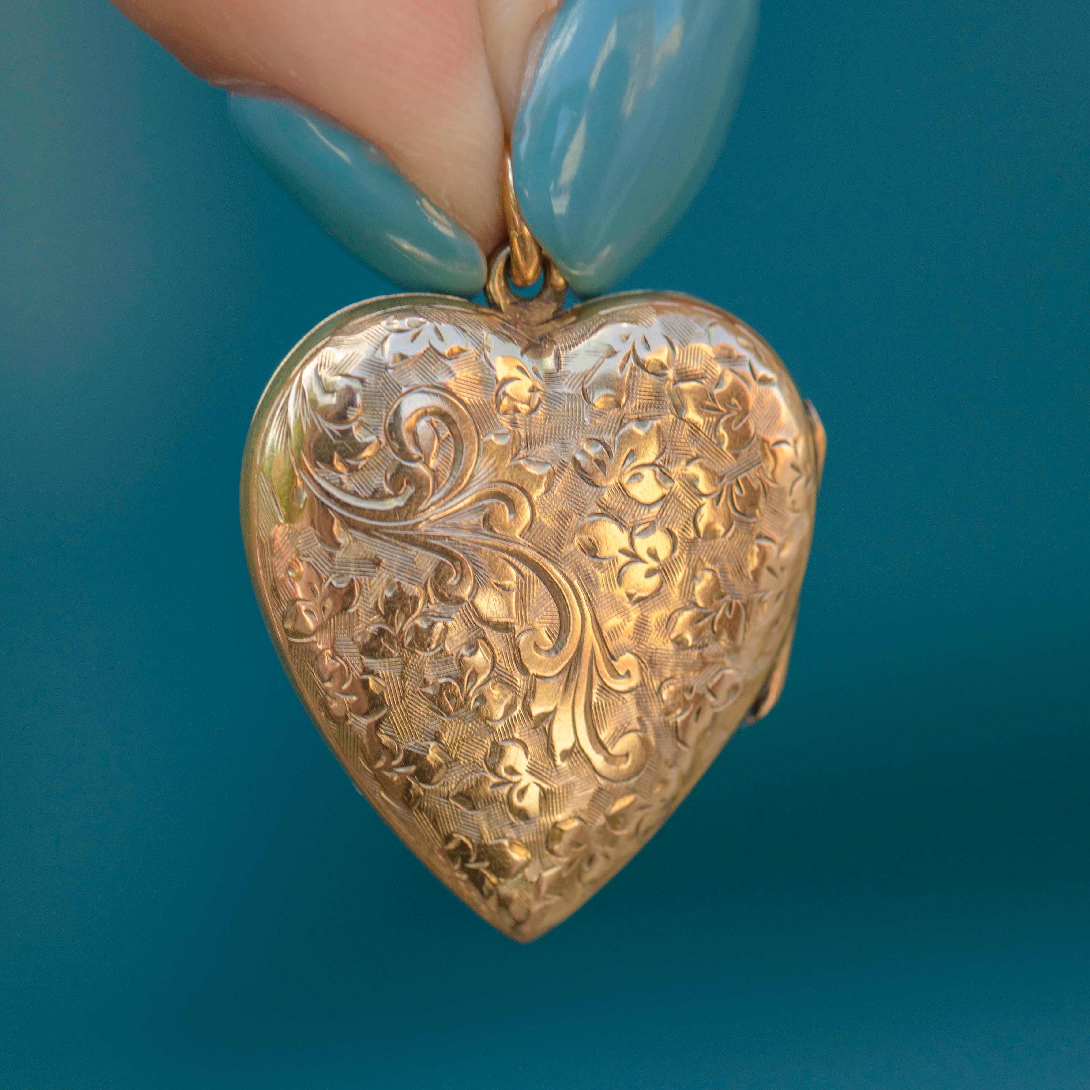 This antique 9ct Gold engraved heart locket is unequivocally Victorian! Adorned with sweeping acanthus and ivy leaf engravings, this antique locket is bursting with romantic symbolism.