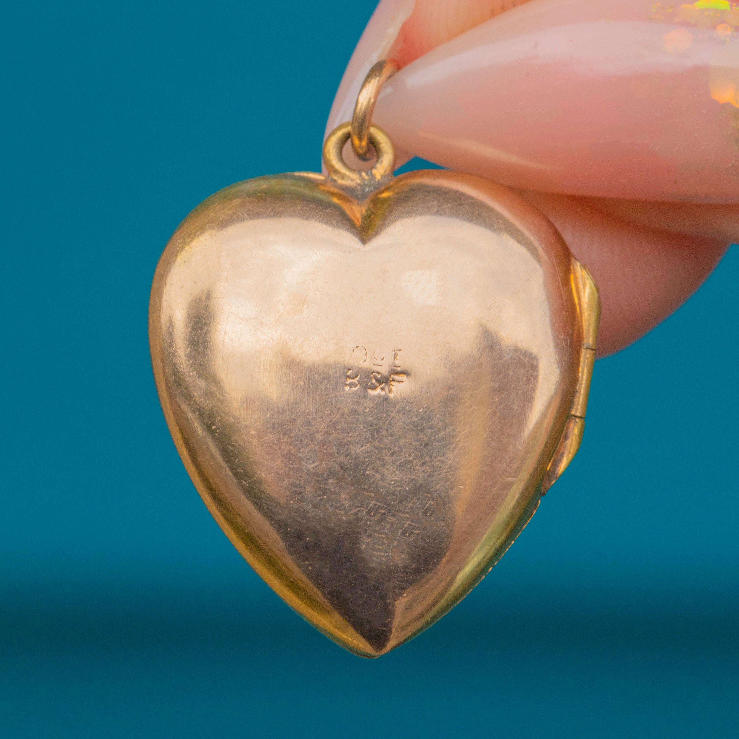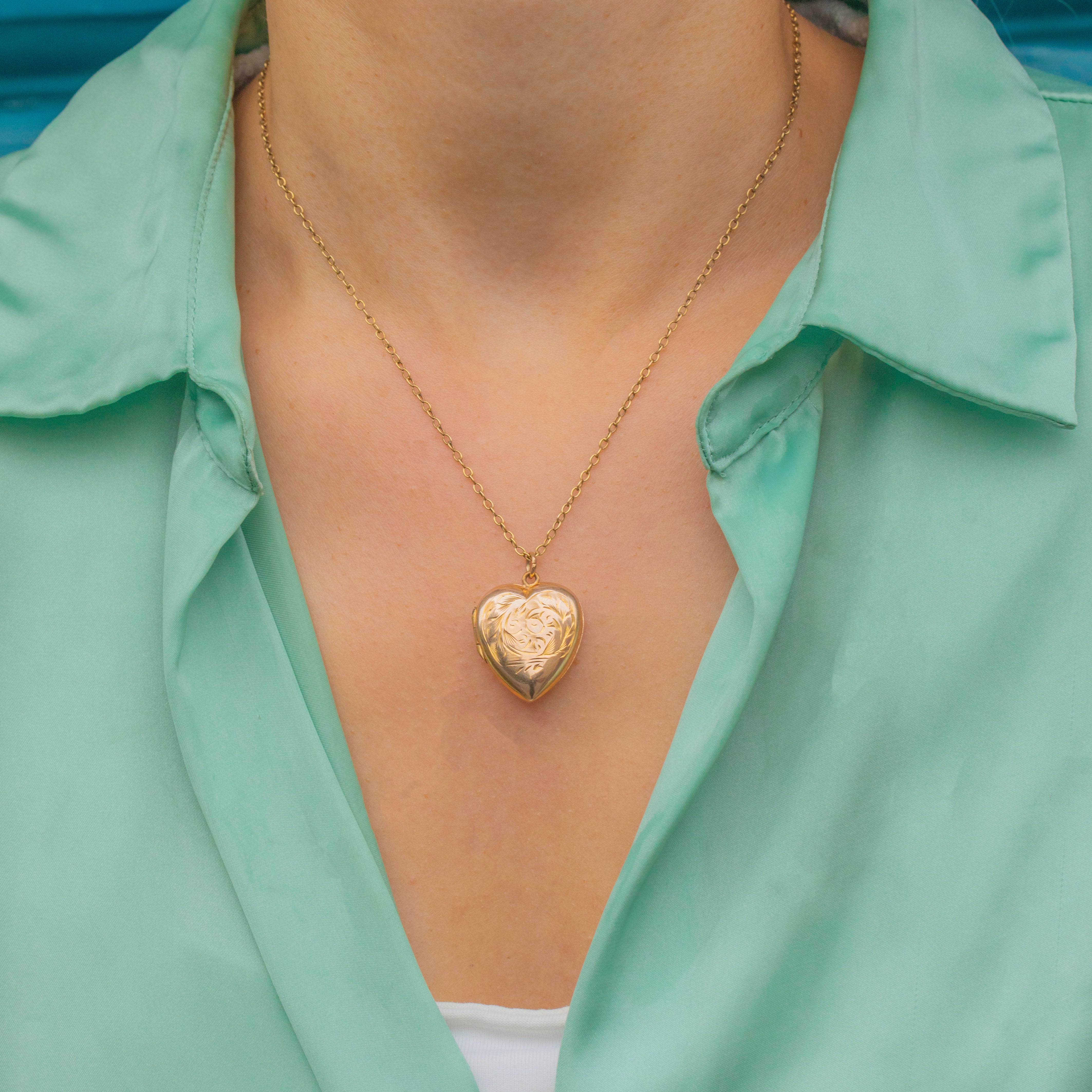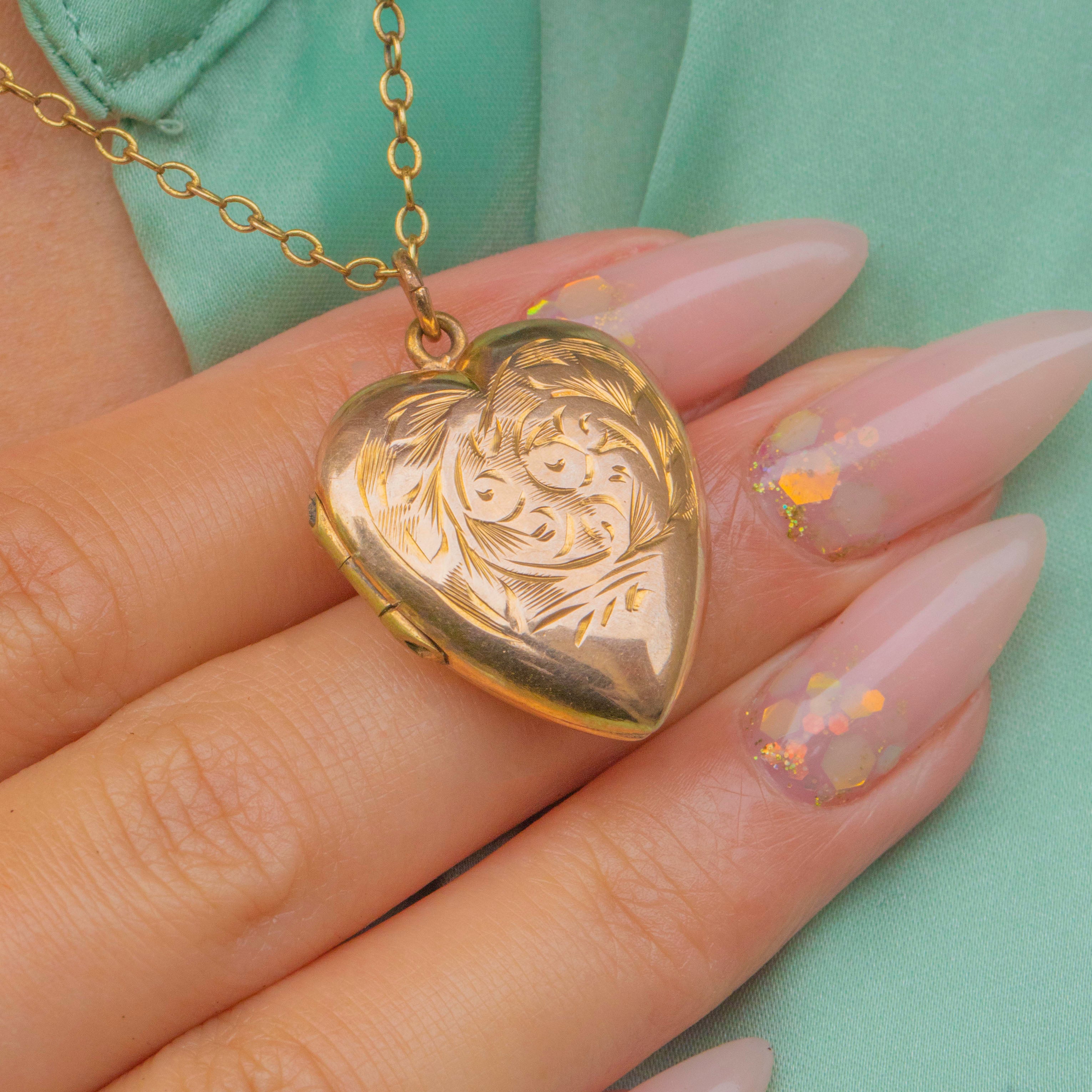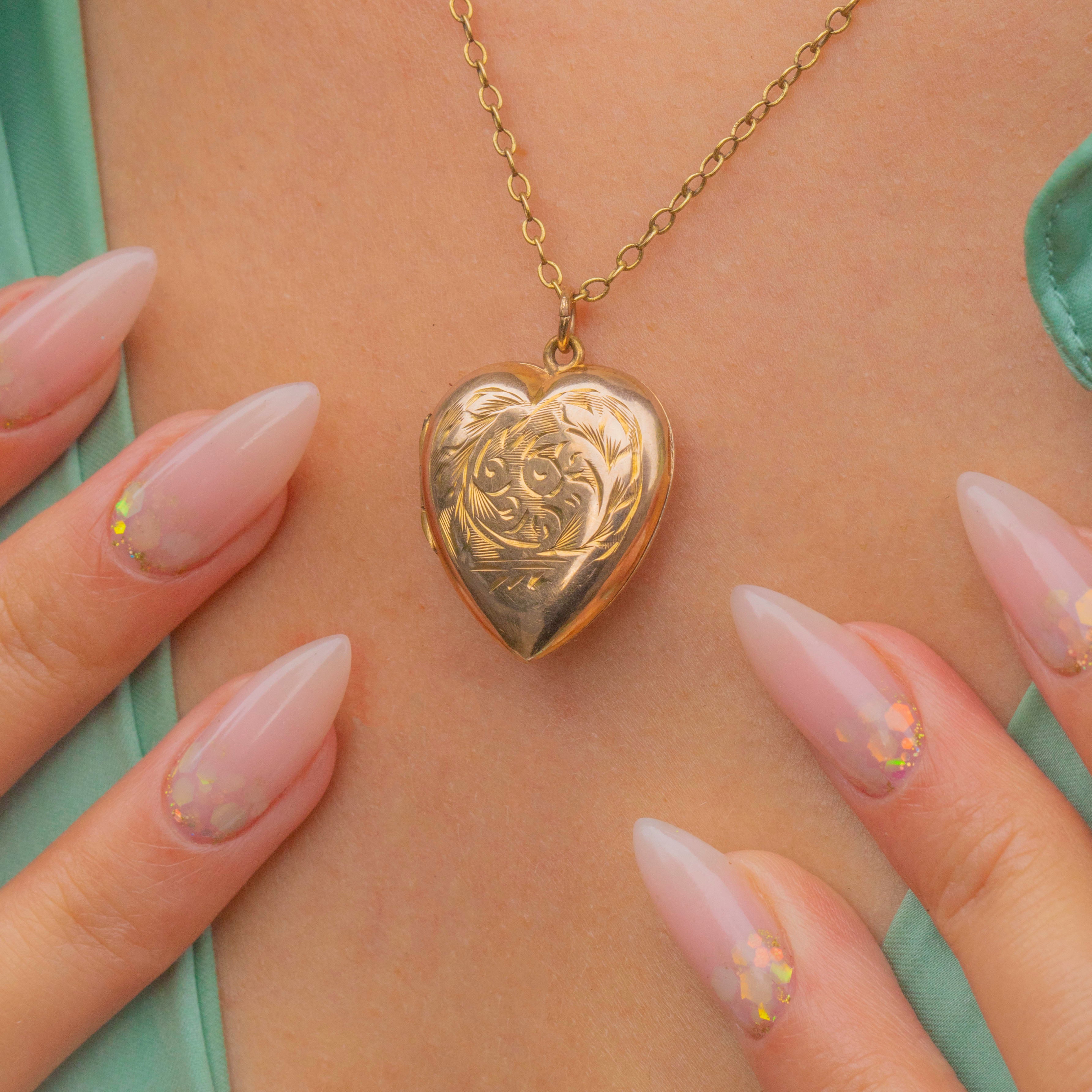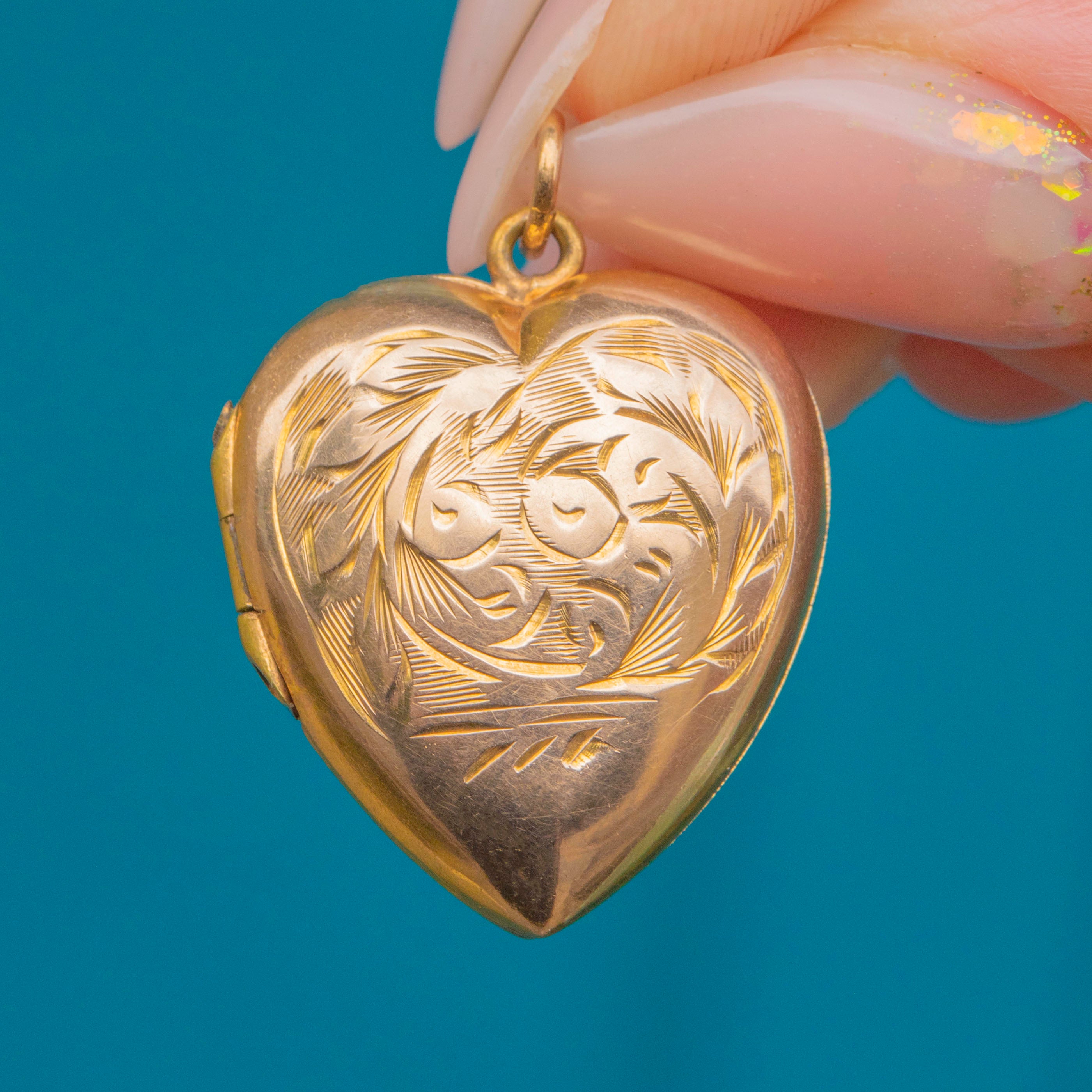 This sweet Edwardian heart locket is crafted in warm 9ct Gold and decorated to the front with pretty hand-engraved foliate swirls. The romantic heart silhouette and soft antique glow make it a timeless keepsake, perfect for everyday wear or gifting.