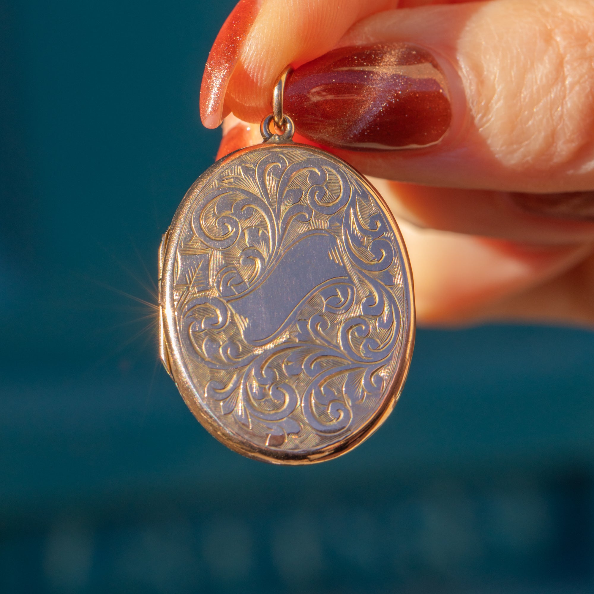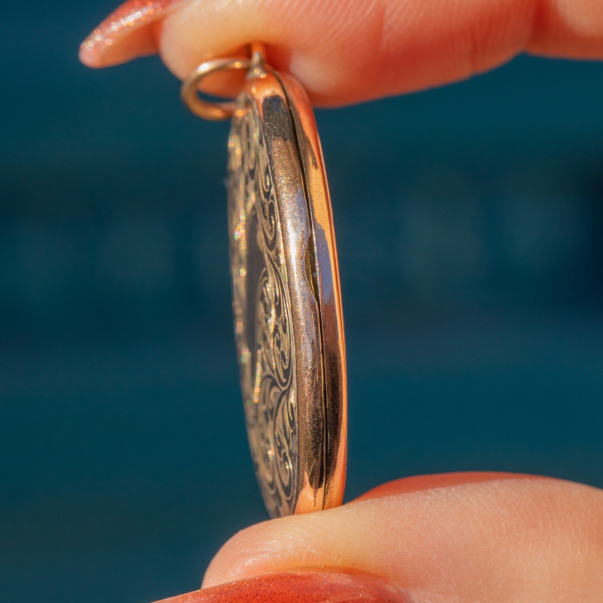 Within her smooth 9ct Gold exterior, there is space to hold photos of your most cherished memories. Her secure jump-ring ensures your memories stay close to your heart always!