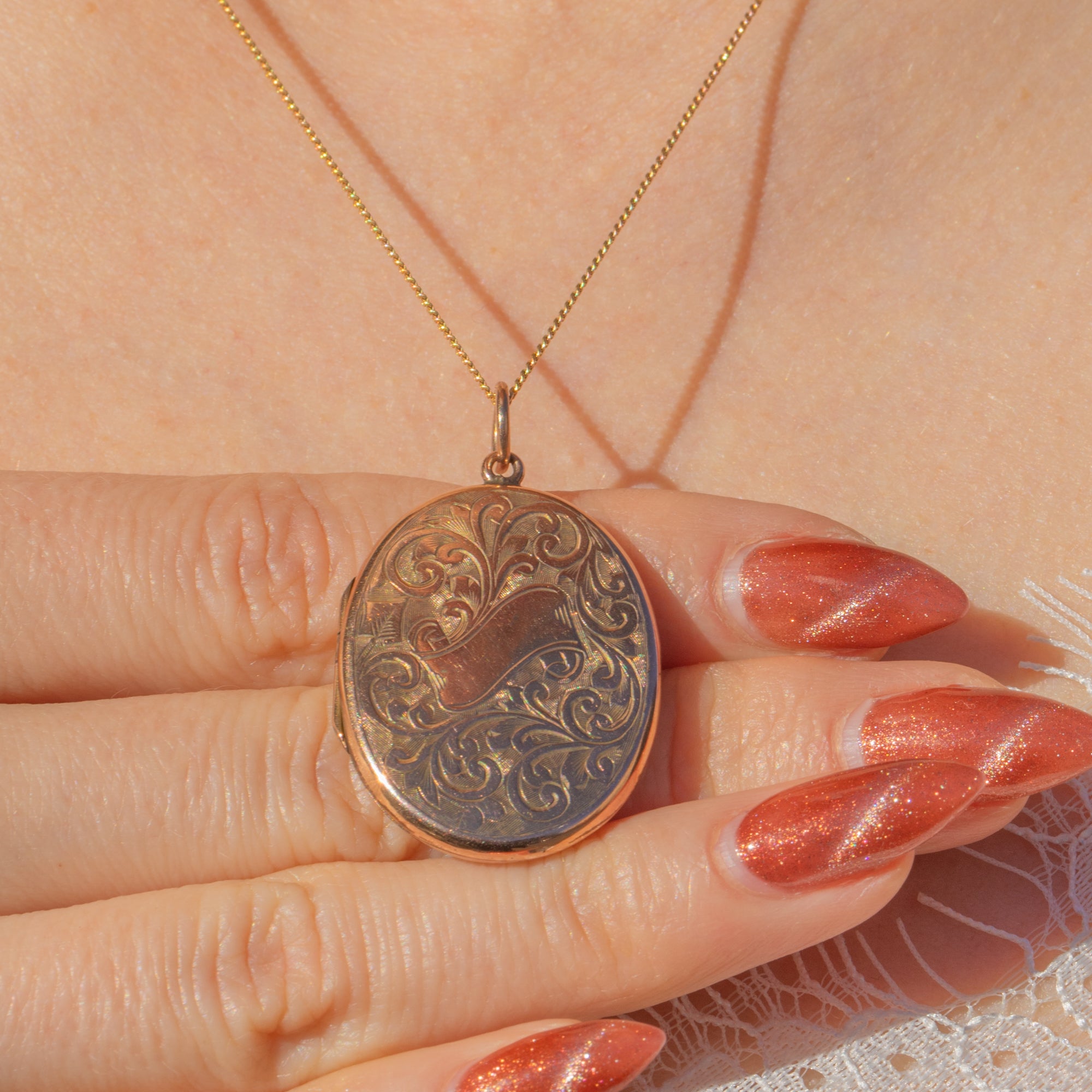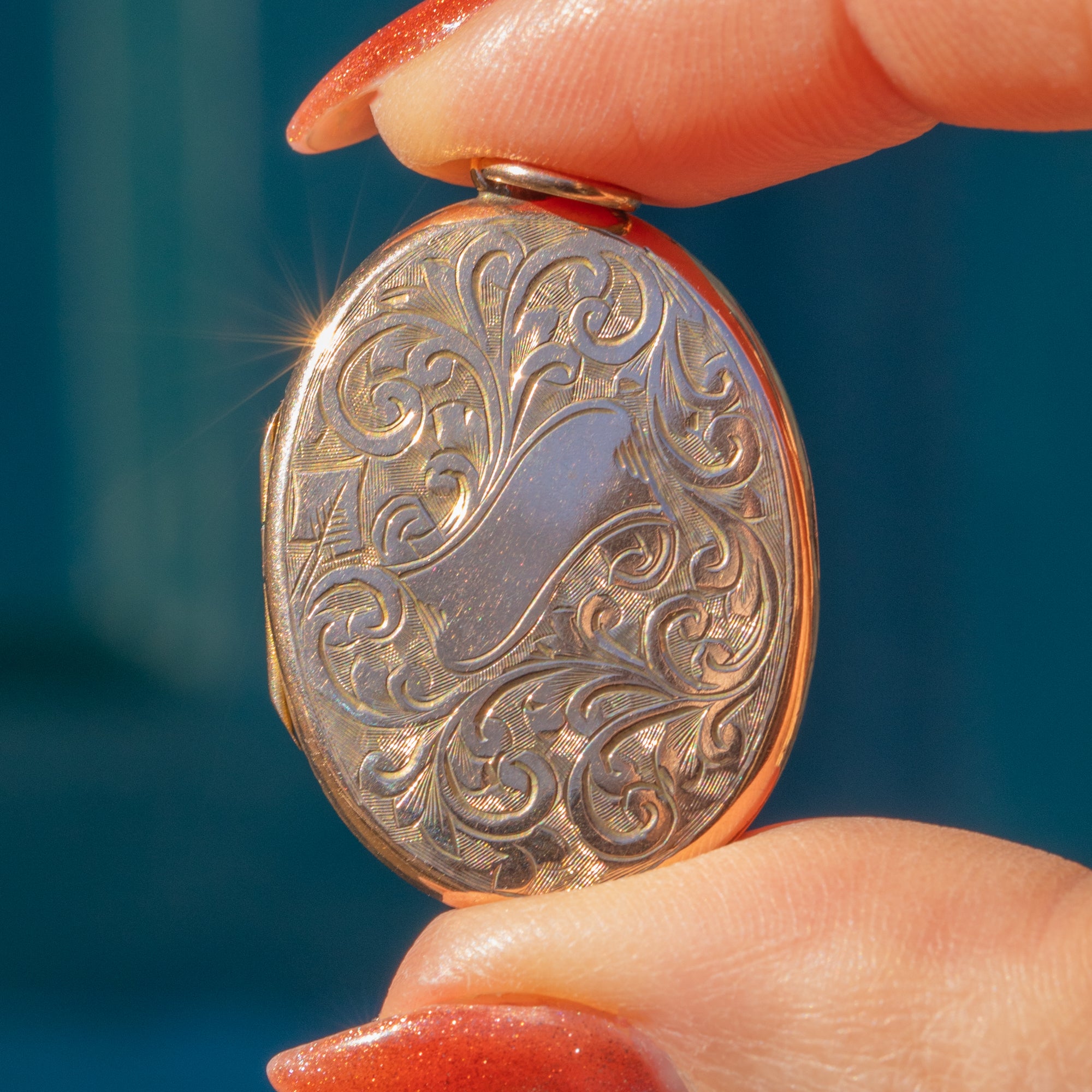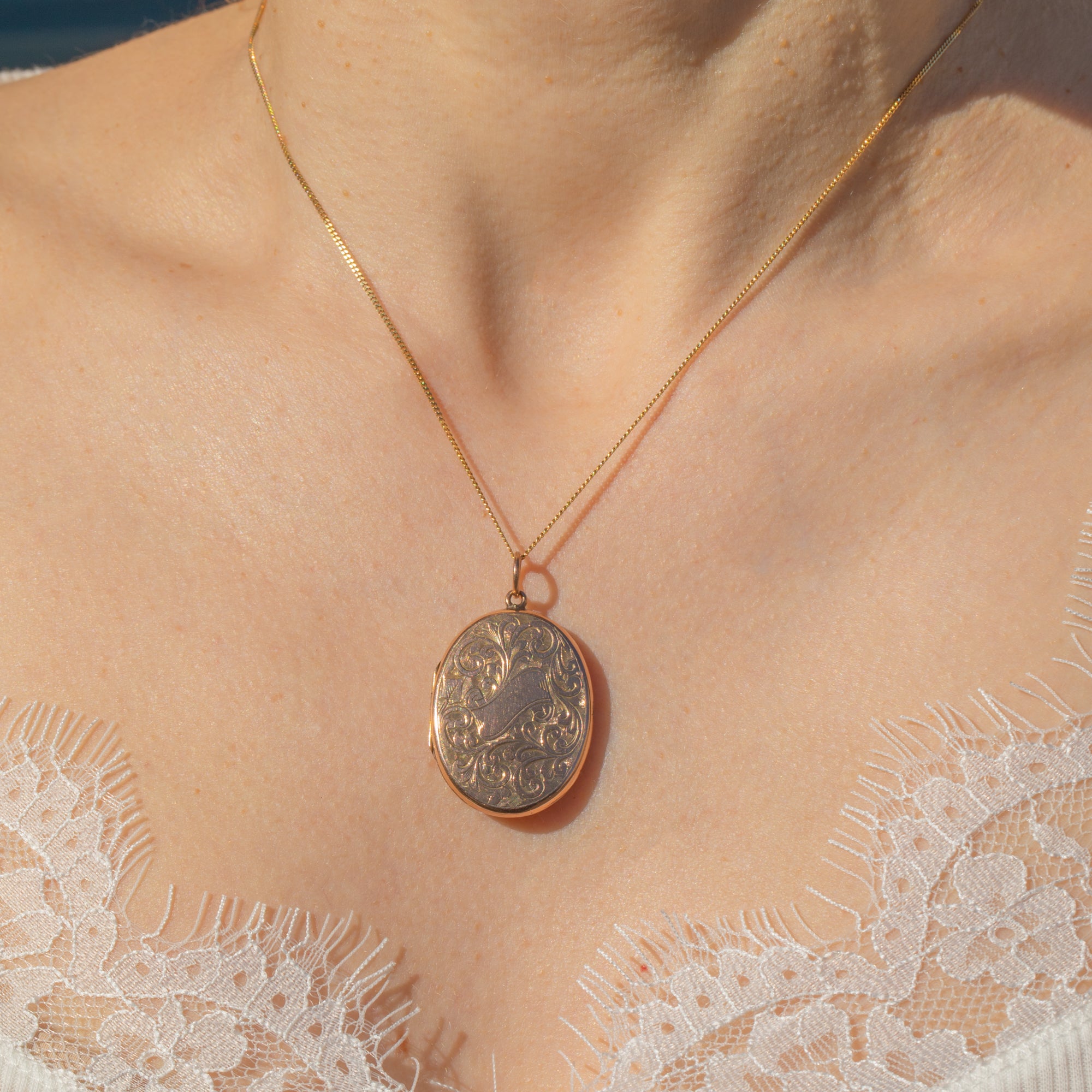 Antique 9ct Gold Engraved Oval Locket