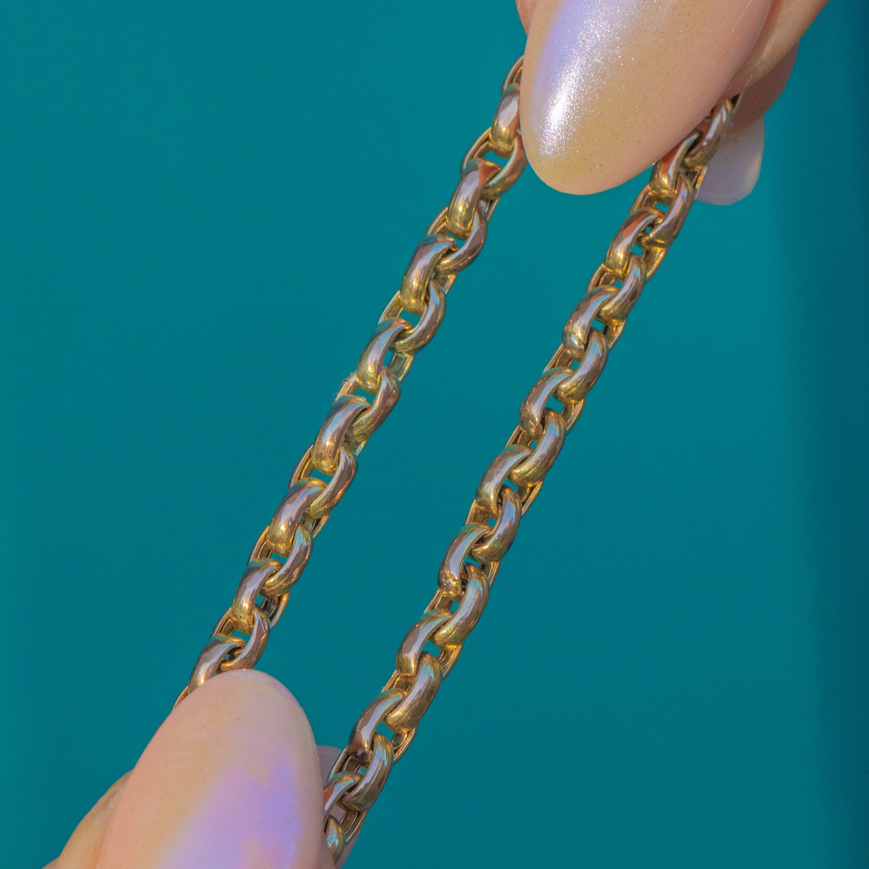 EXCELLENT. This antique 9ct Gold faceted belcher bracelet is in wonderful condition. Her jump-rings are large and the bolt ring fastens securely so you can wear her with confidence. Adorn your wrist with this gorgeous Gold treat!