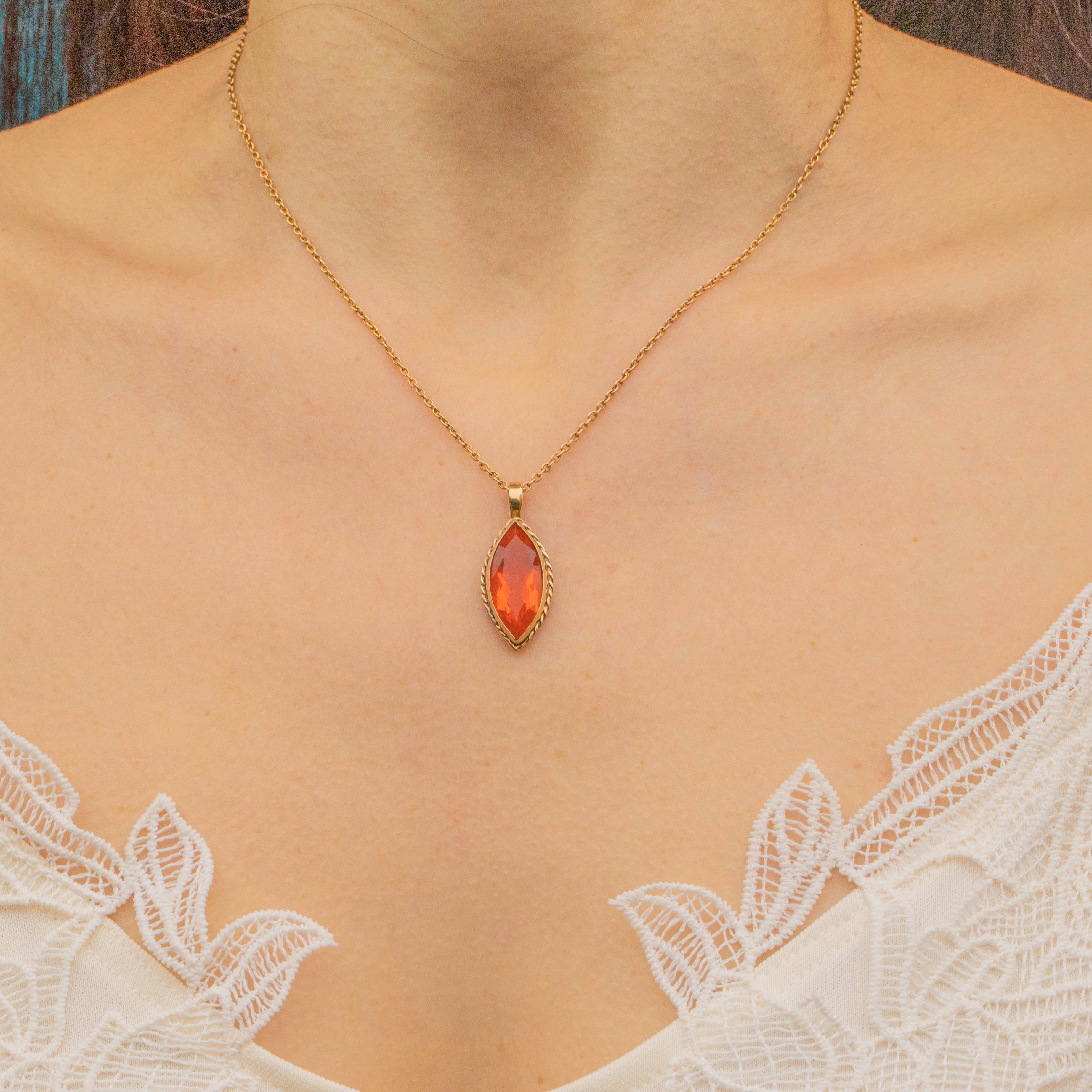 This vivacious antique 9ct Gold Fire Opal pendant is sure to give your antique jewellery collection an edge!