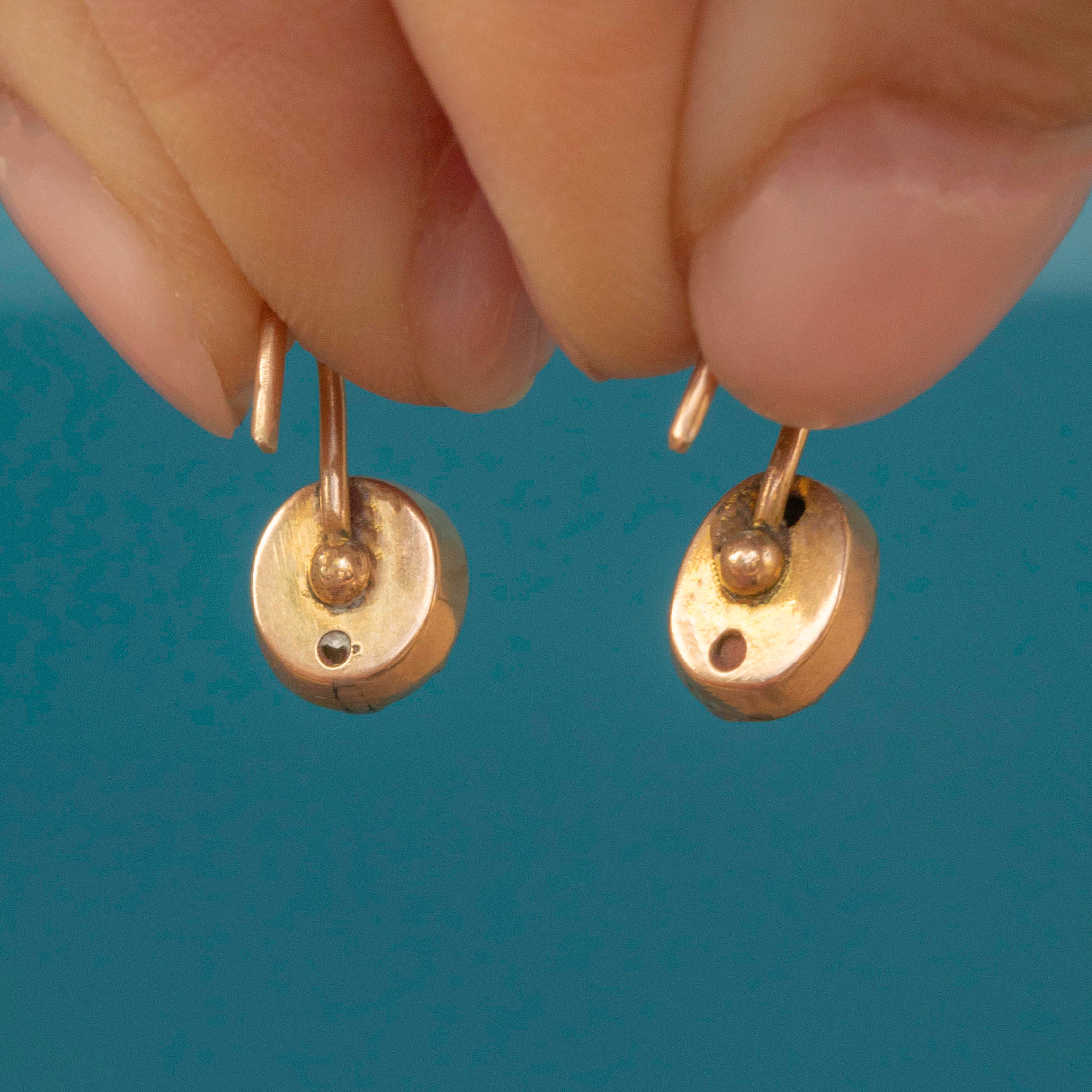 Antique 9ct Gold Flat-Cut Garnet Earrings