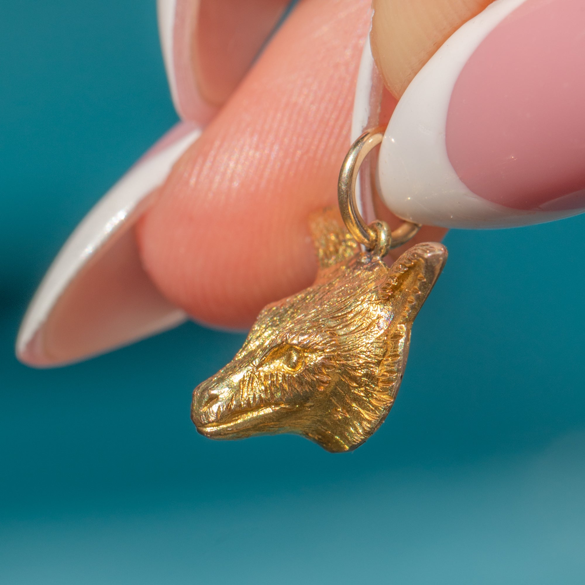 A charming Victorian fox pendant, finely crafted in warm 9ct Gold. This petite piece is beautifully detailed, with engraved features that capture the lively character of the fox.