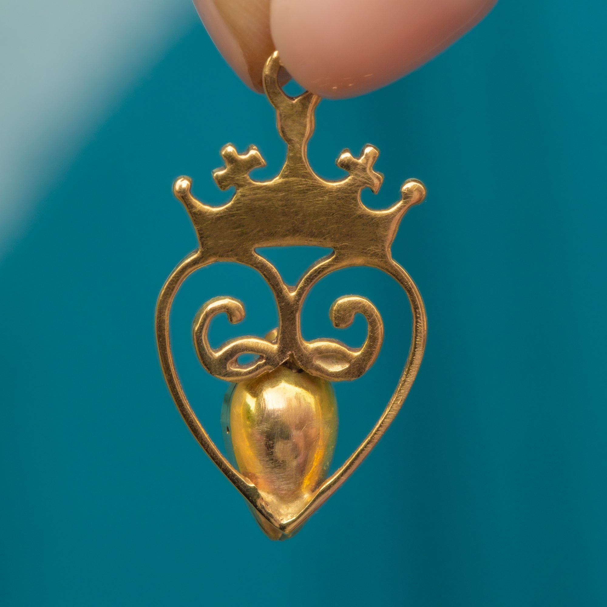 EXCELLENT. This antique 9ct Gold Garnet heart pendant is in excellent condition! The Garnet sits securely within the bezel setting, free from any damage to note, and her domed closed back setting ensures comfortable wear against the chest. There is some very light wear to the domed back but nothing untoward. Her Gold work is well formed and the details within the crown are crisp. Complete with a generously sized jump-ring, this Victorian pendant can be styled however you desire!