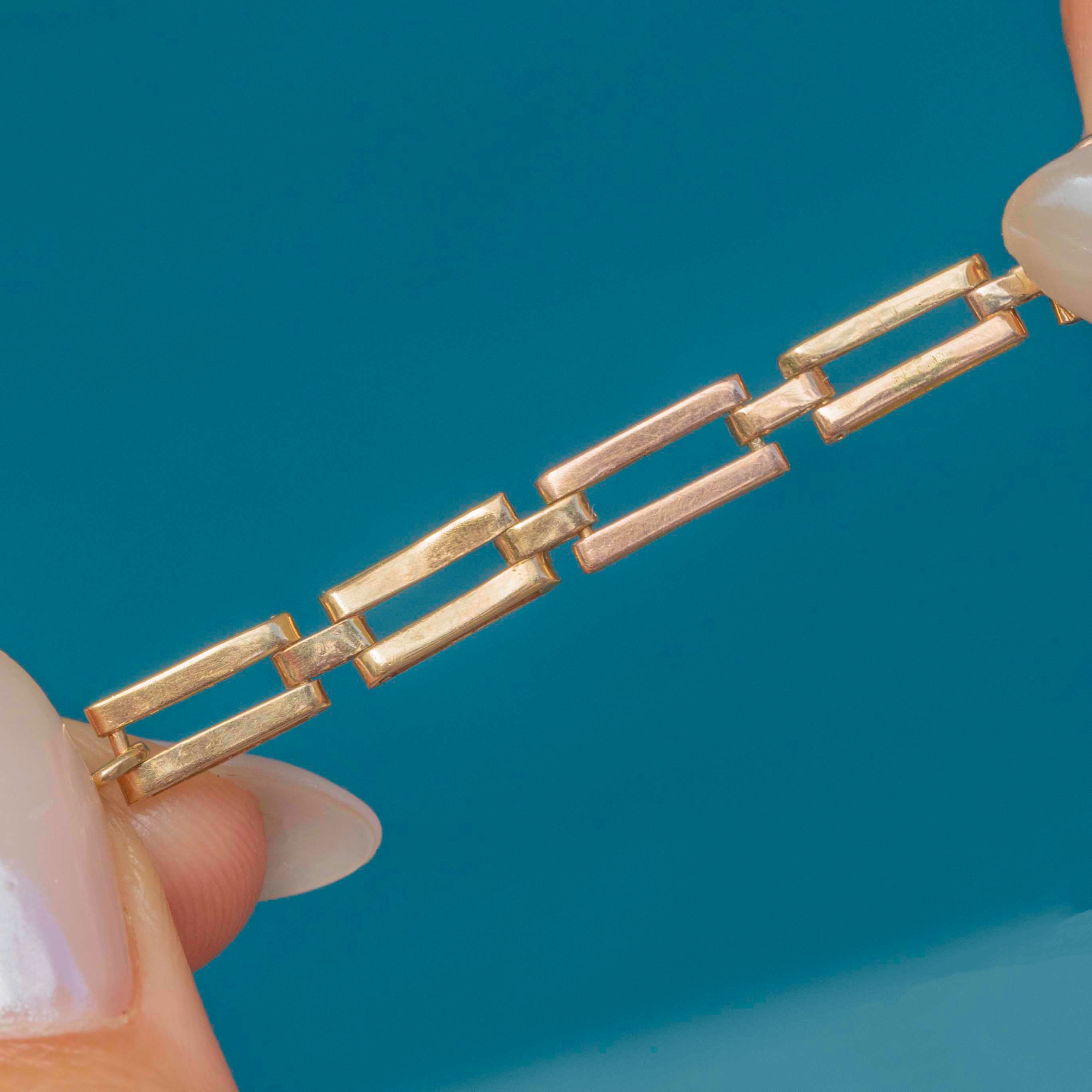 The Moonstones are set within glossy 9ct Gold bezels, and the 6" bracelet is complete with box links, radiating refined elegance and Art Deco charm!