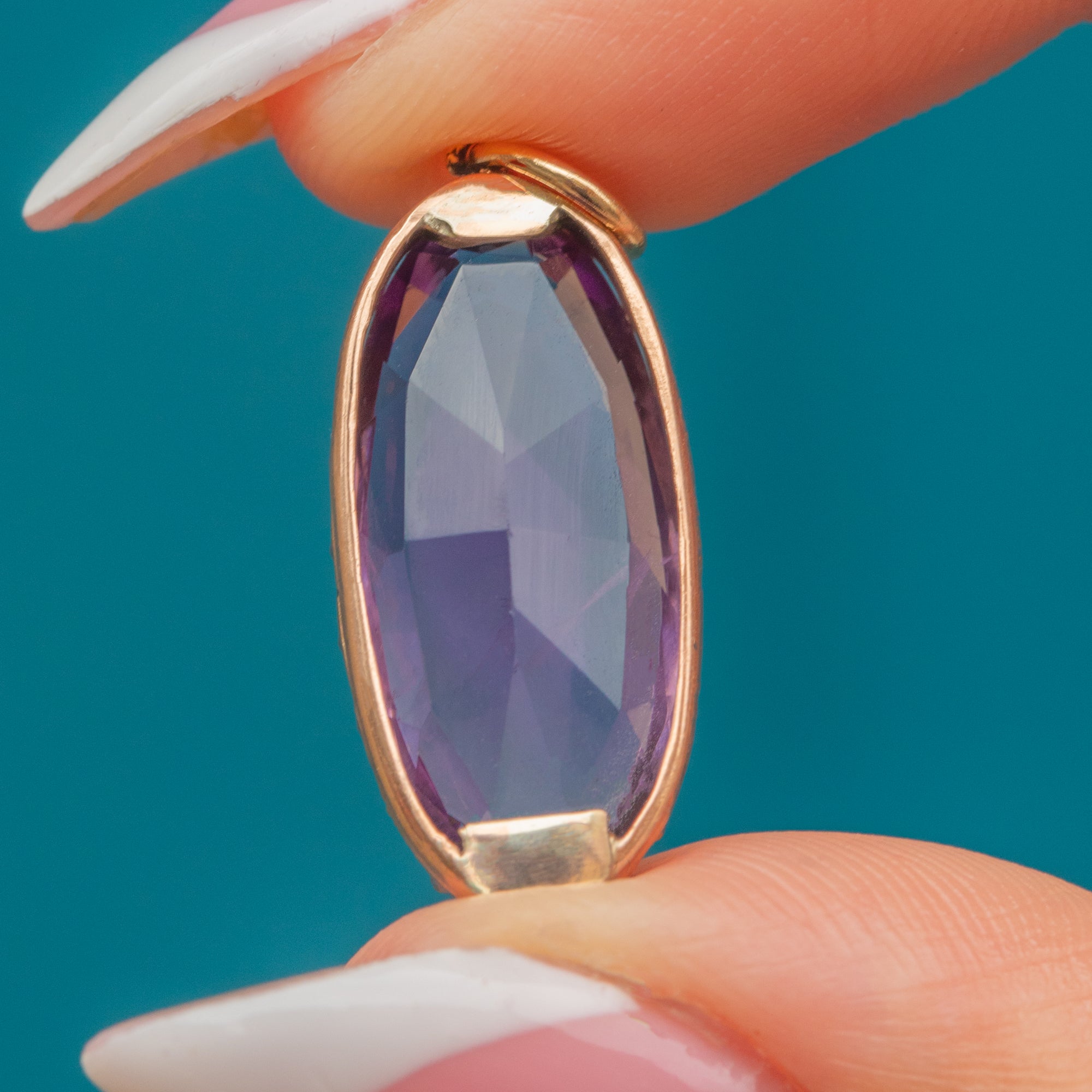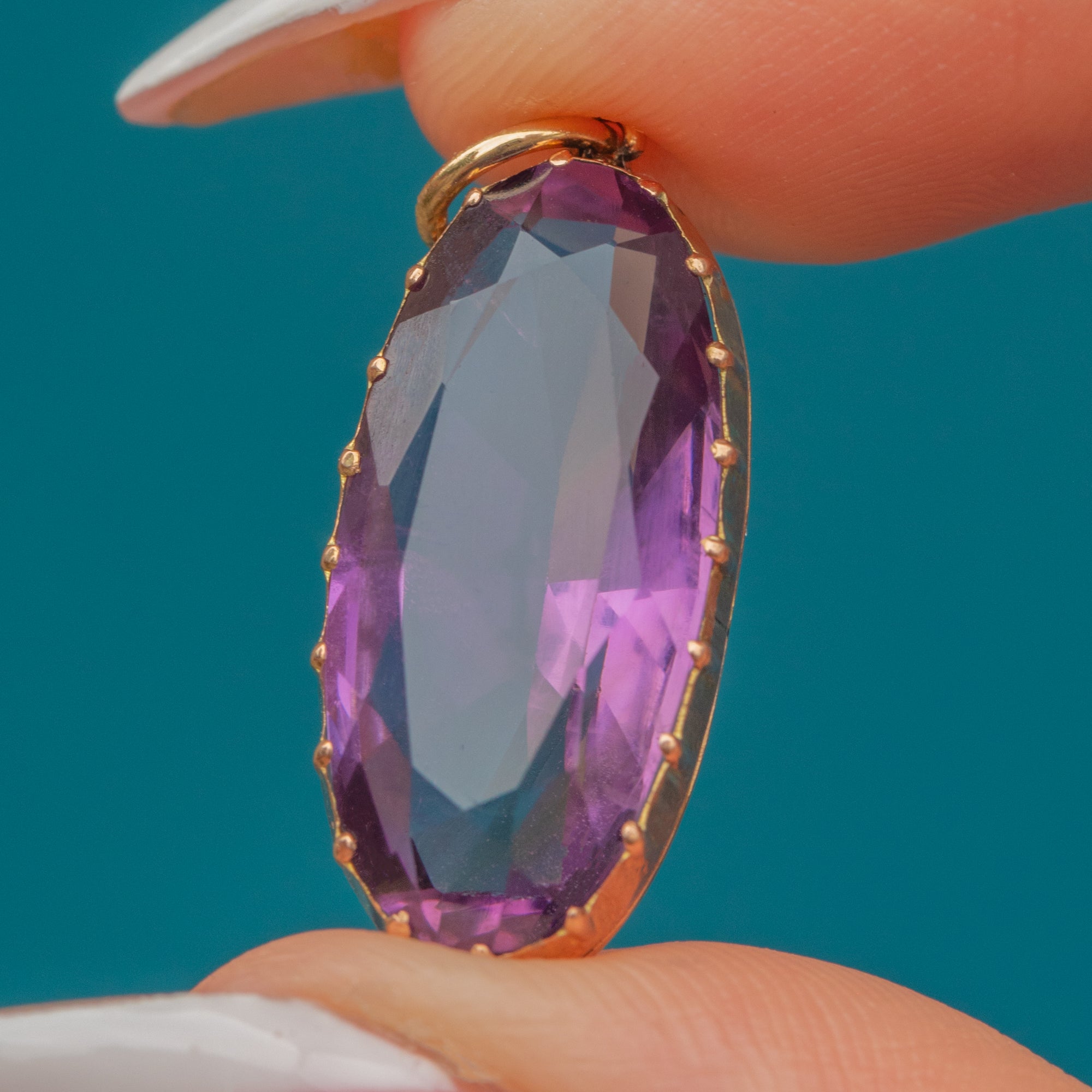 Amethyst measures 19mm long x 10mm wide, weighing approx. 5.44ct.