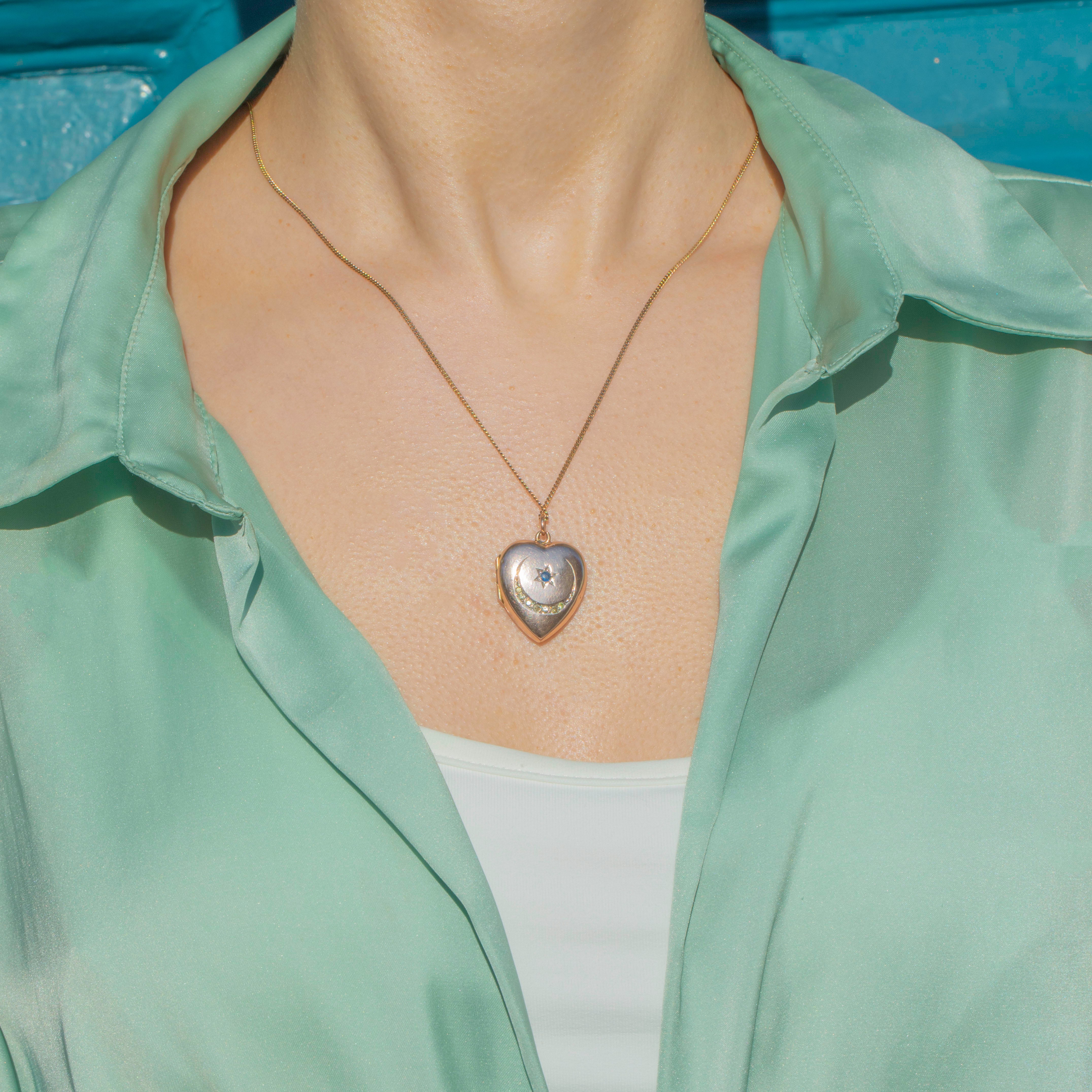 The crescent moon and star are deeply symbolic, and when presented together they symbolise change and guidance. The locket takes the form of a heart, which makes this piece all the more special!