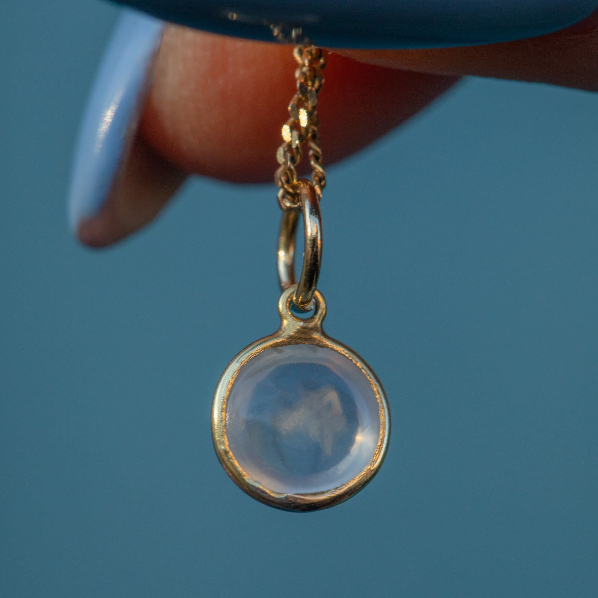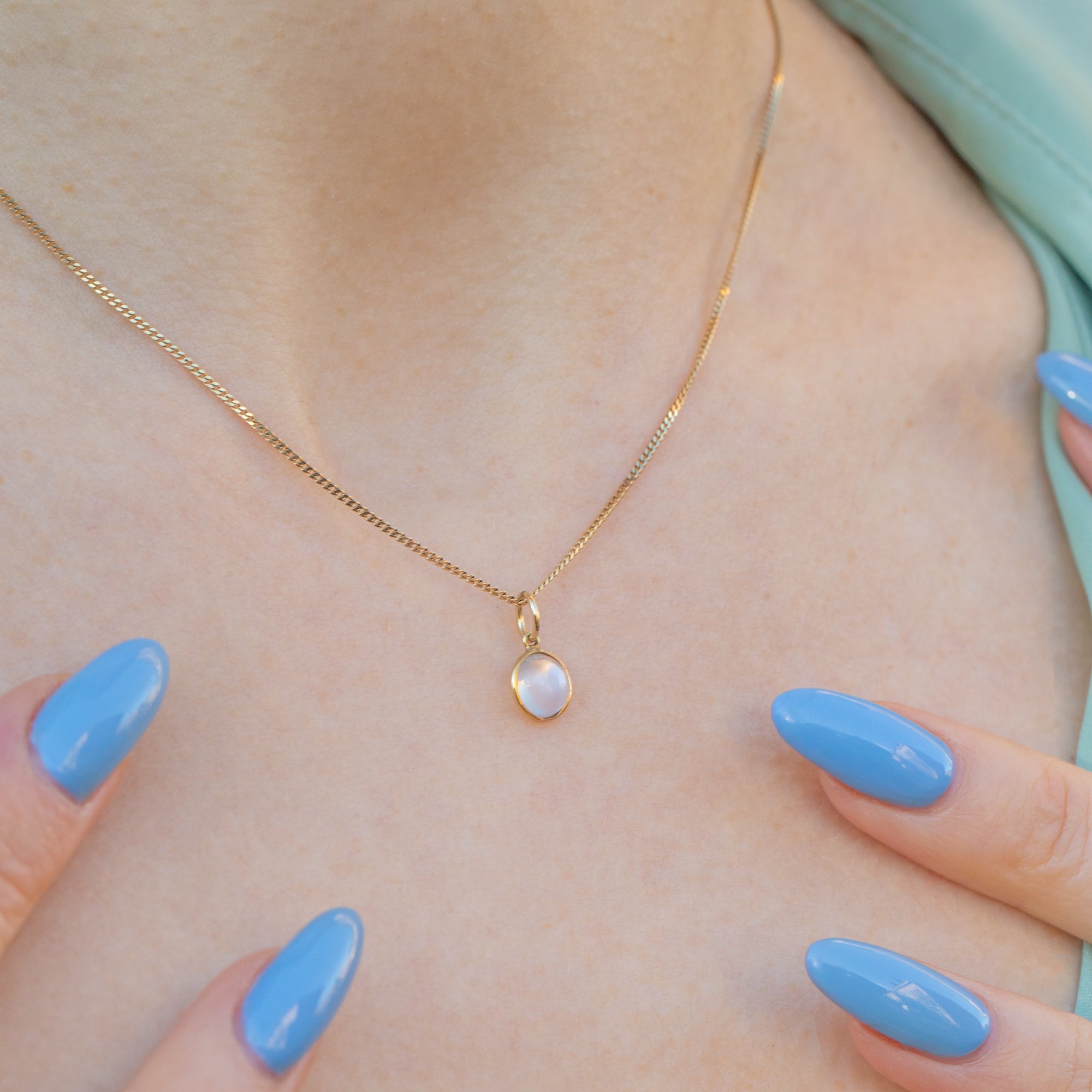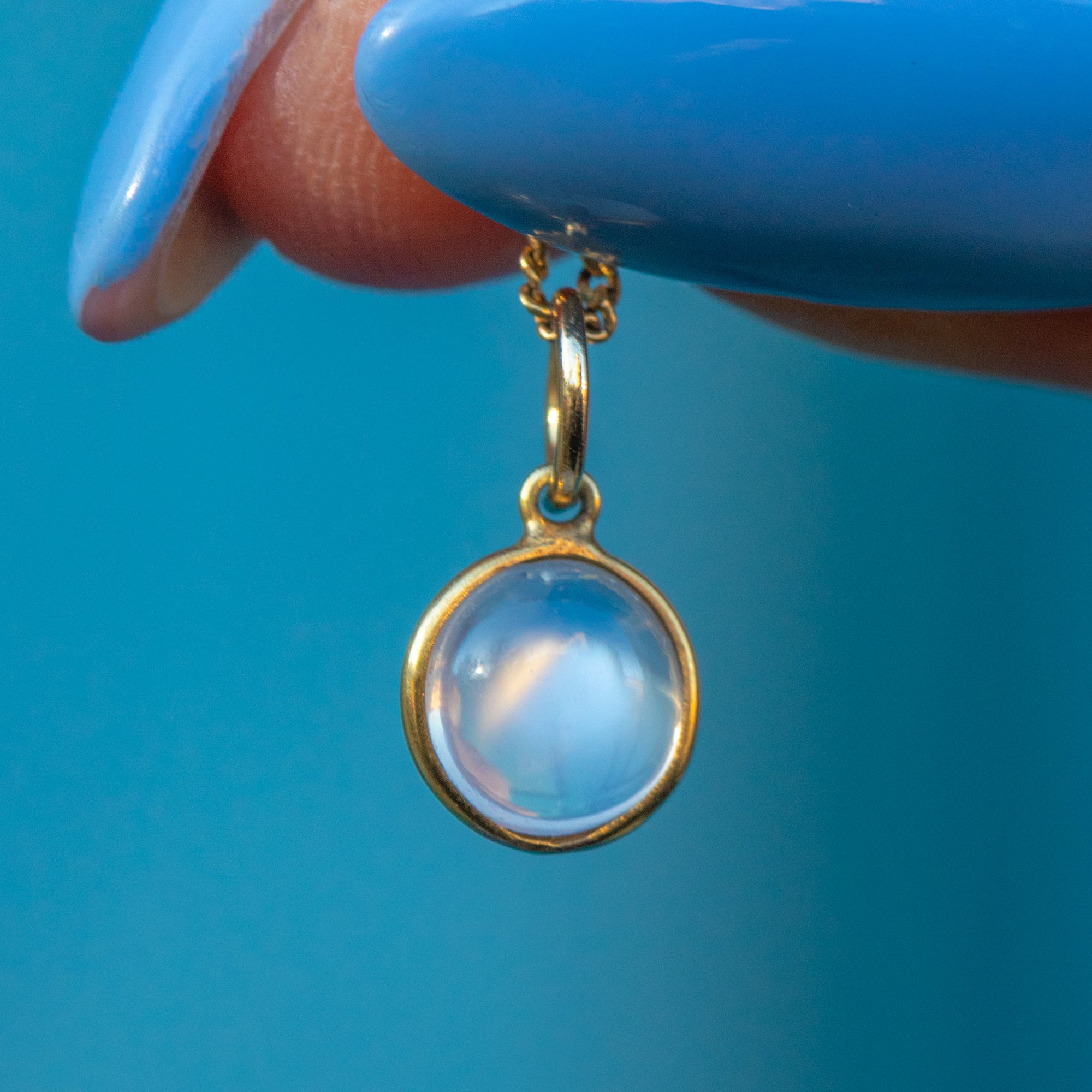 It can't be denied that the otherworldly allure of Moonstones is just irresistible, and with this Moonstone charm being encased in glossy 9ct Gold, her splendour is unmatched. The soothing properties of Moonstone make her the perfect charm for daily wear, allowing you to feel the effects of her calming aura.