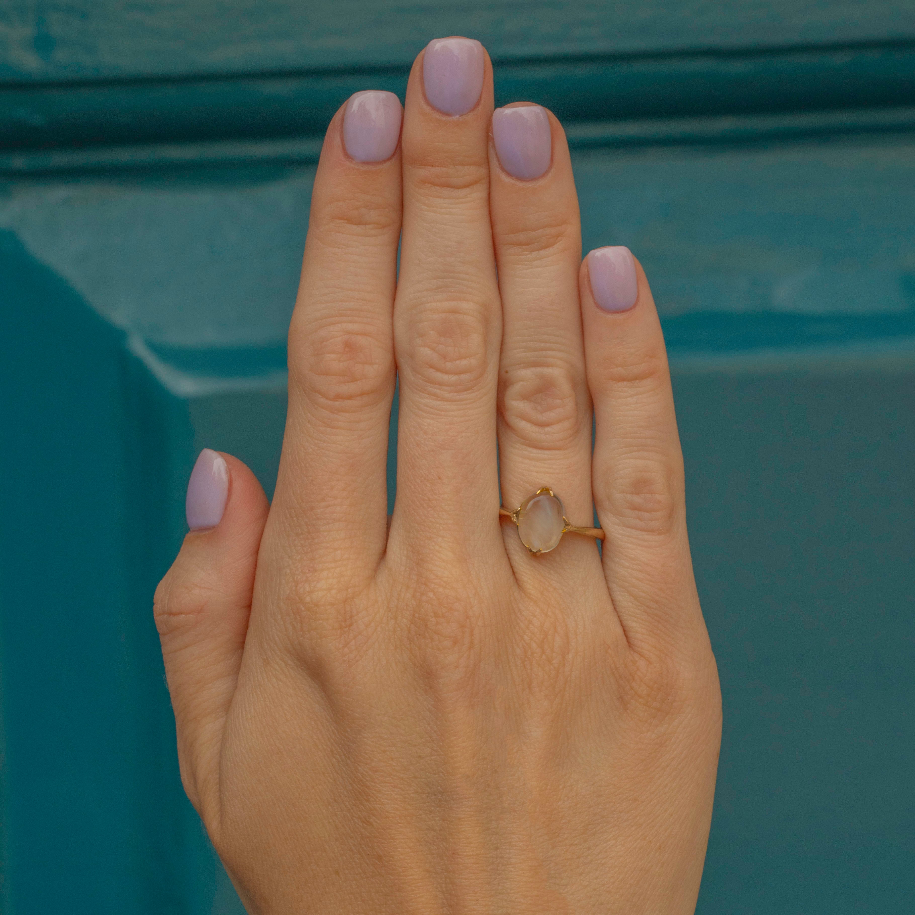 Set in open claw settings crafted from buttery 9ct Gold, the light pours through the Moonstone from all angles. A stone associated with balance and relaxation, this Victorian Moonstone ring will bring a wave of calm to its wearer.