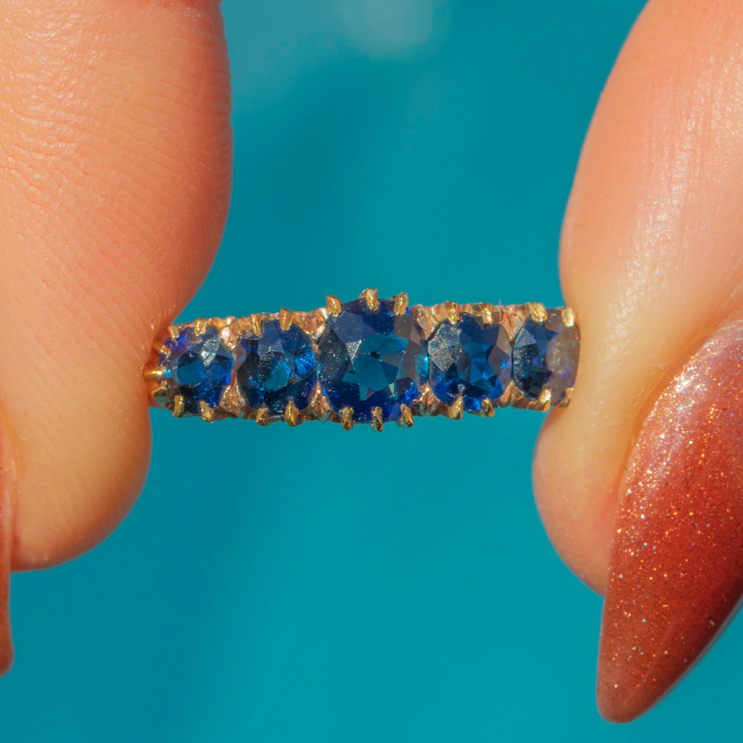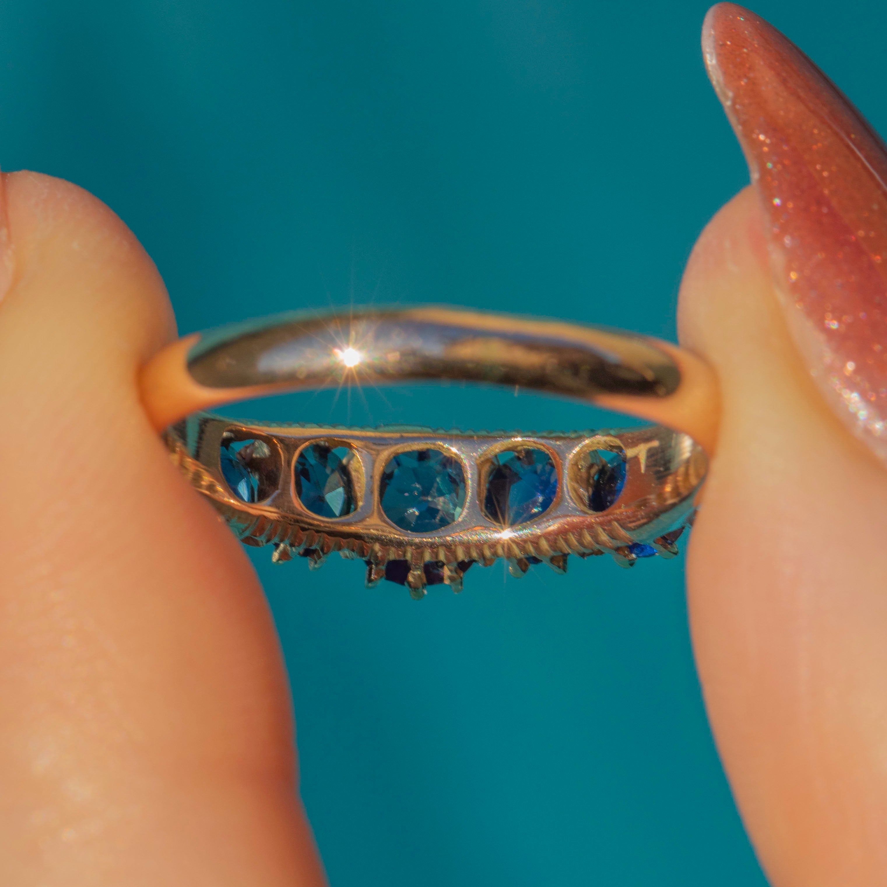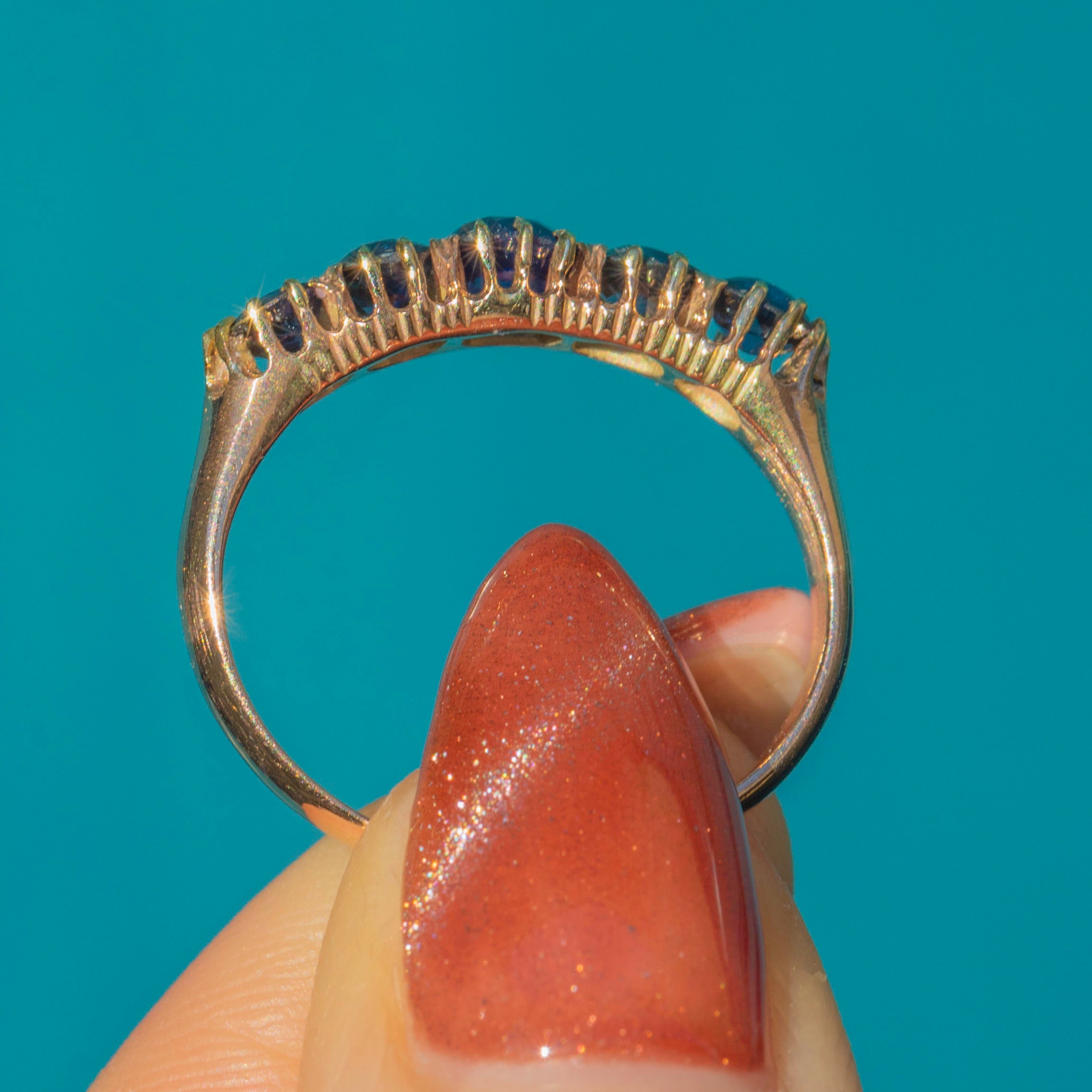 This antique 9ct Gold natural Sapphire five stone ring is a fabulous Victorian piece!