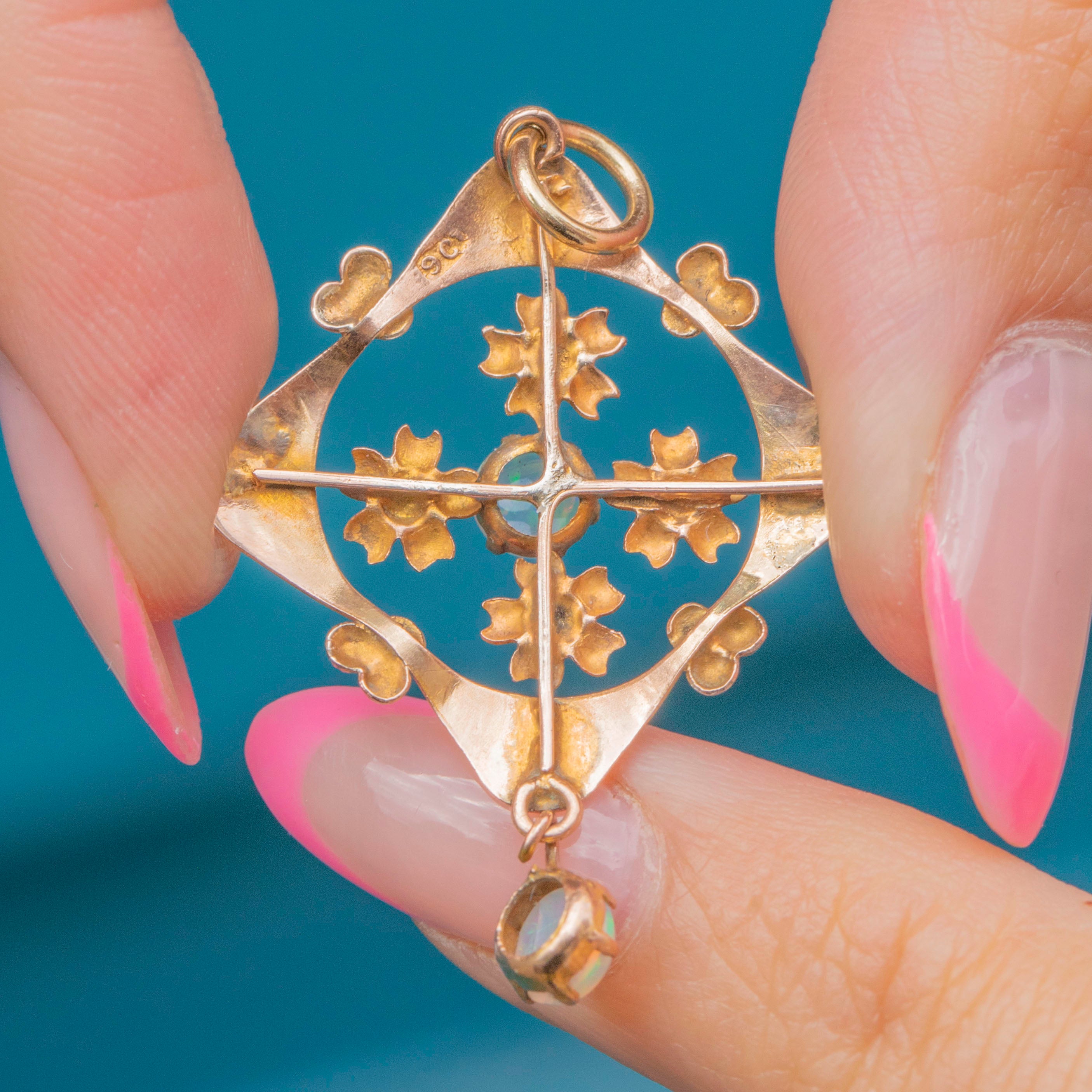 This adorable antique 9ct Gold Opal floral pendant radiates Edwardian charm!