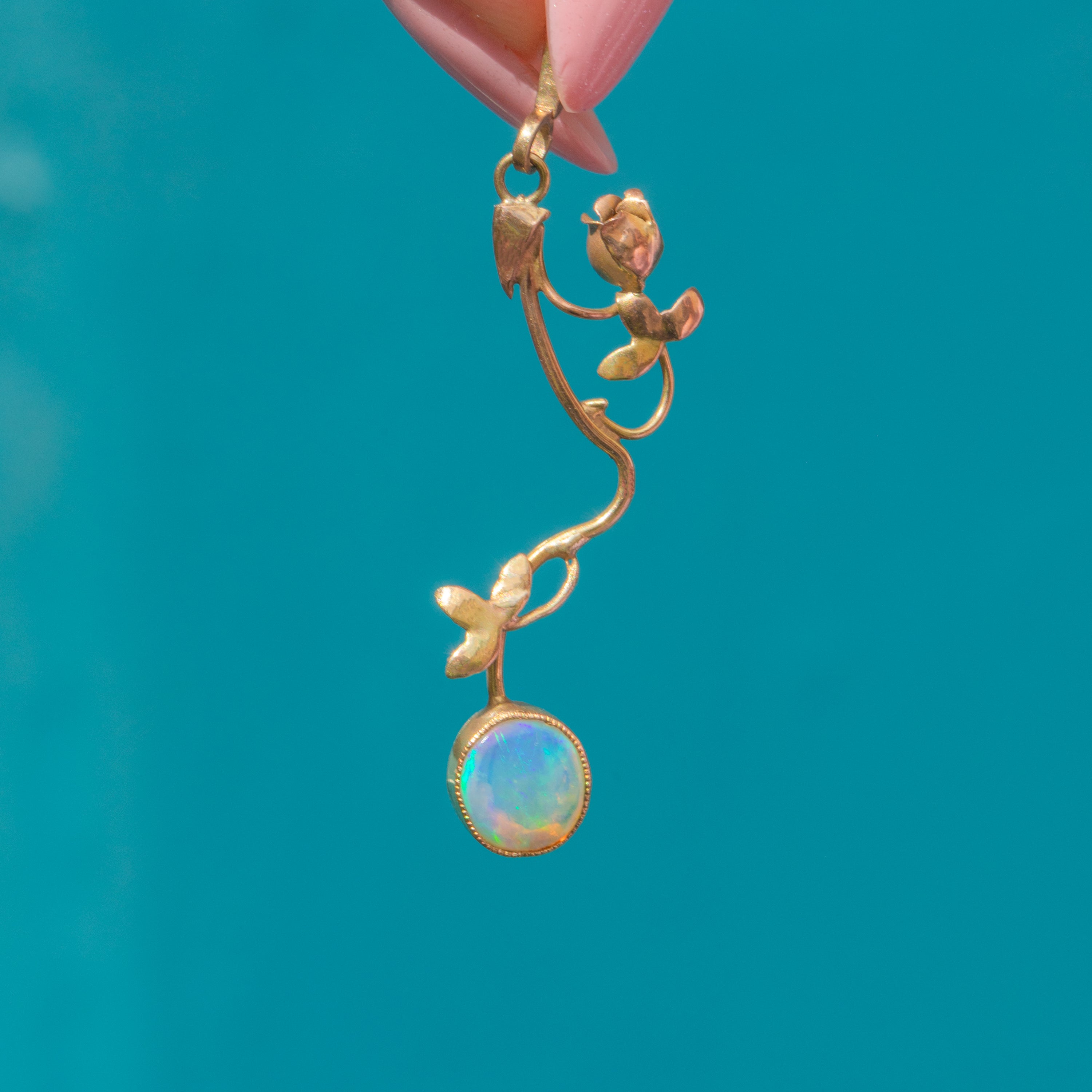 This charming antique 9ct Gold Opal rose pendant features a beautifully detailed Gold rose, gracefully designed with an elegant Opal at the bottom.