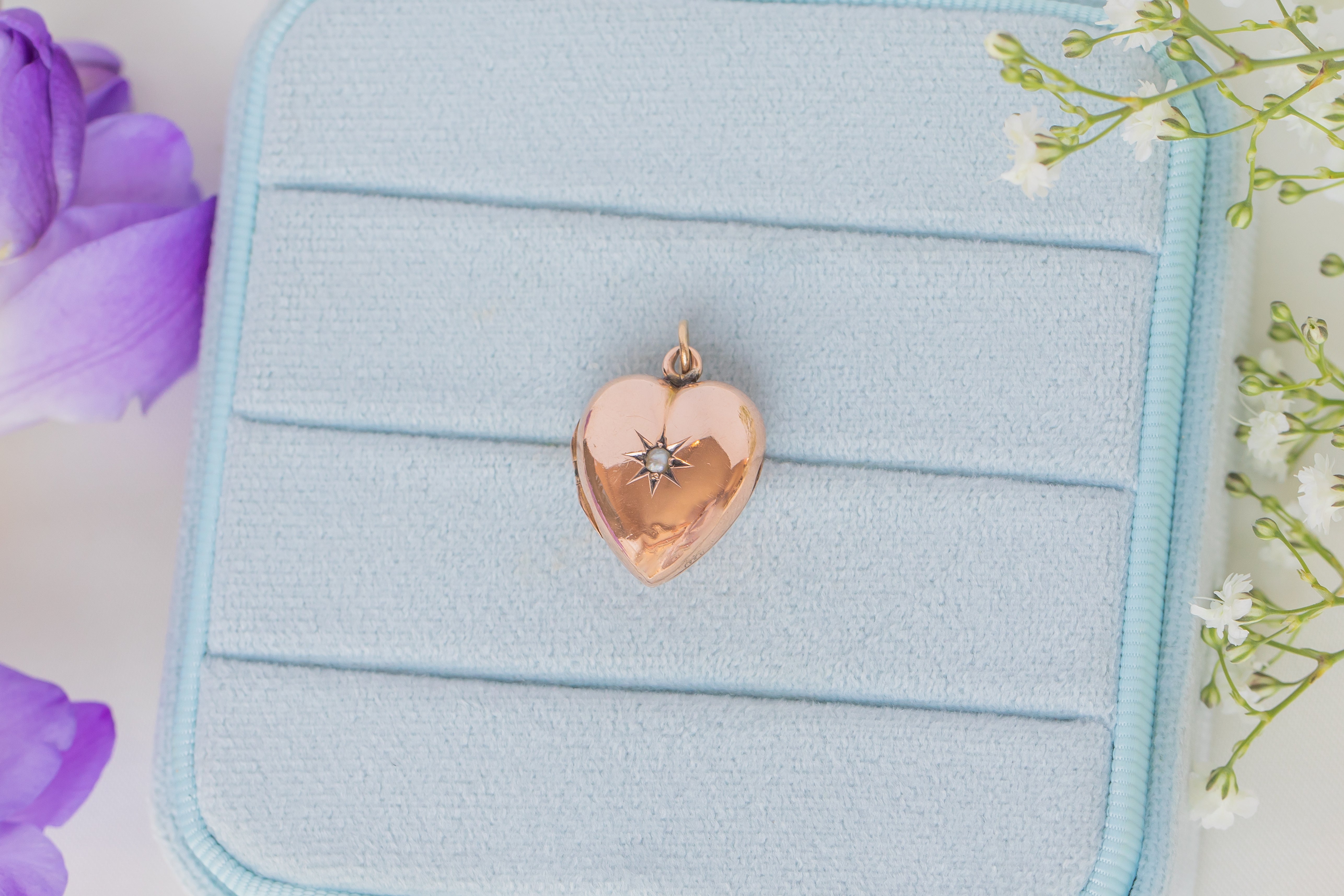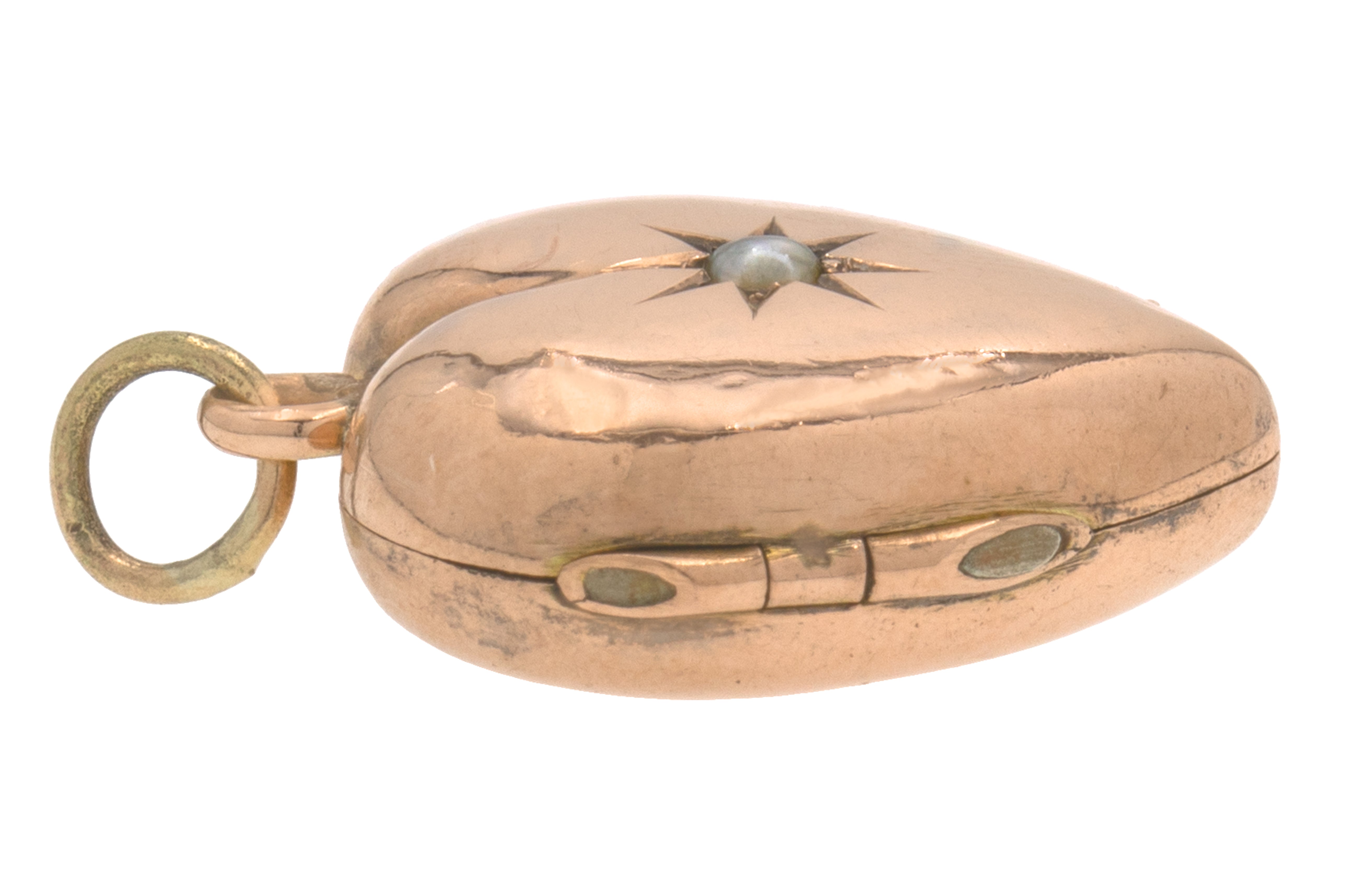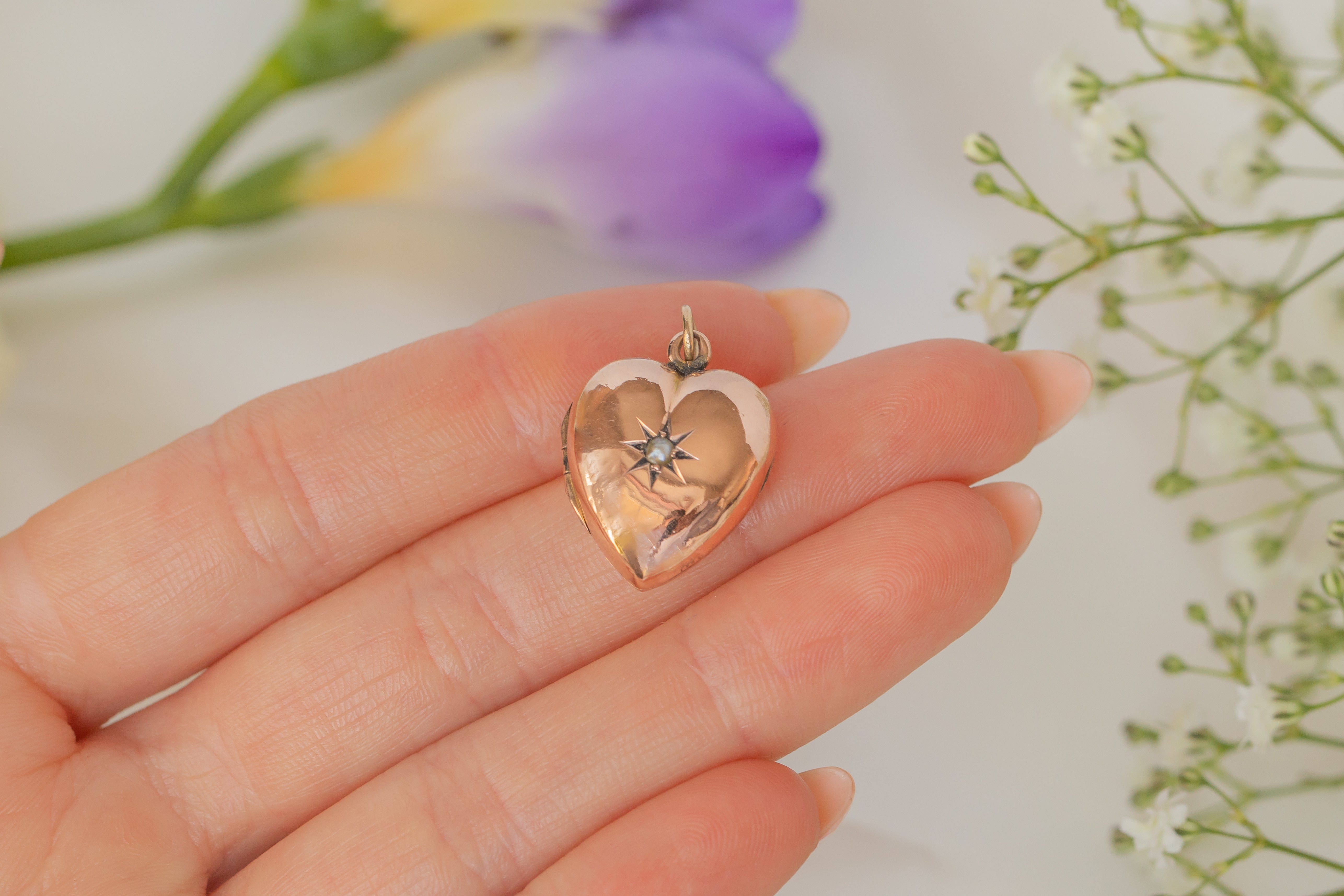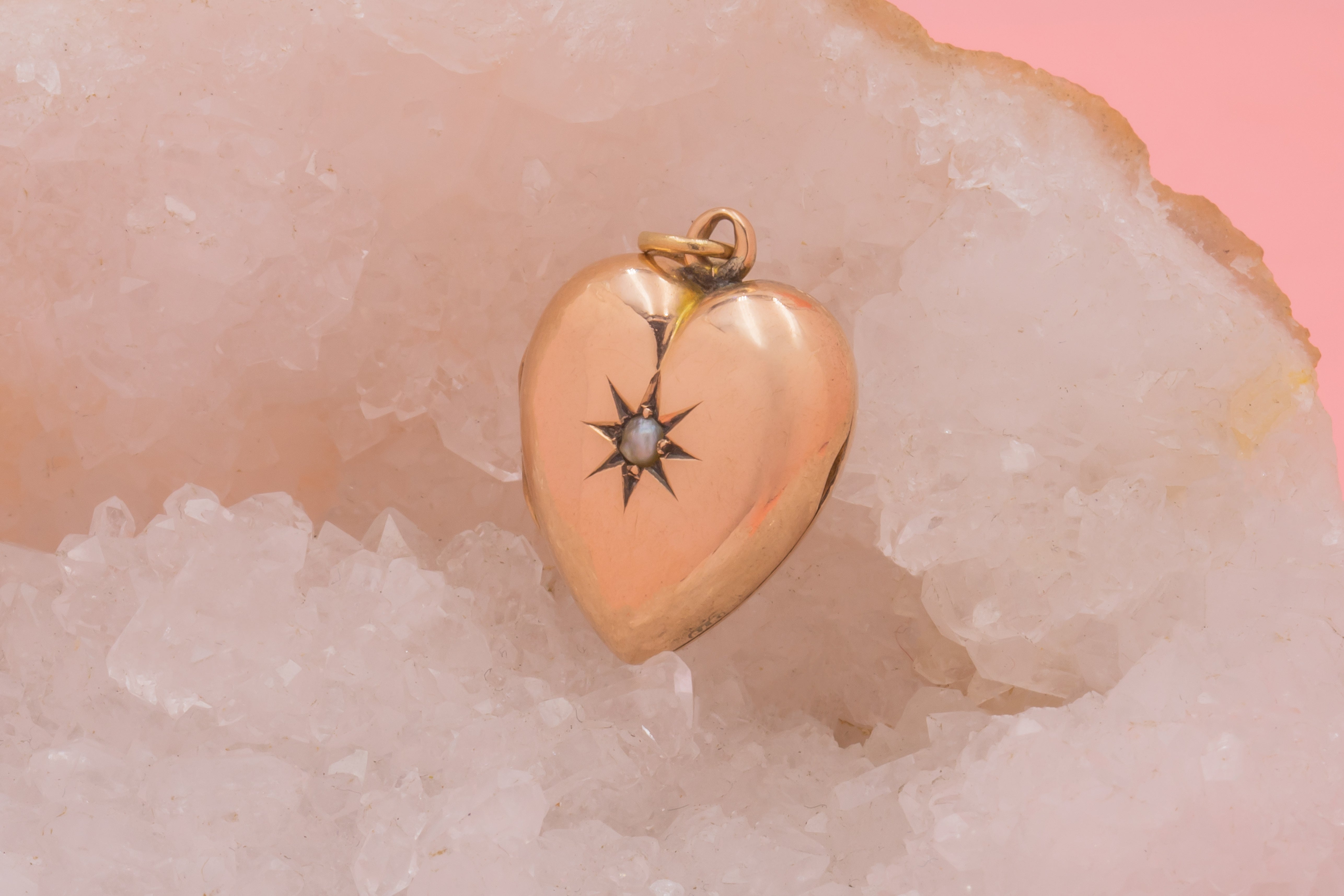 Médaillon antique en or 9 carats avec perle, étoile et cœur