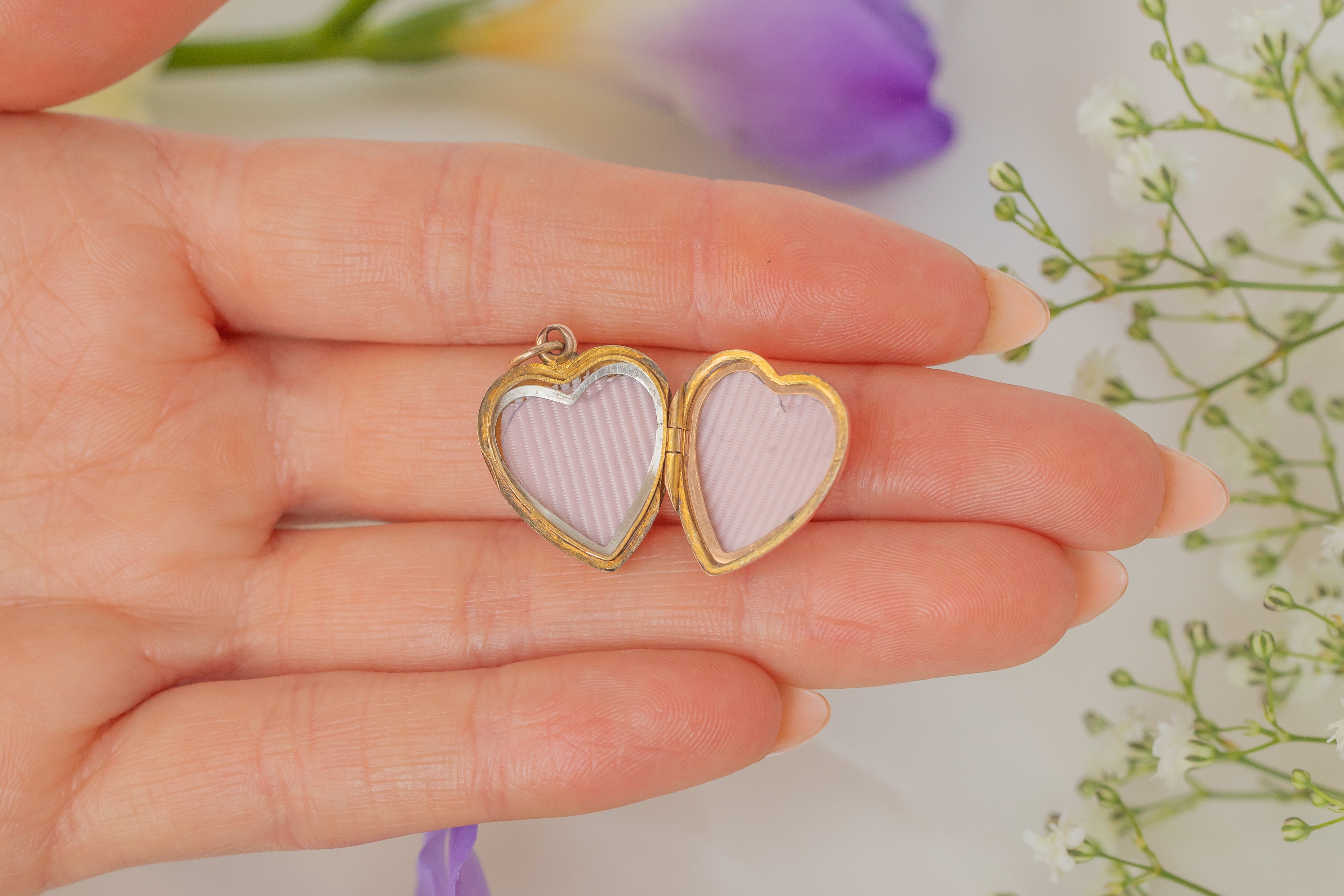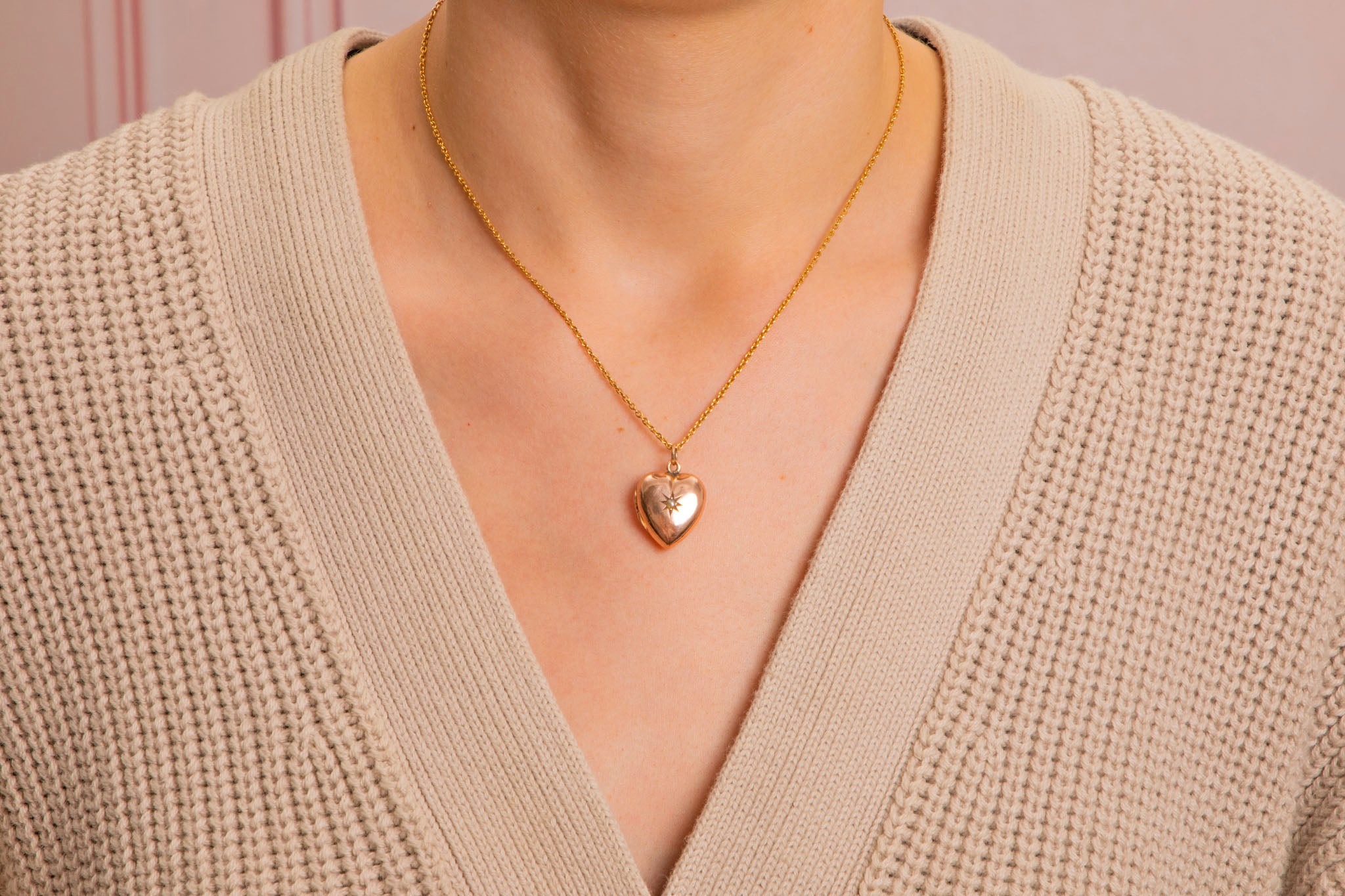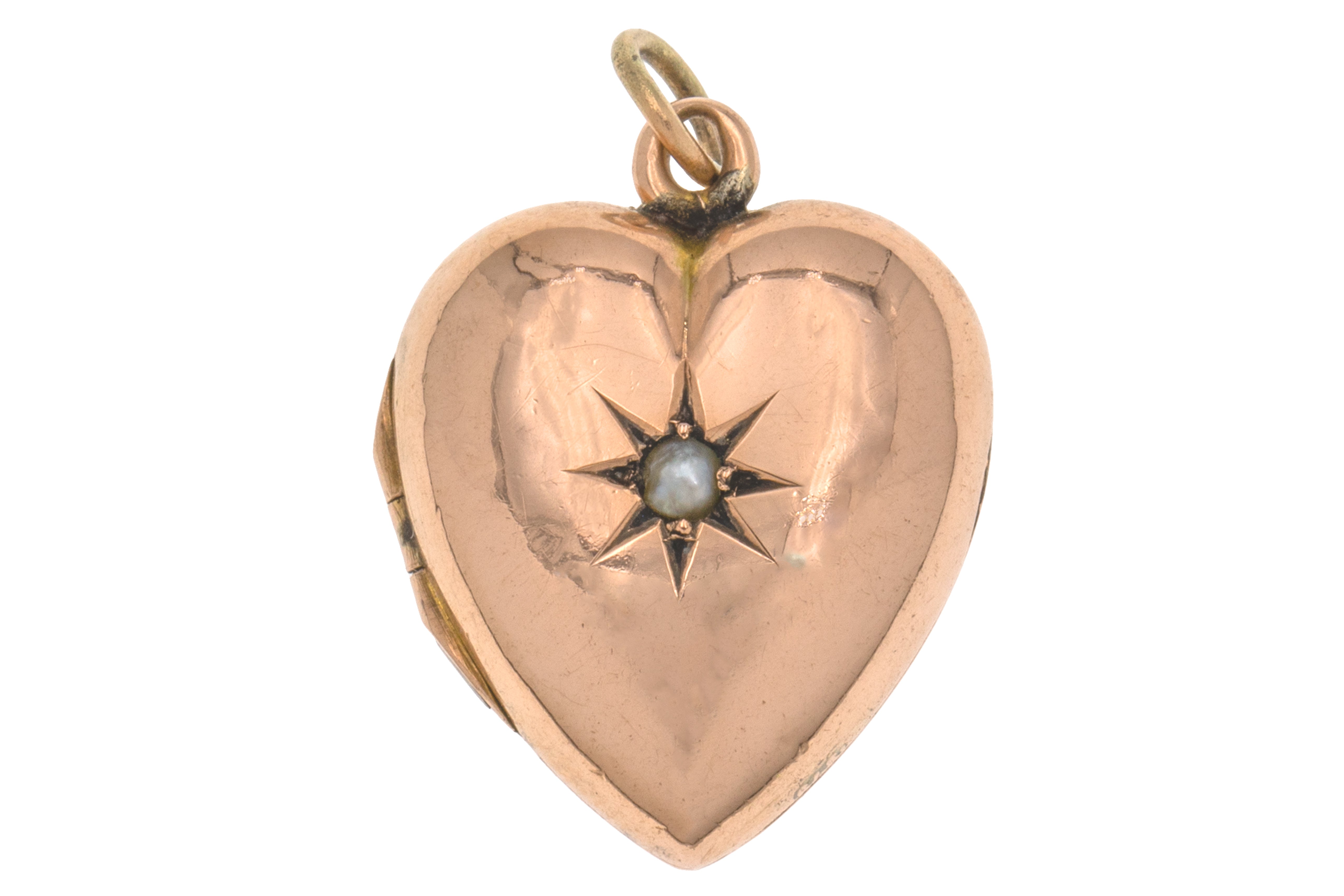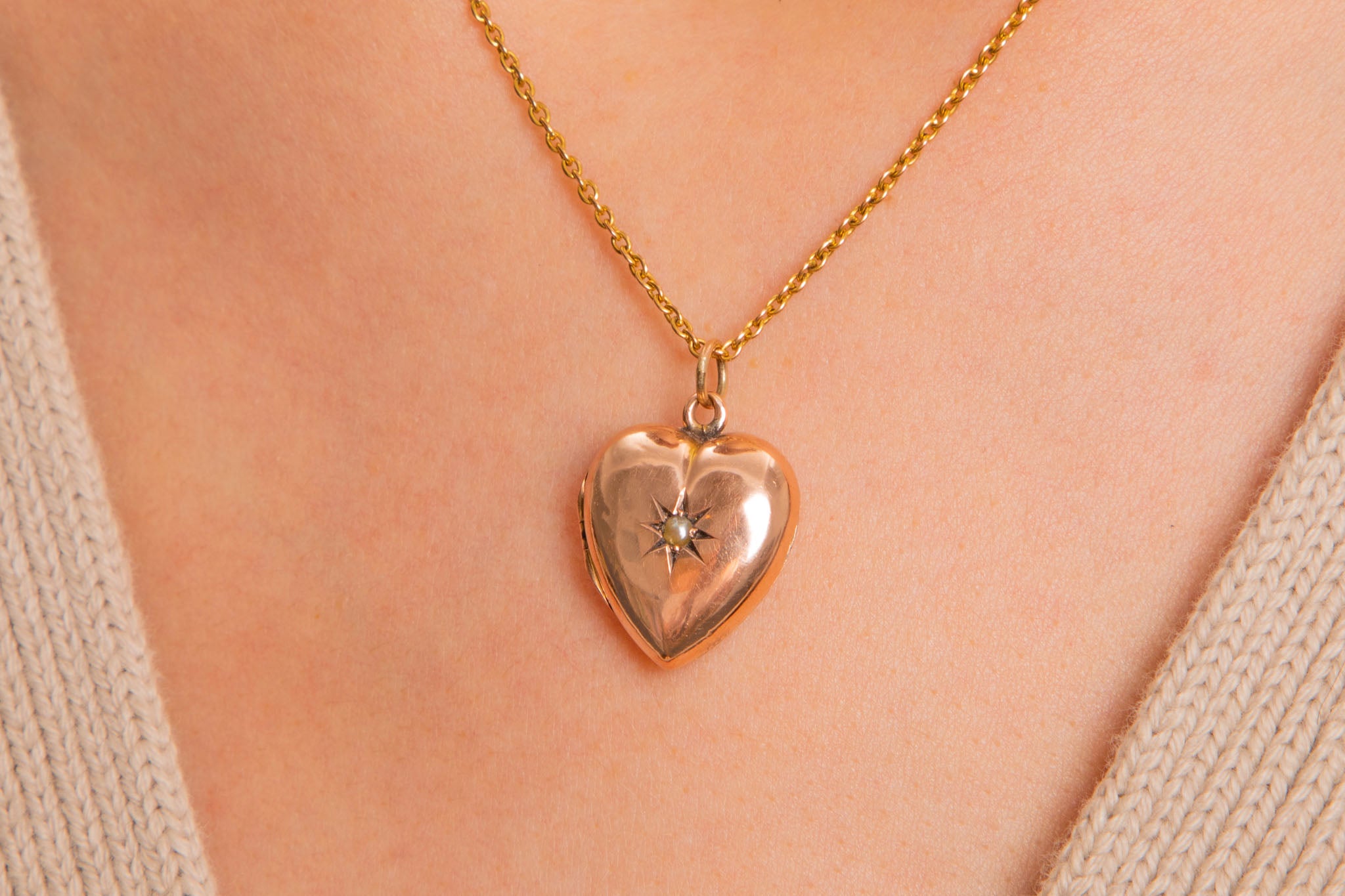Médaillon antique en or 9 carats avec perle, étoile et cœur