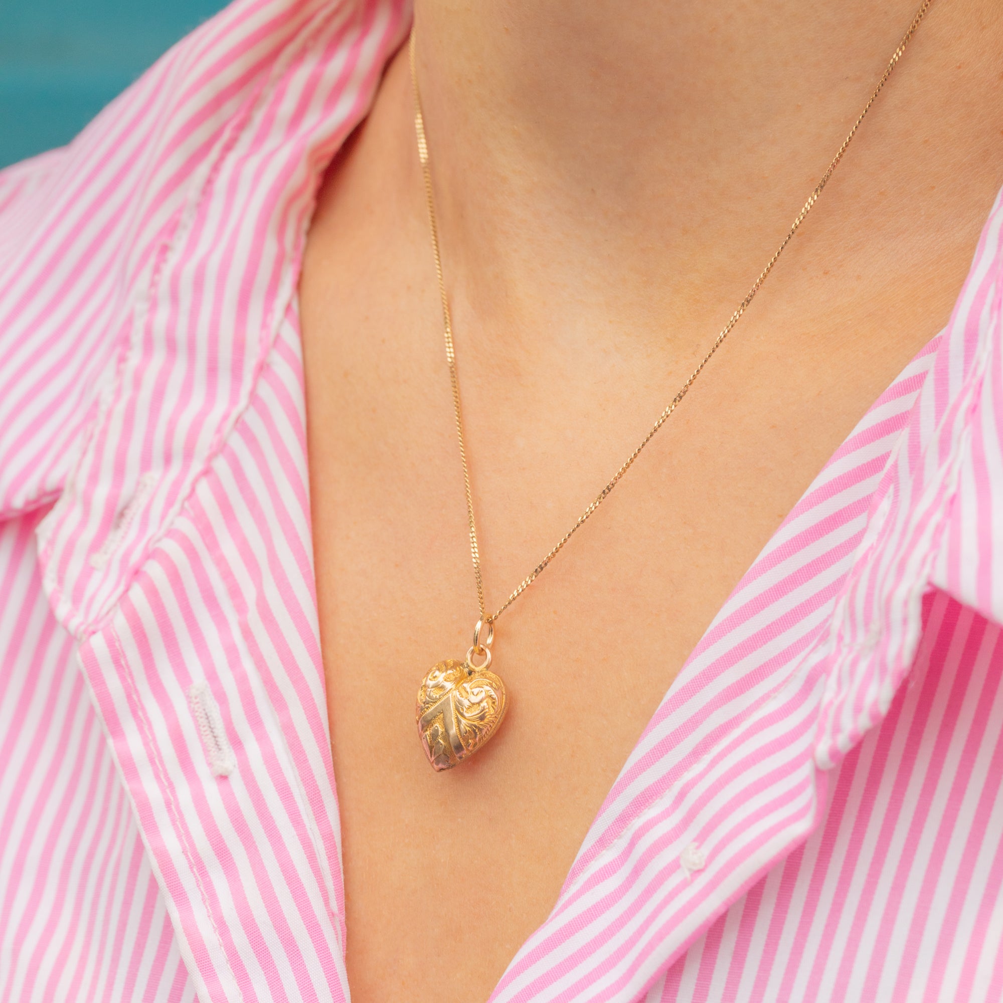 The raised swirling patterns provide a lovely texture and depth, catching the light beautifully. A timeless symbol of love, this antique Gold heart pendant would make the perfect gift choice!