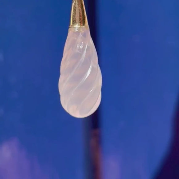 How divine is this antique 9ct Gold rose Quartz twist drop pendant?! With pastel pink hues twisting around her teardrop form looking good enough to eat, she creates a wonderful display when held up to the light.